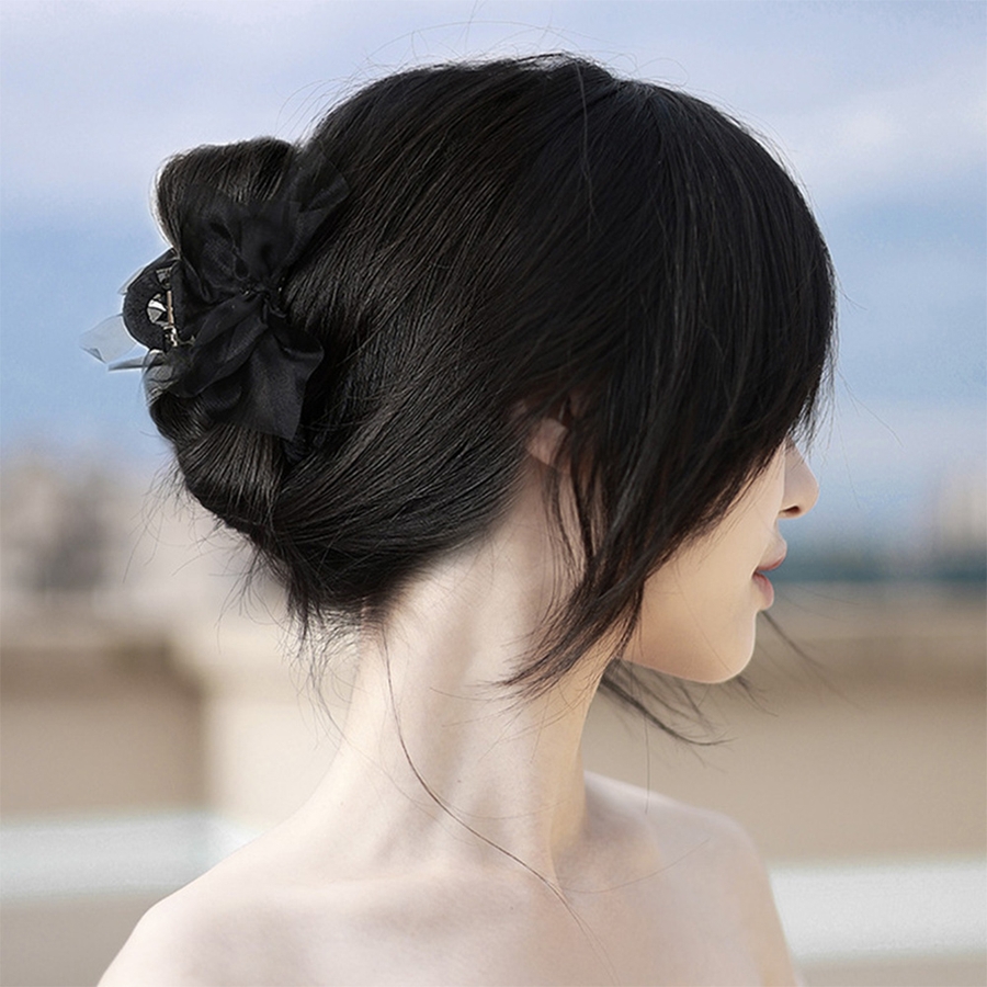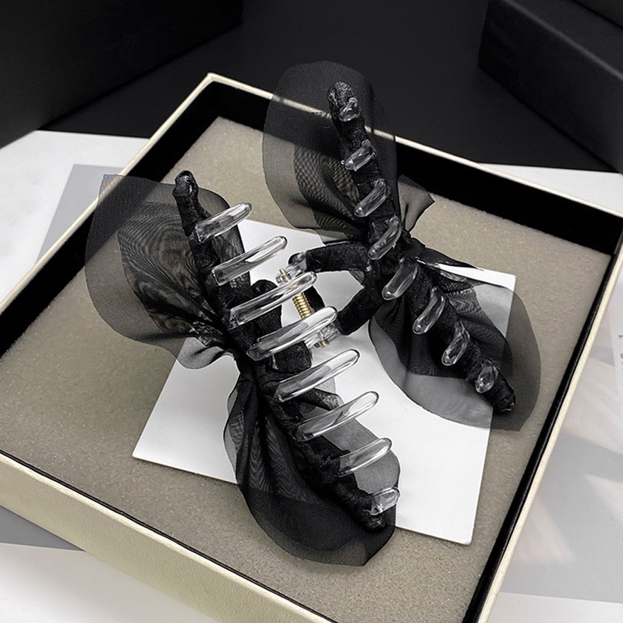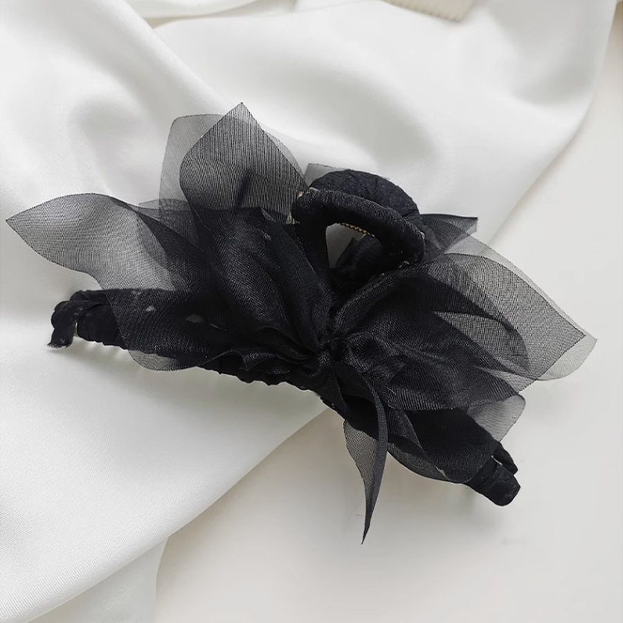 バンスクリップ 髪飾り オーガンジー 黒