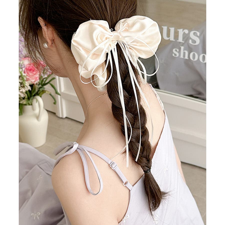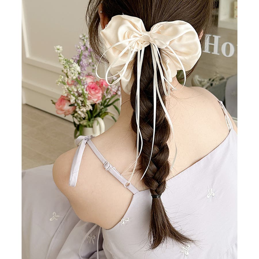 細めのリボンがついているので、編み込みやアレンジヘアにもぴったり。