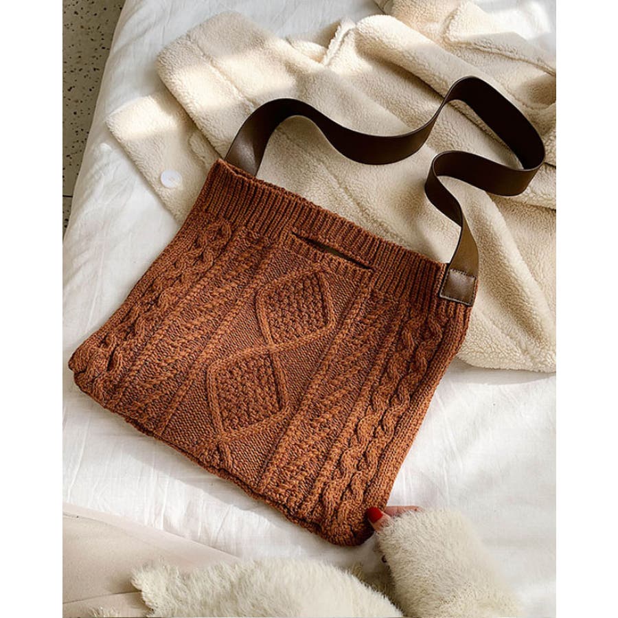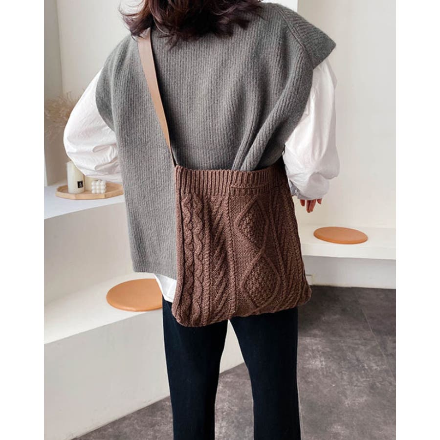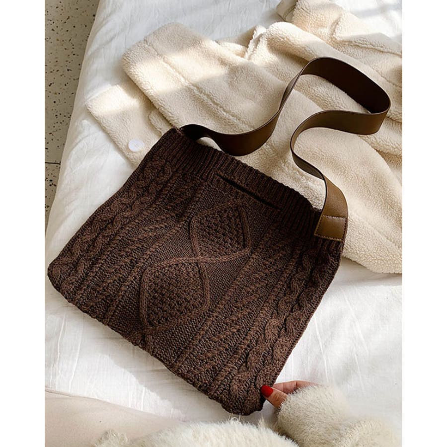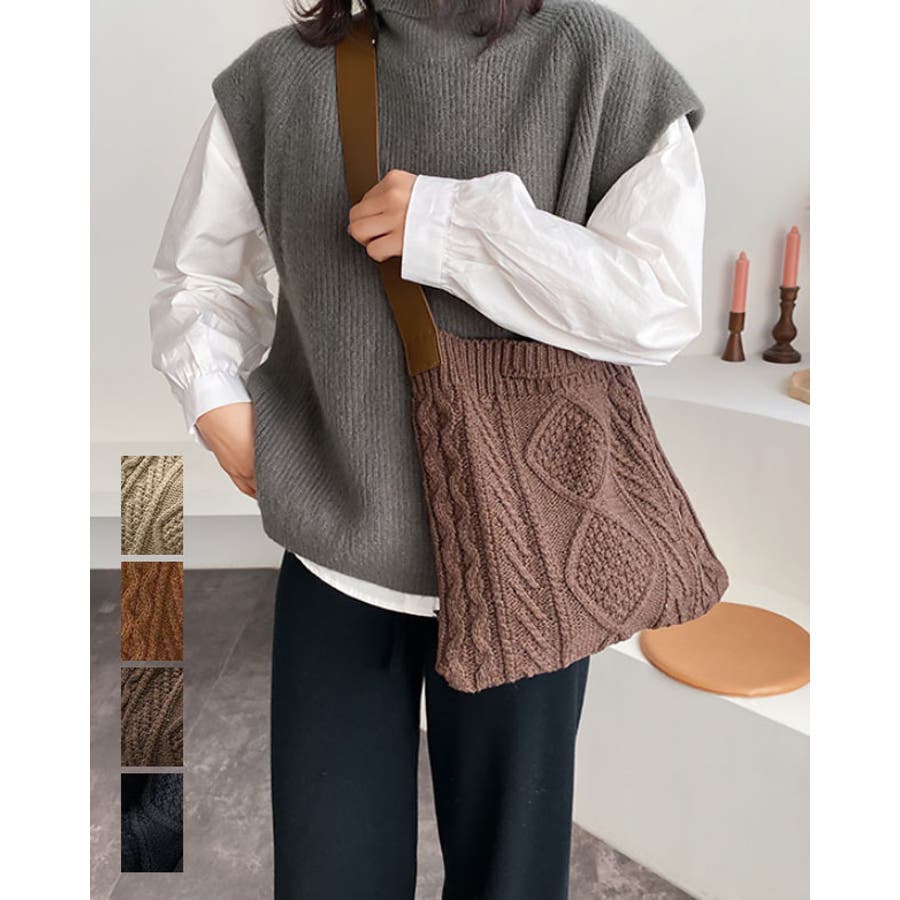 バッグは毛糸を使用して、秋冬らしいあたたかみのあるデザイン