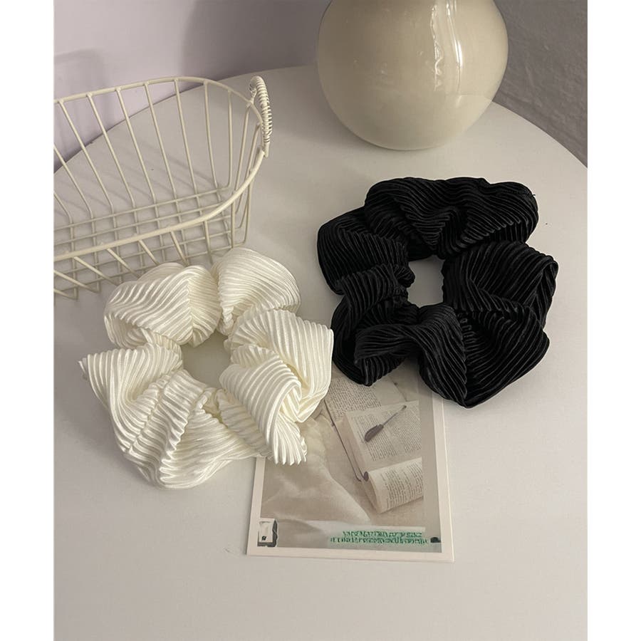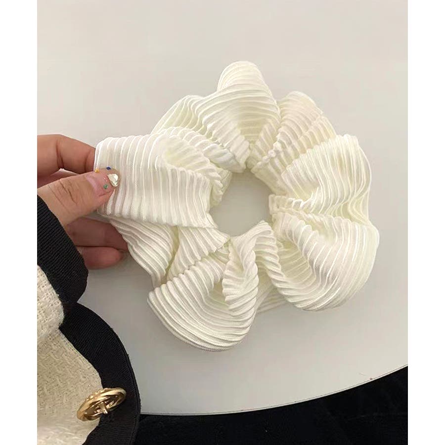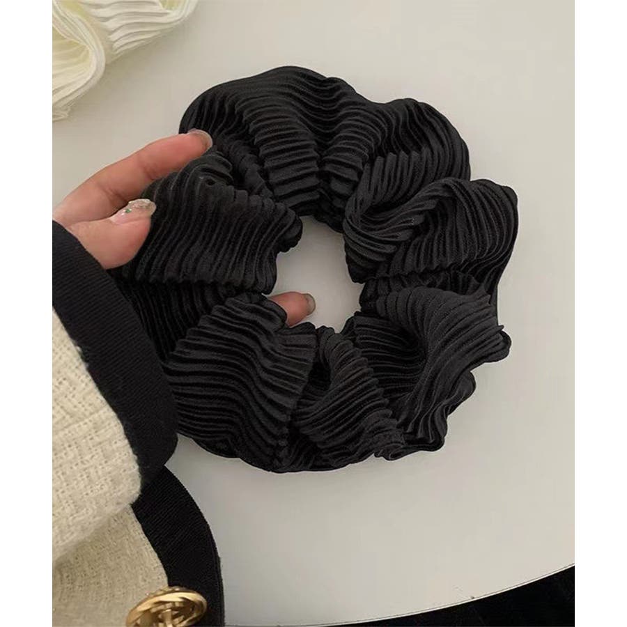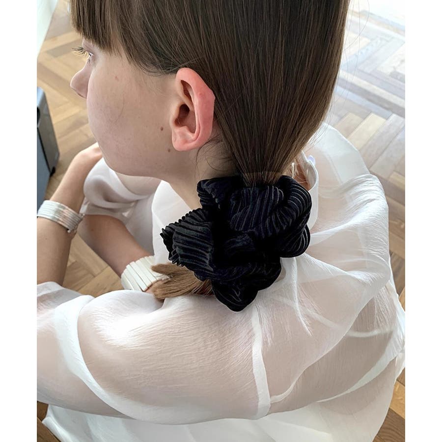 細かいプリーツ加工が上品な印象のシュシュ。