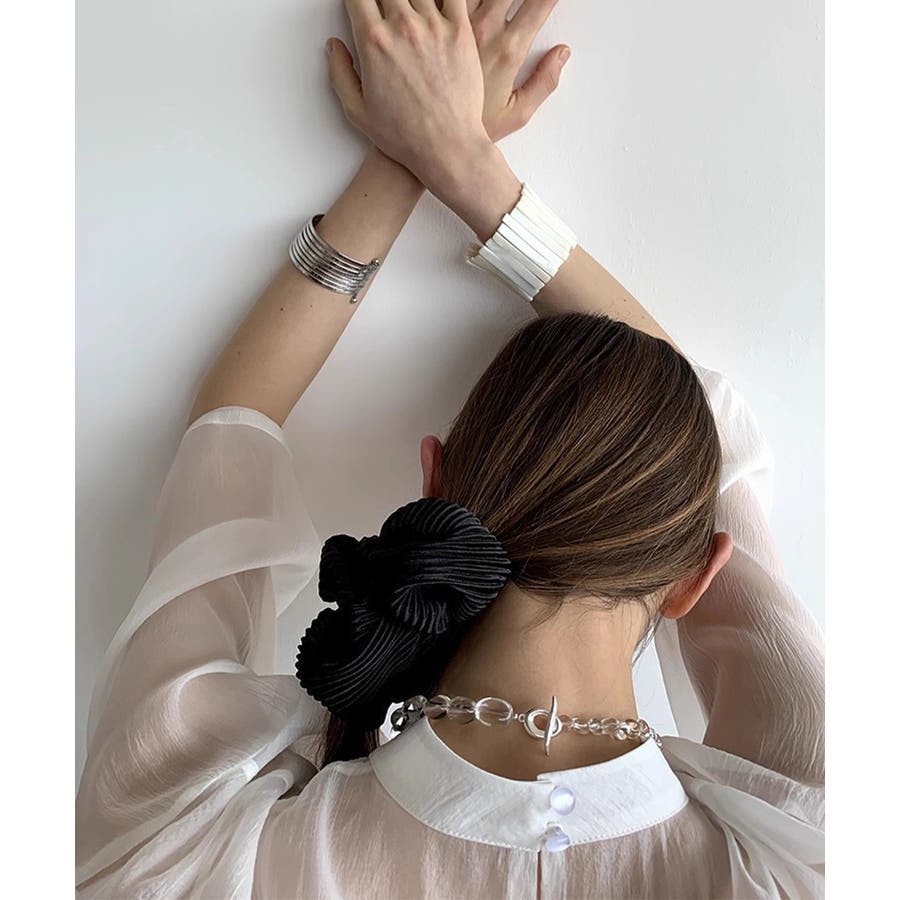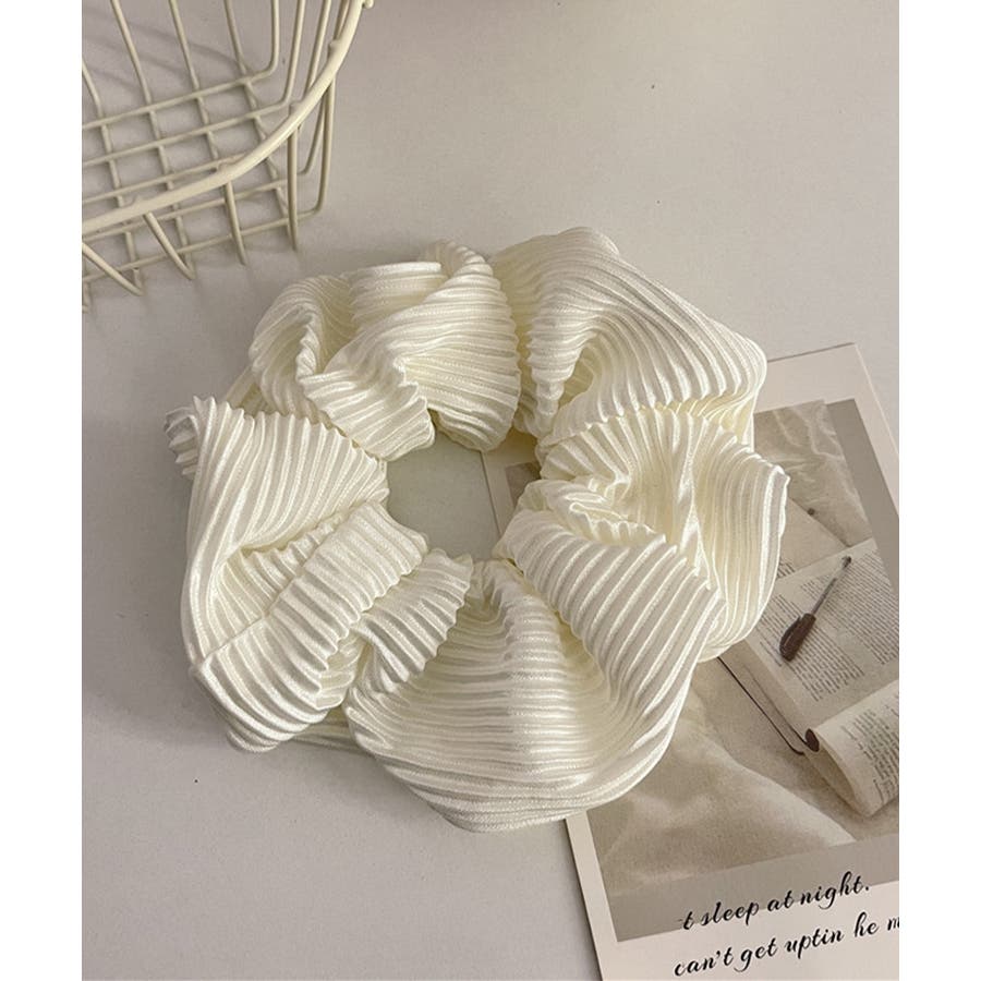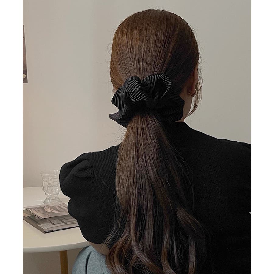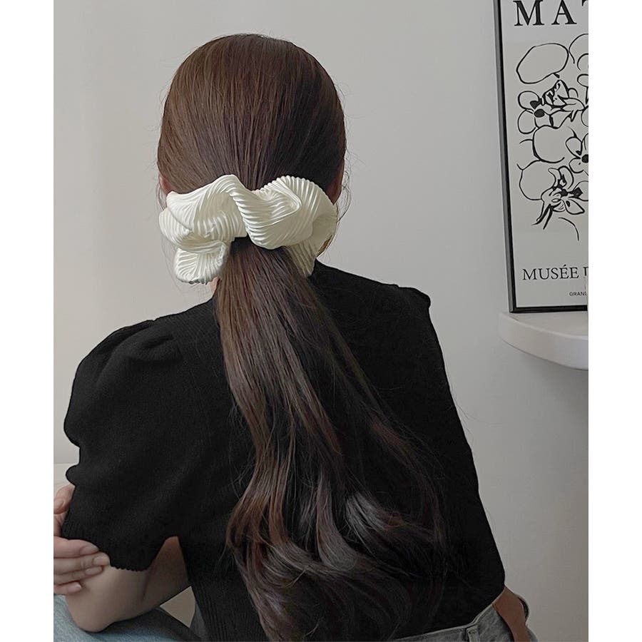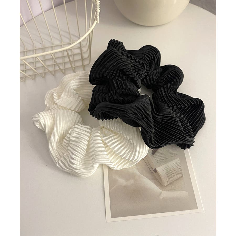 細かいプリーツ加工が上品な印象のシュシュ。