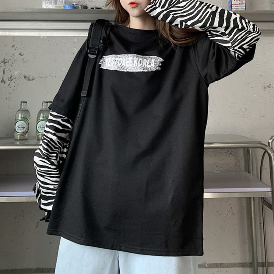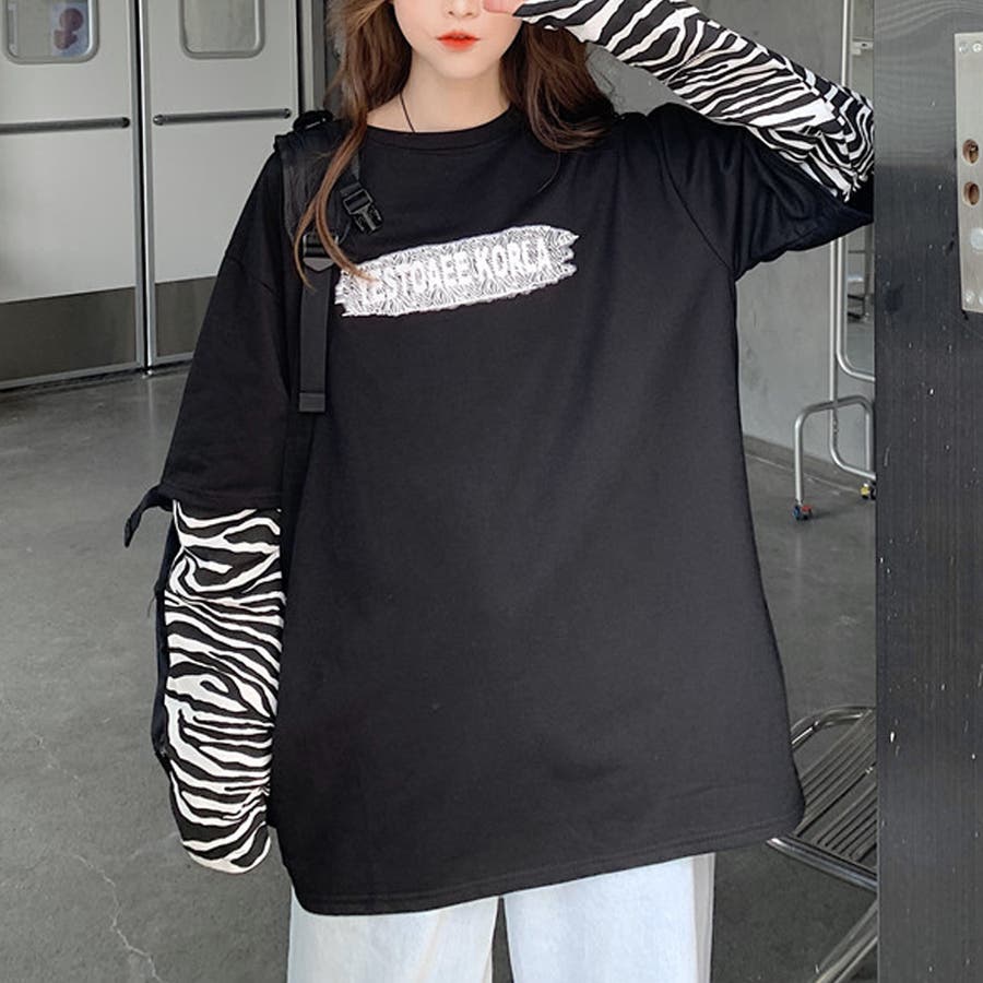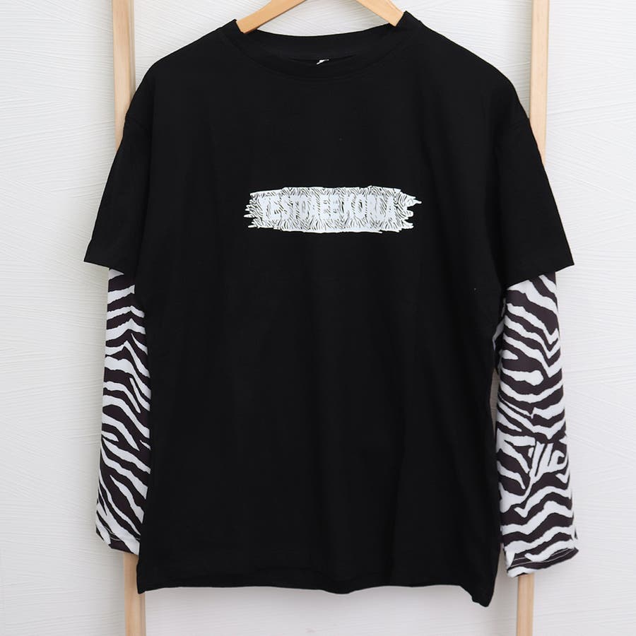 肩を落としたゆったりシルエットに、重ね着風のレイヤードスタイルがストリートにマッチ。