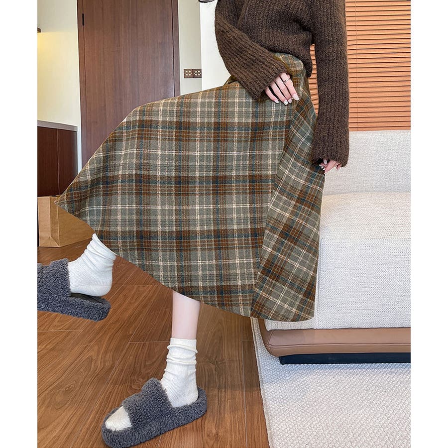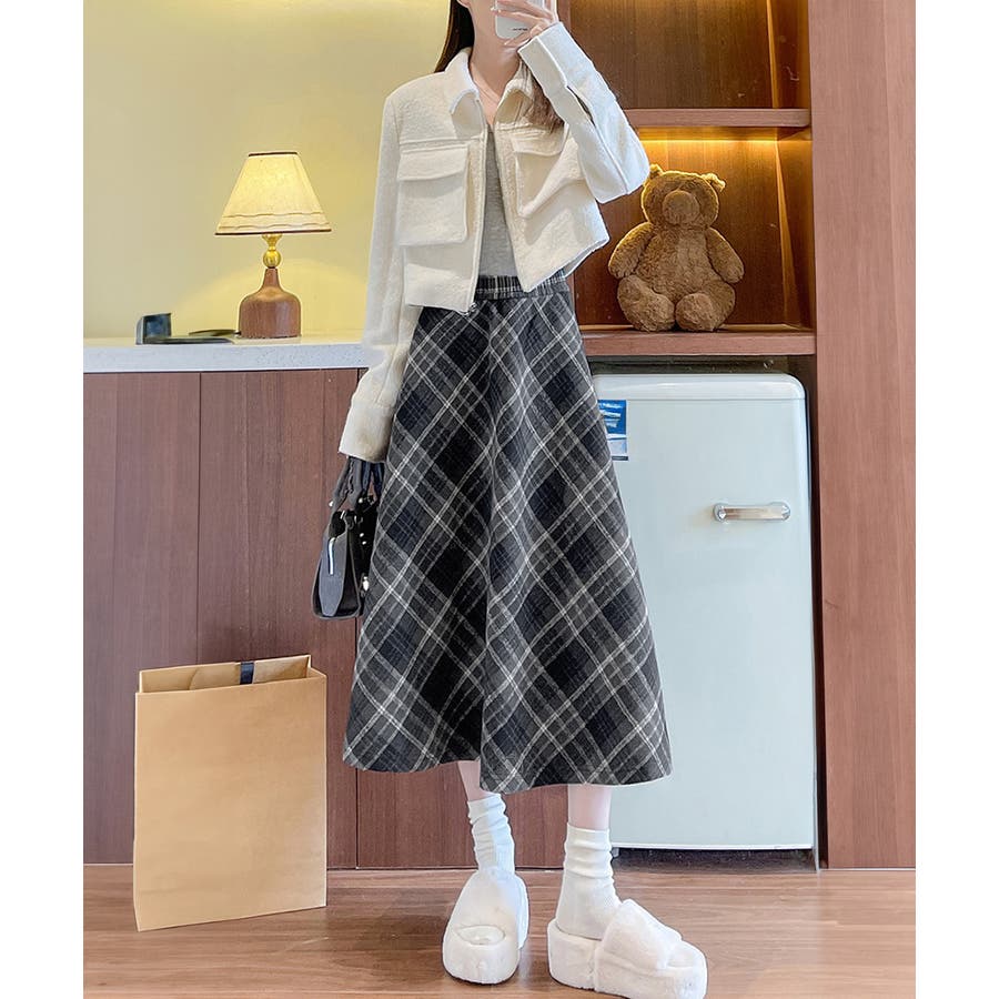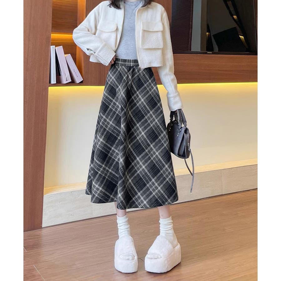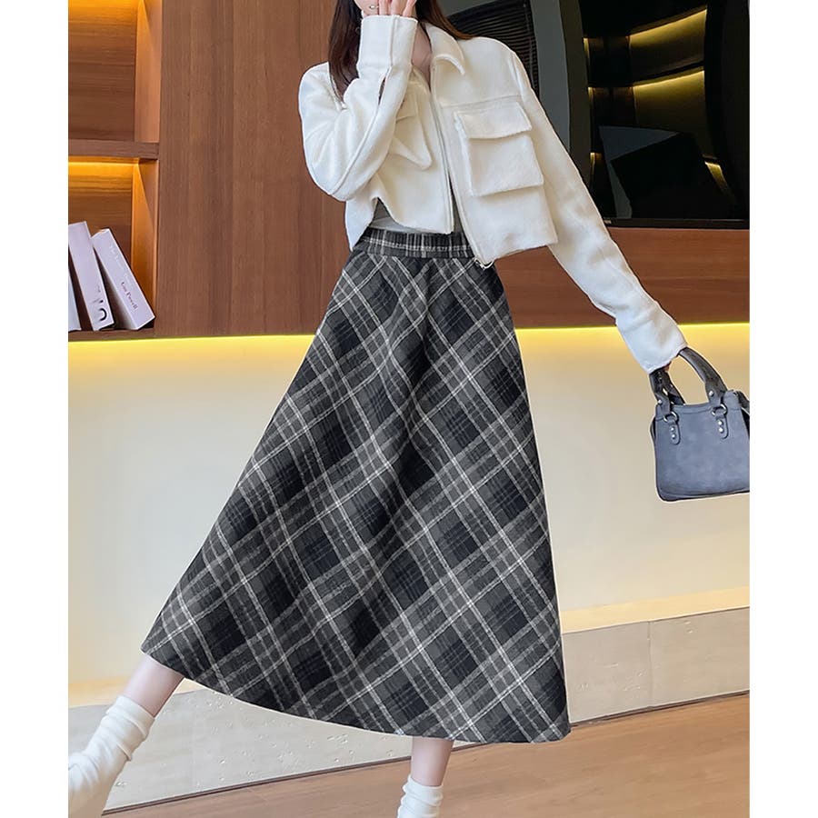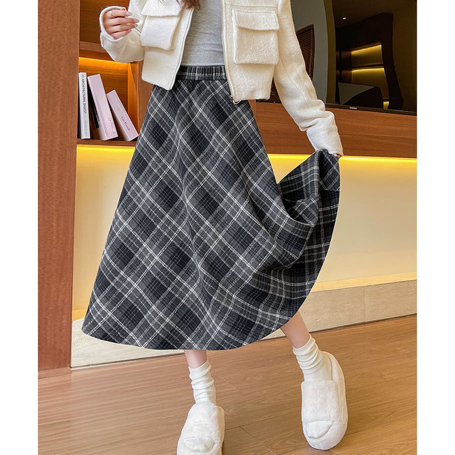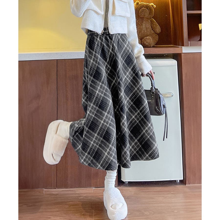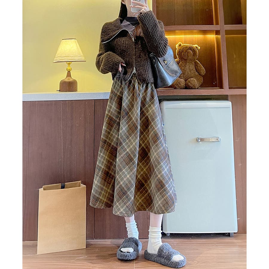 落ち着いた配色のチェック柄が、秋冬コーデにぴったり。