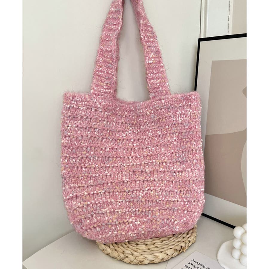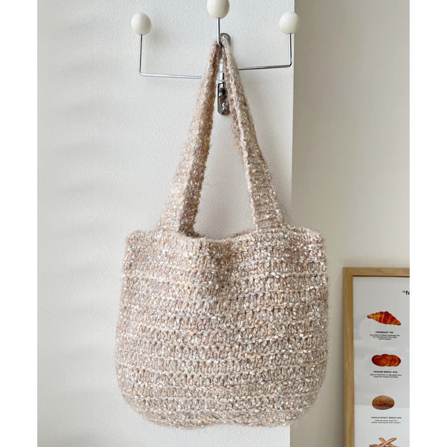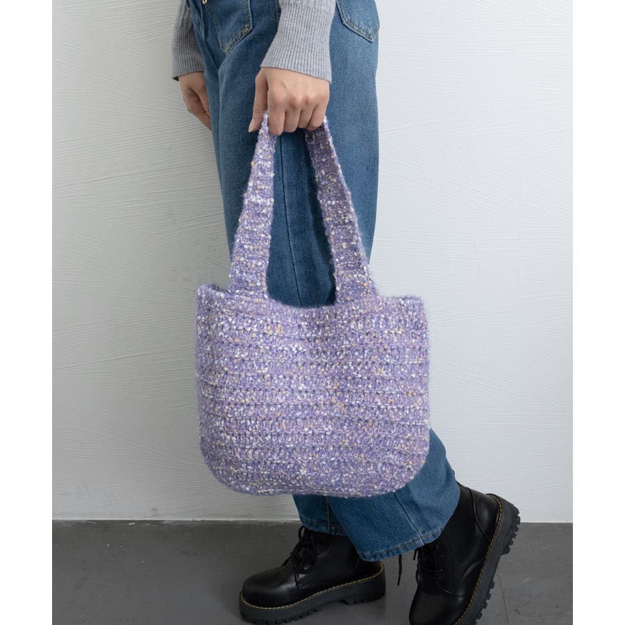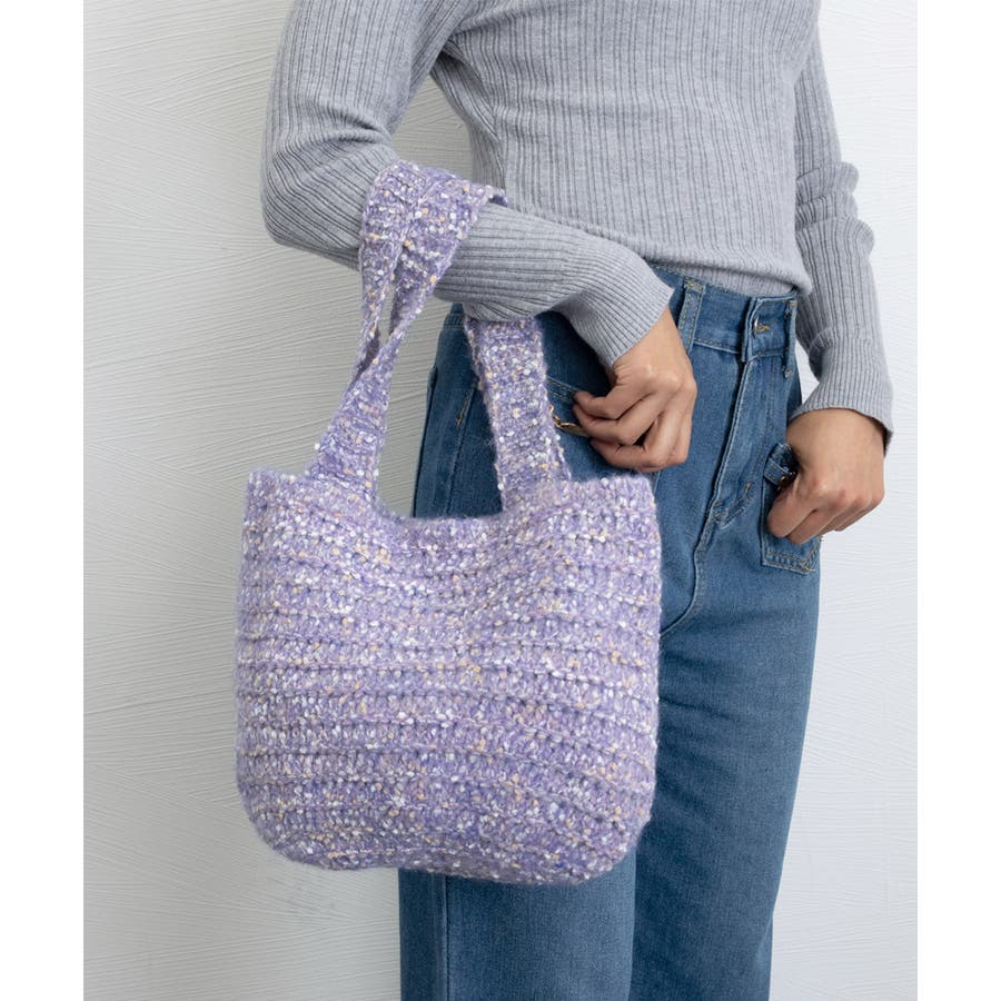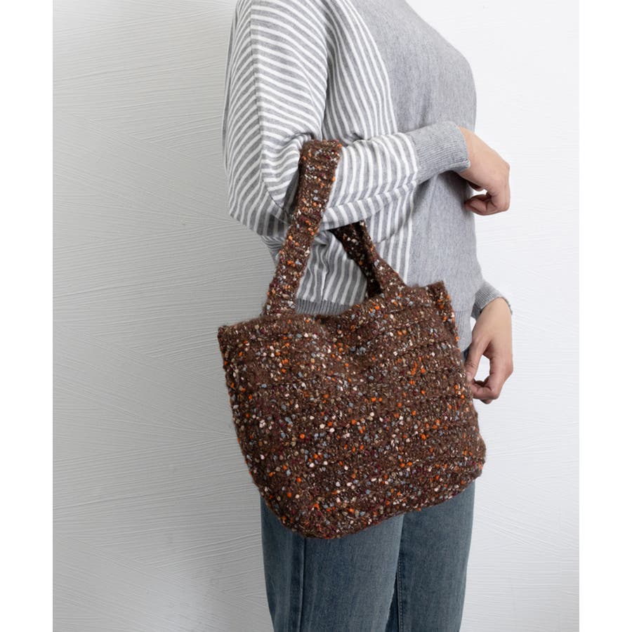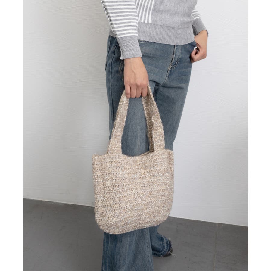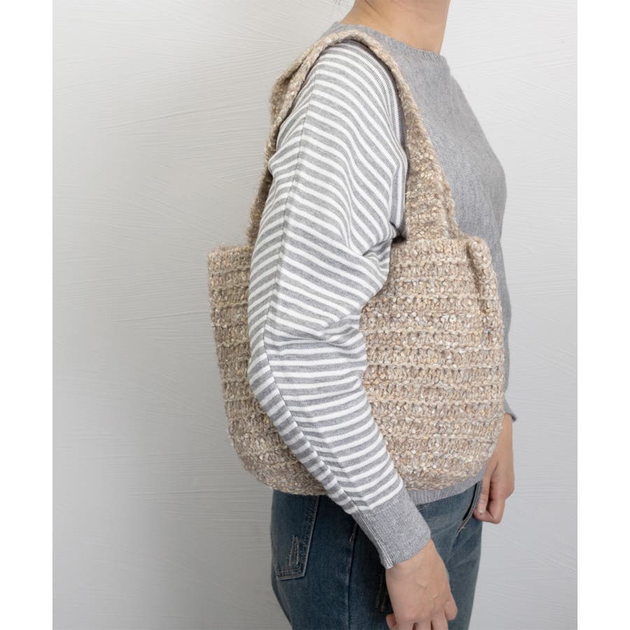 持つだけでコーディネートのワンポイントになるニットトートバッグ。