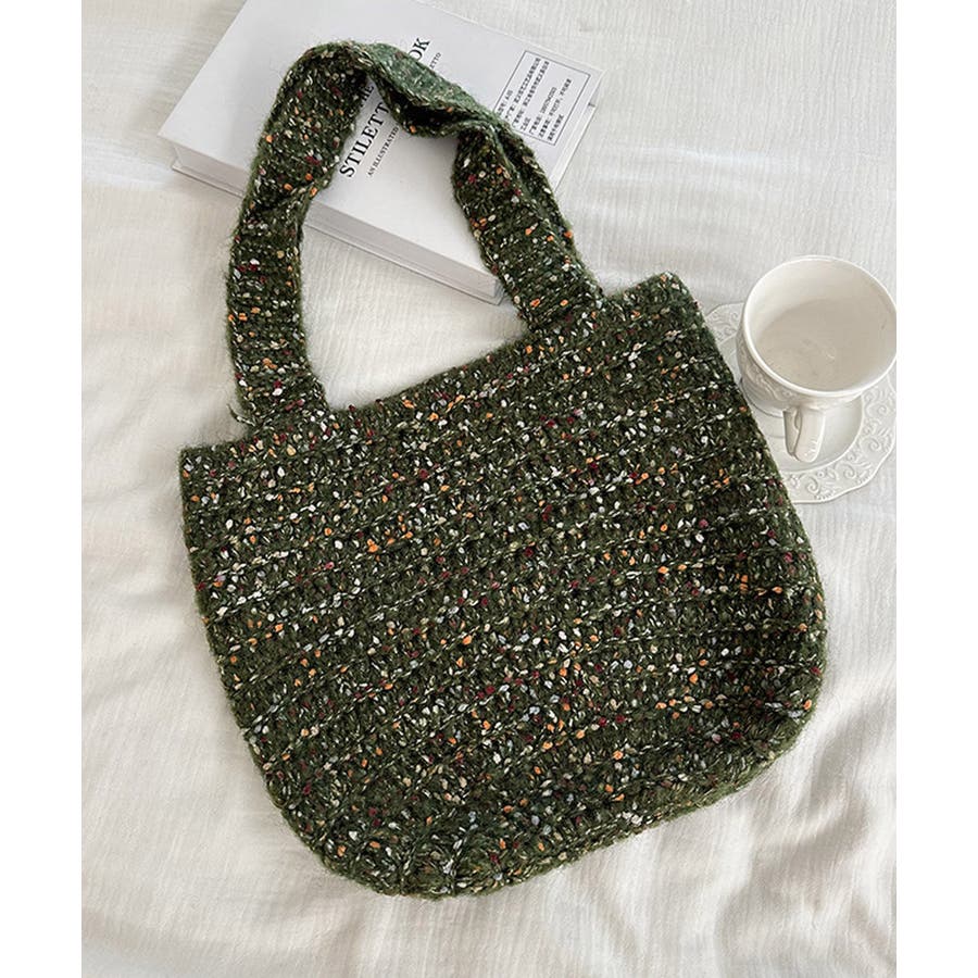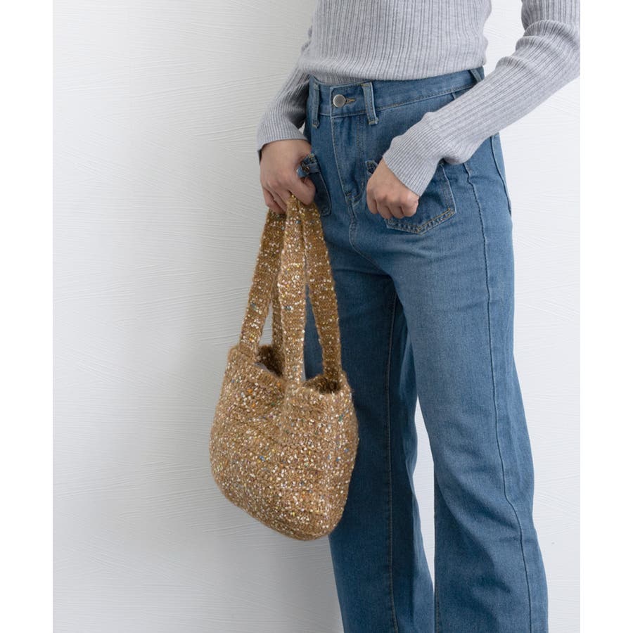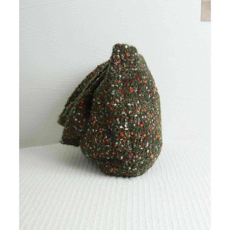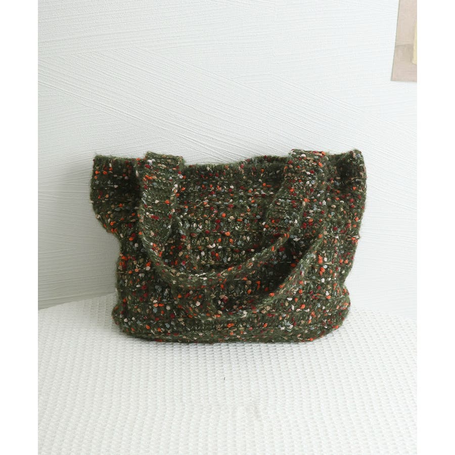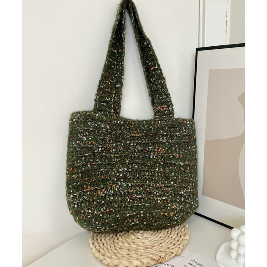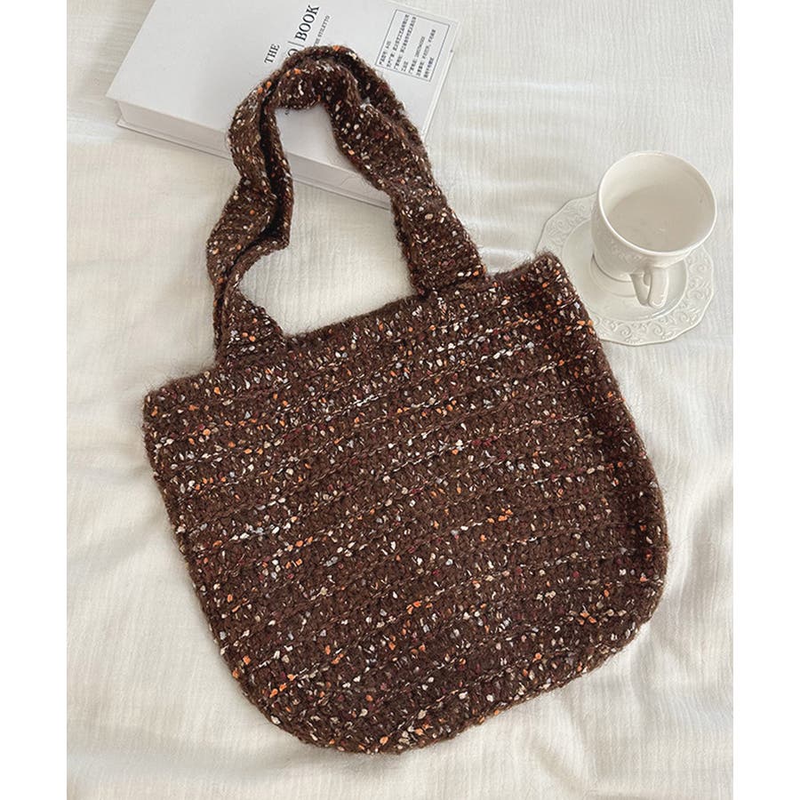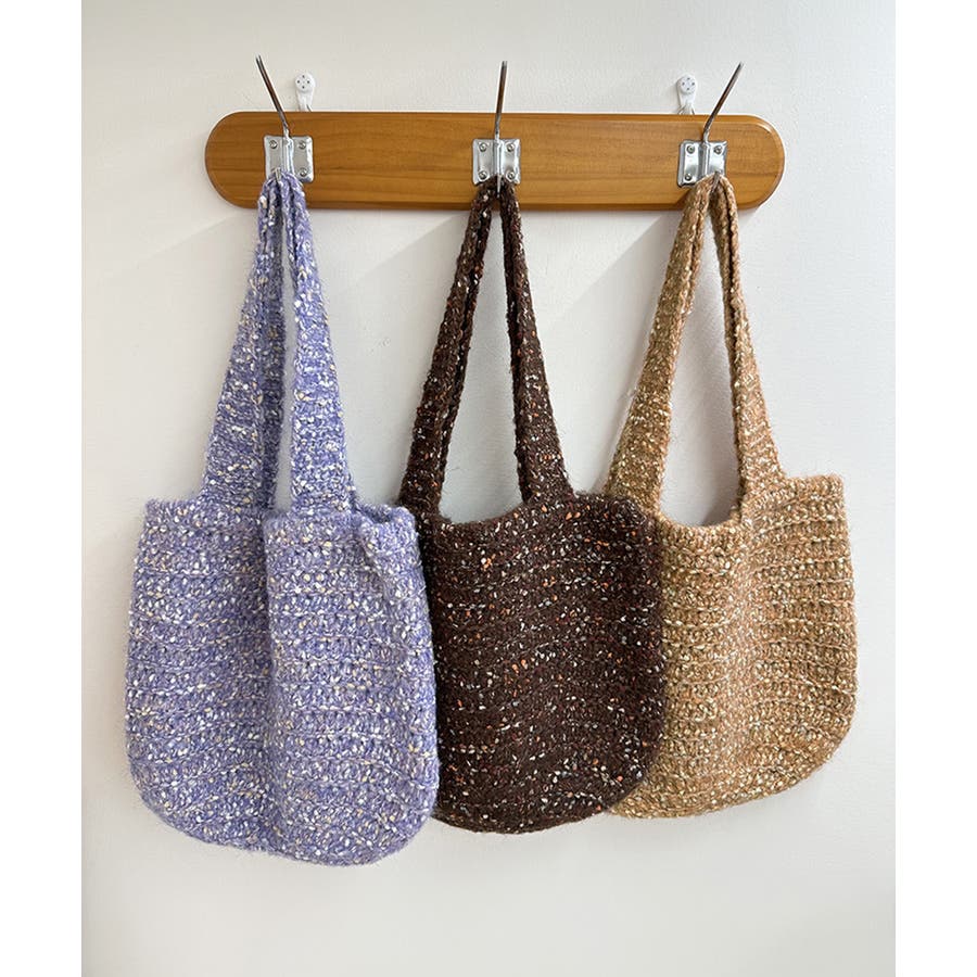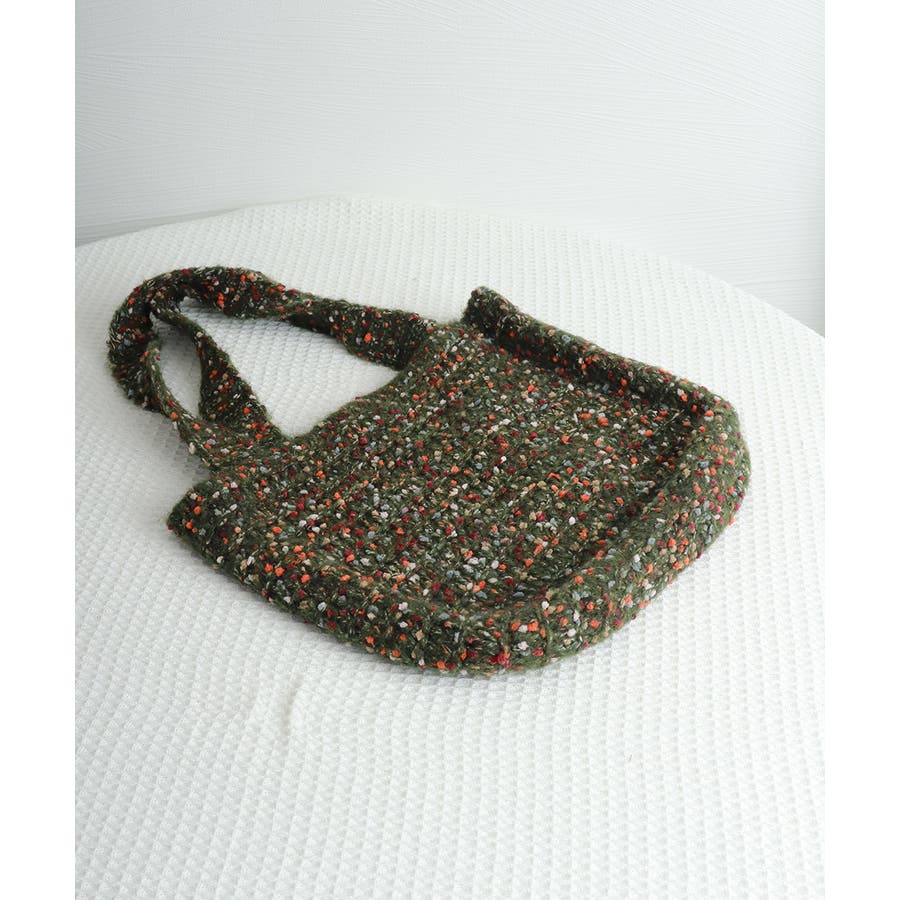 持つだけでコーディネートのワンポイントになるニットトートバッグ。