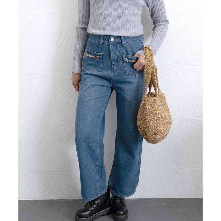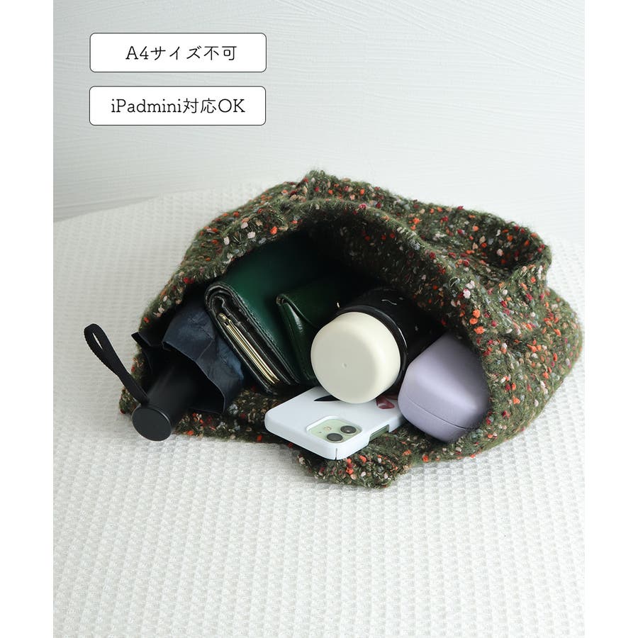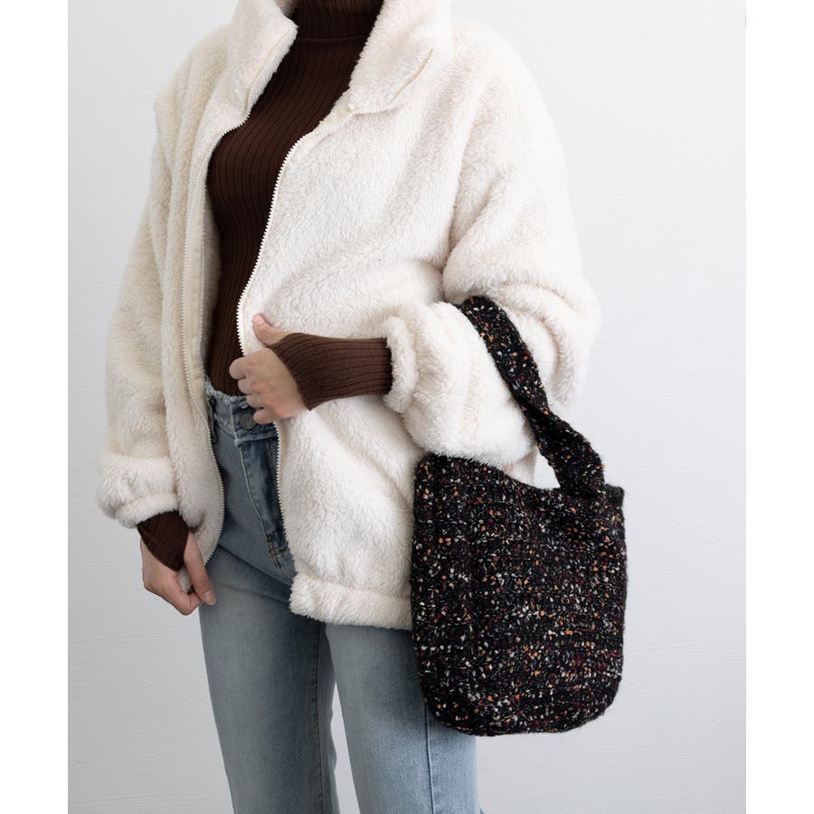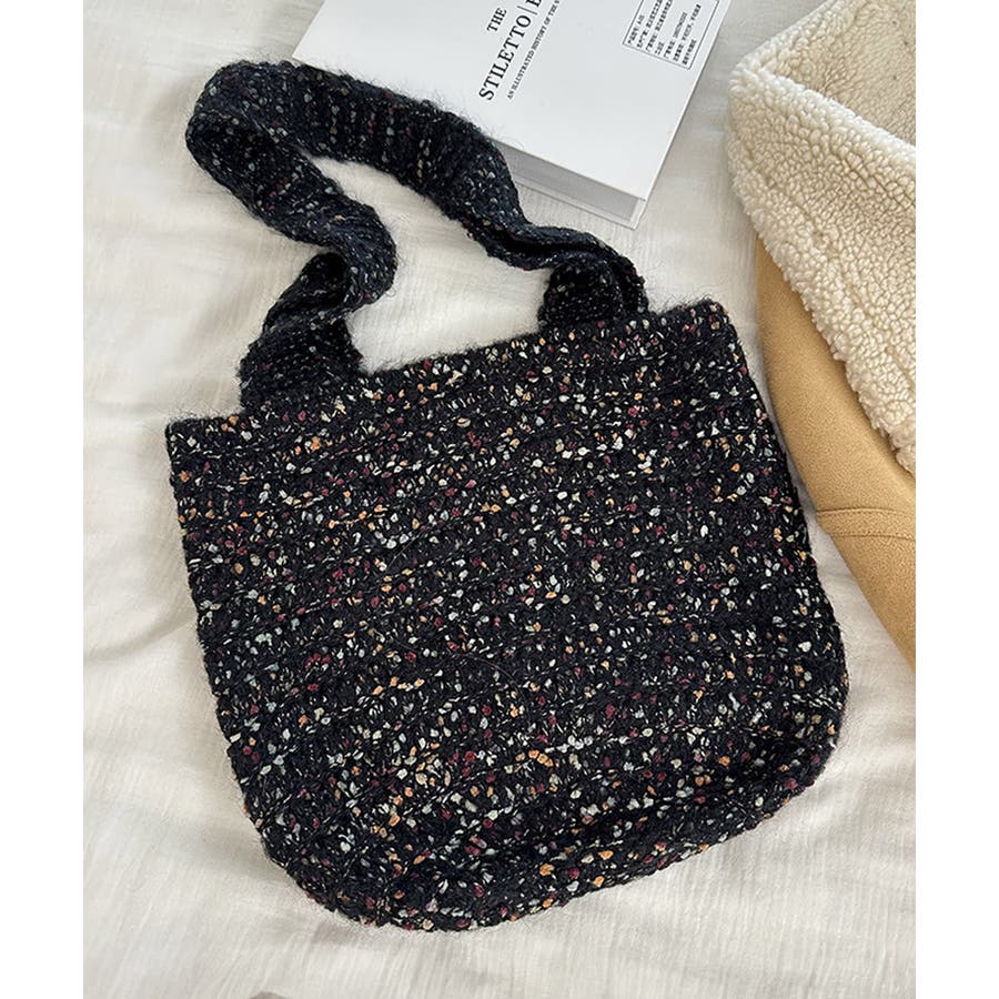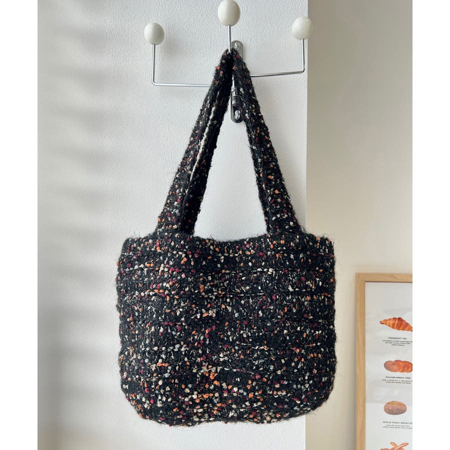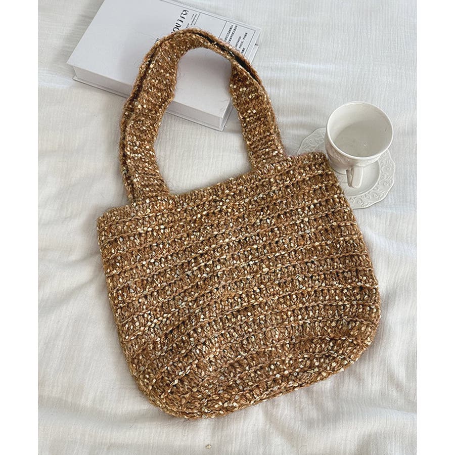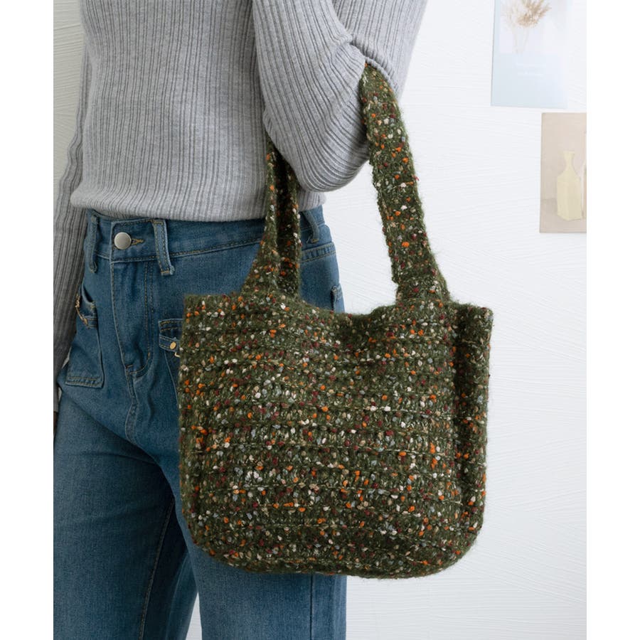 持つだけでコーディネートのワンポイントになるニットトートバッグ。