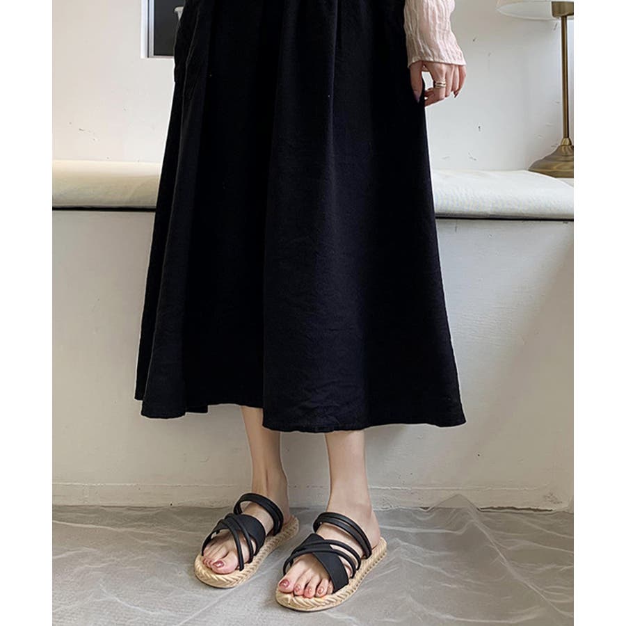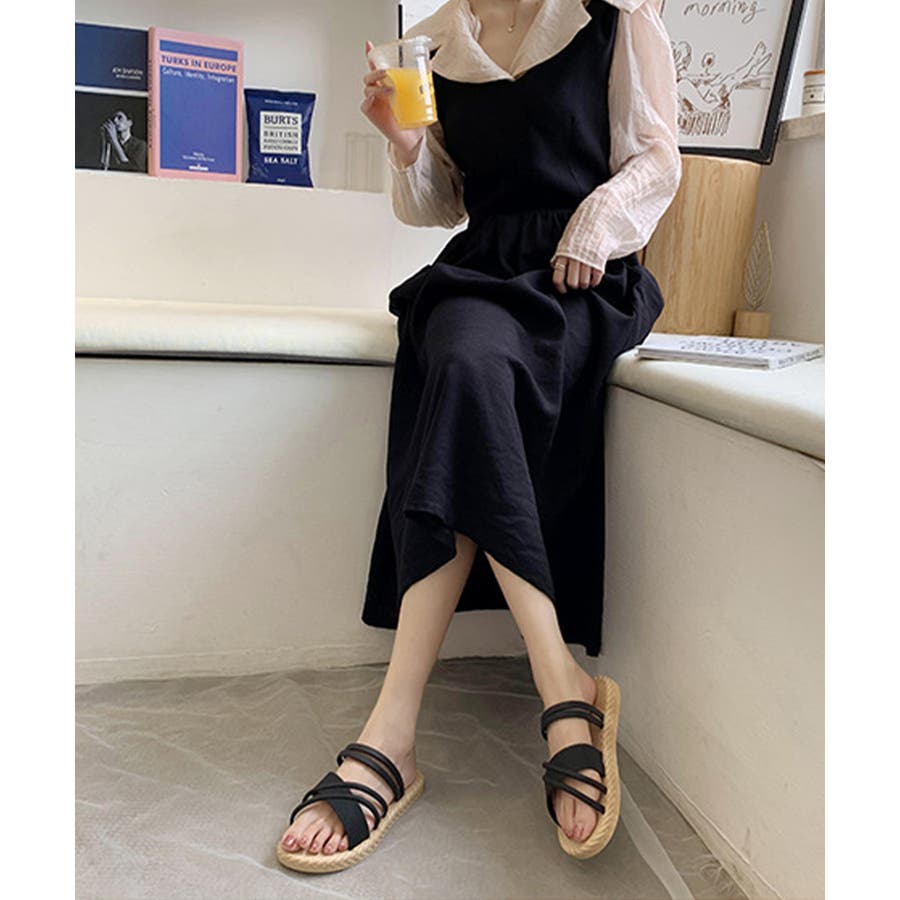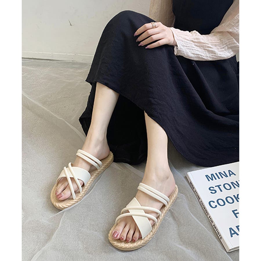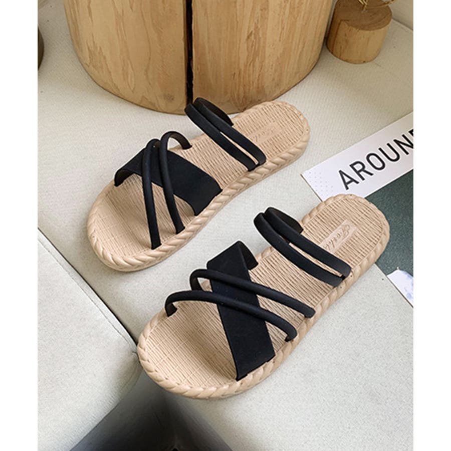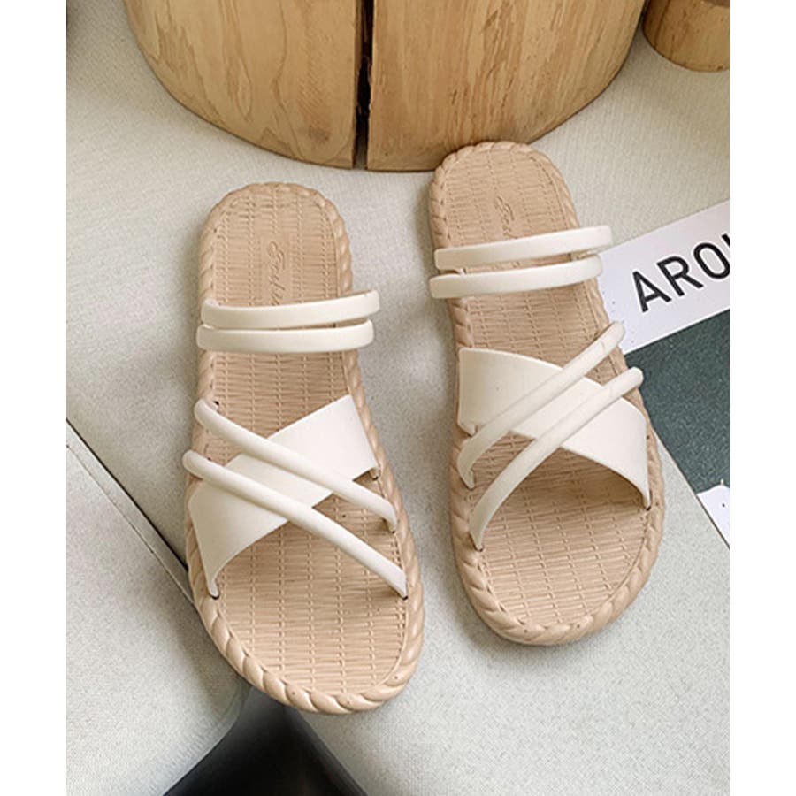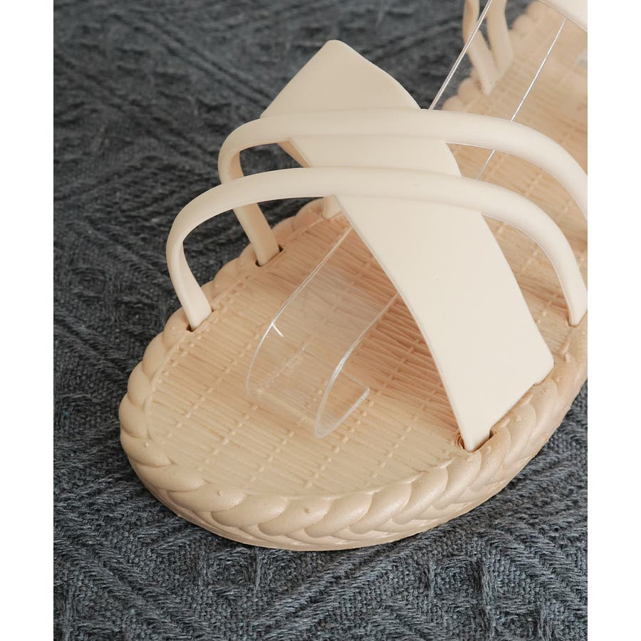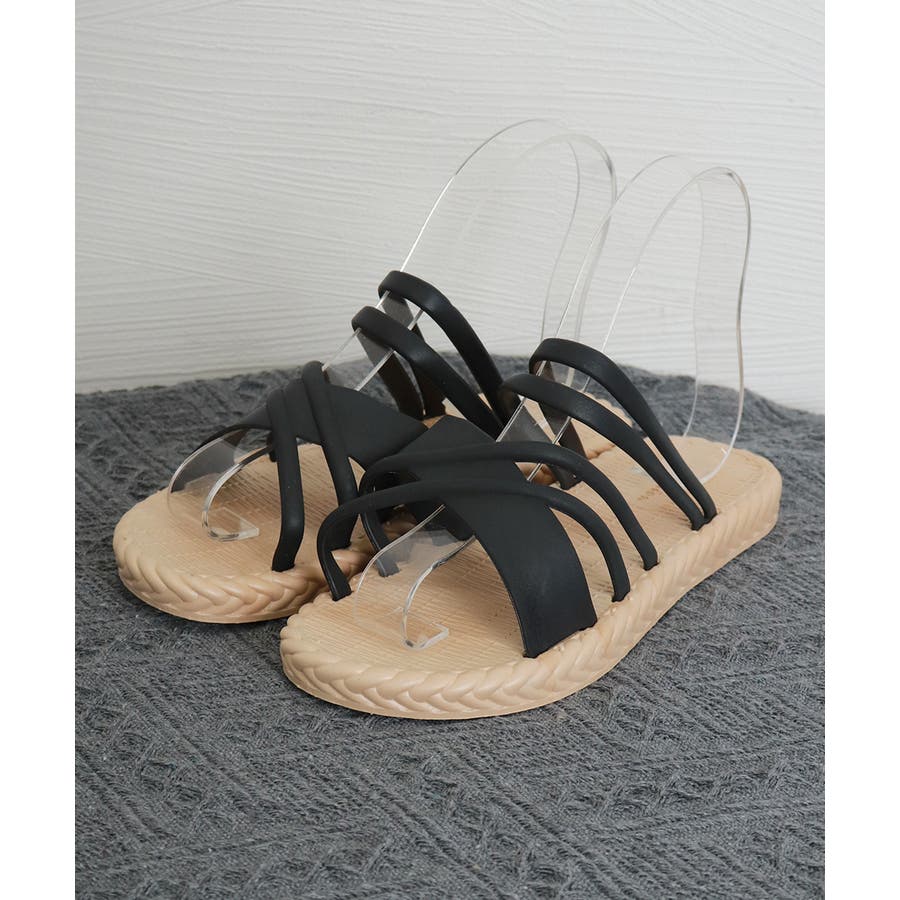 立体感のあるクロスストラップを合わせたフラットサンダル。