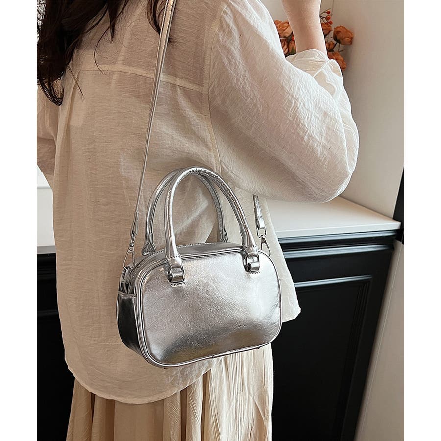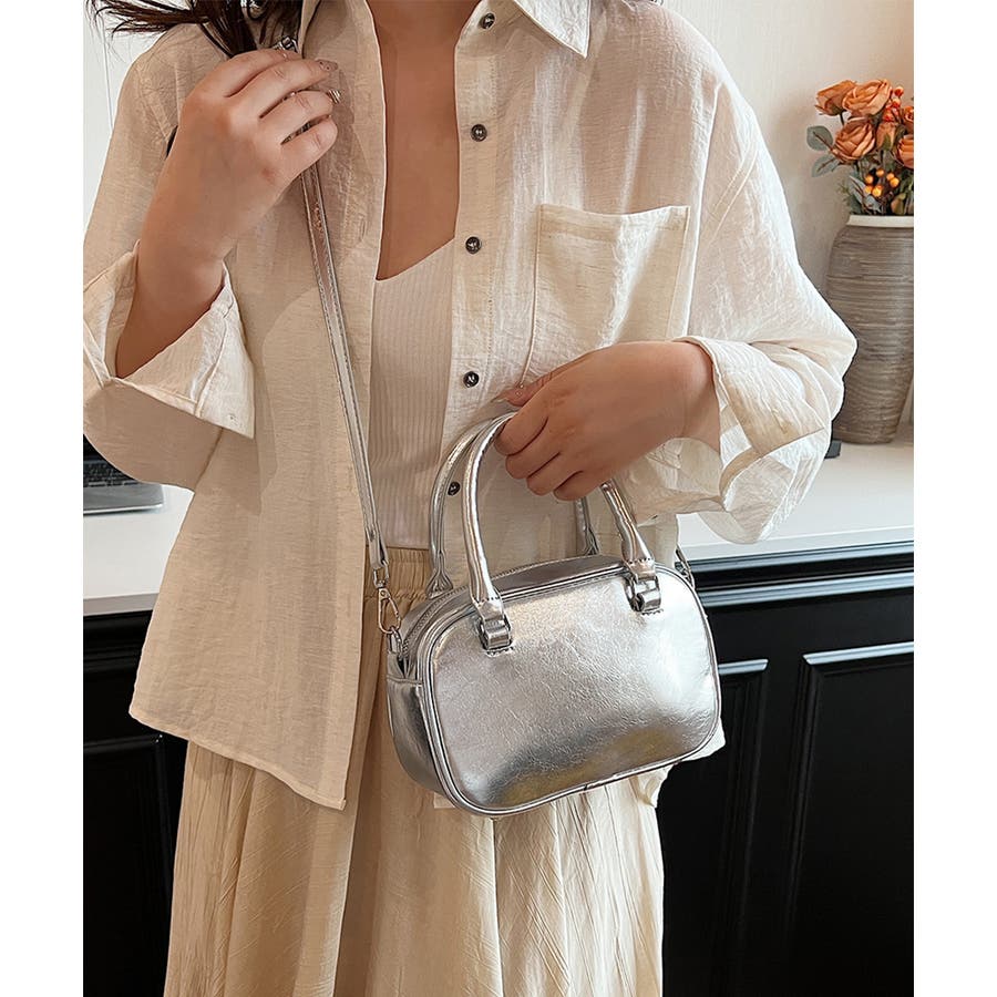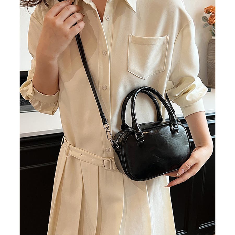 光沢感のある目を惹く、ミニサイズのハンドバッグ