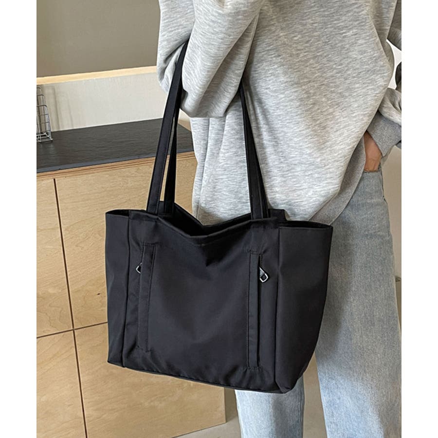 ファスナー式の開口部と広々とした収納スペースを備えた実用的なバッグです。