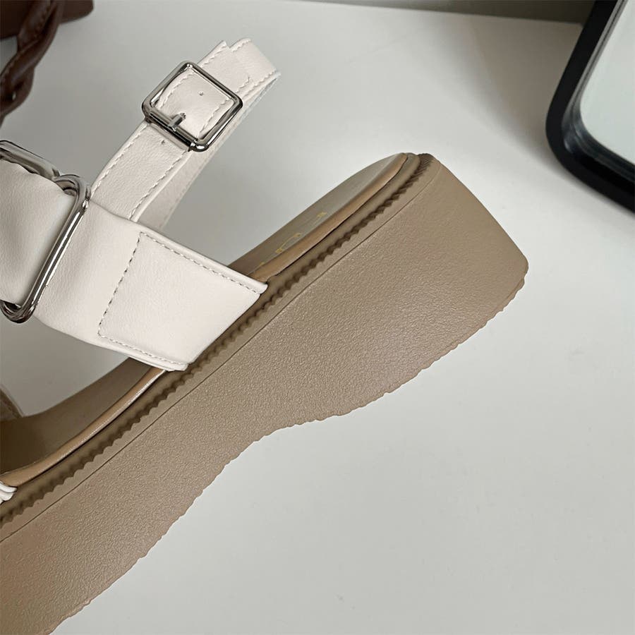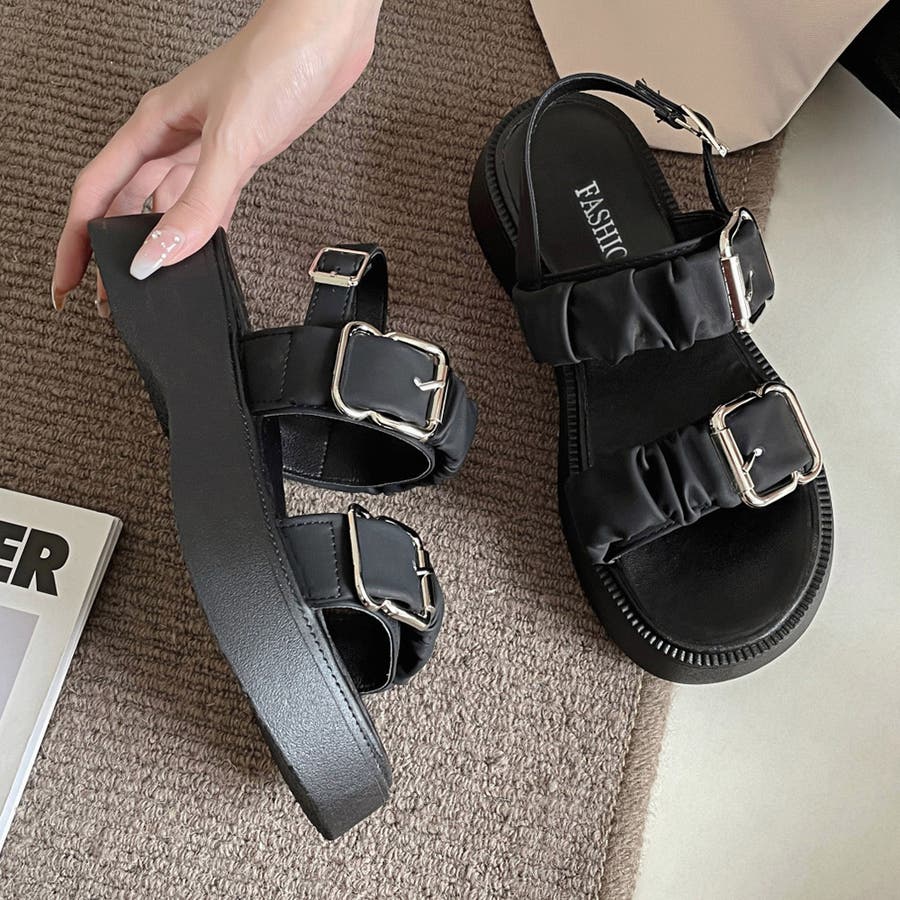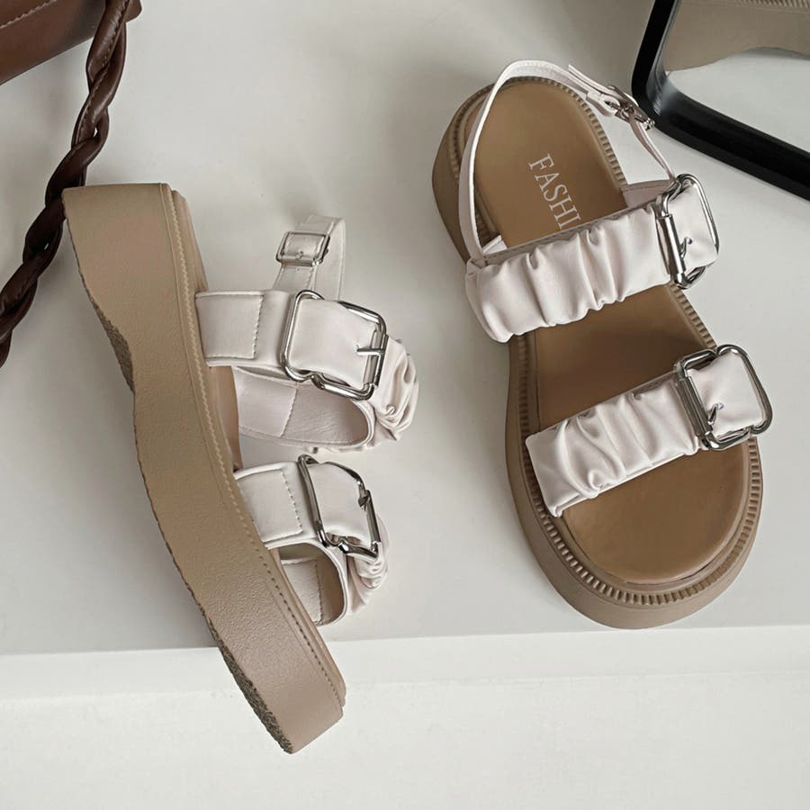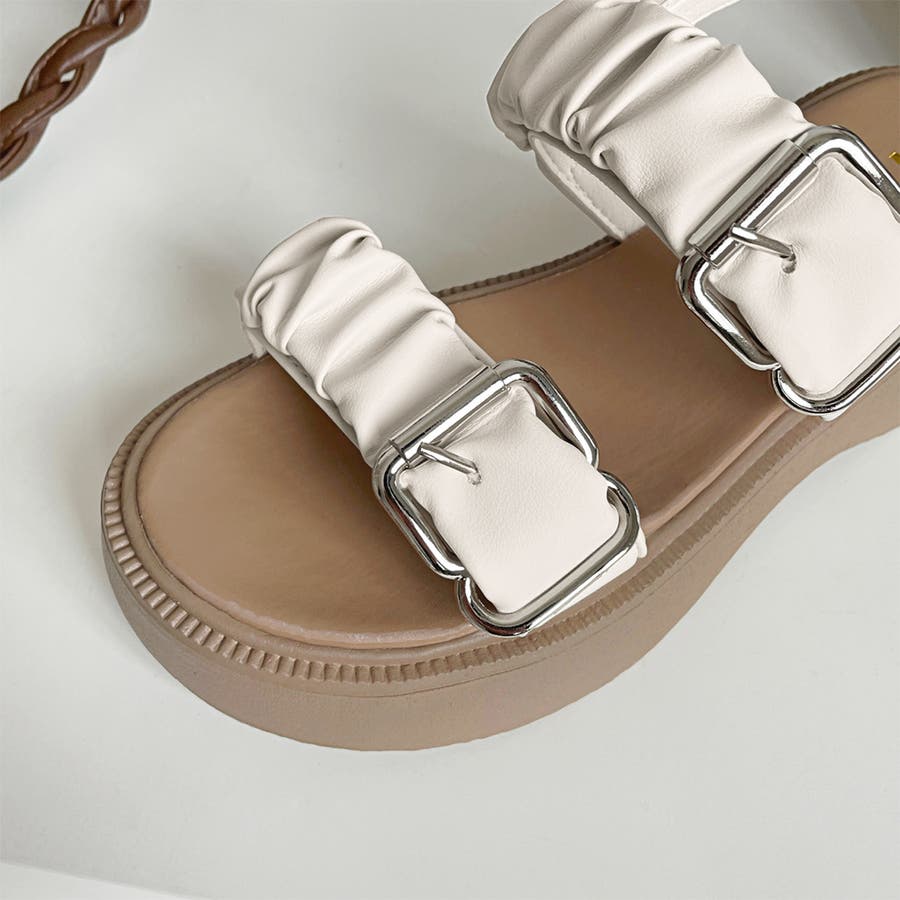 ダブルギャザーベルトがかわいい厚底サンダルが登場。