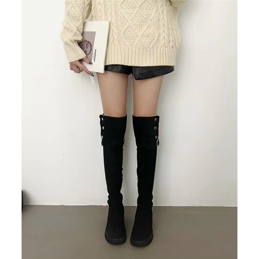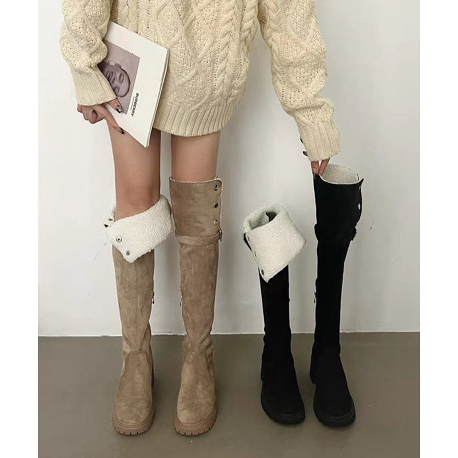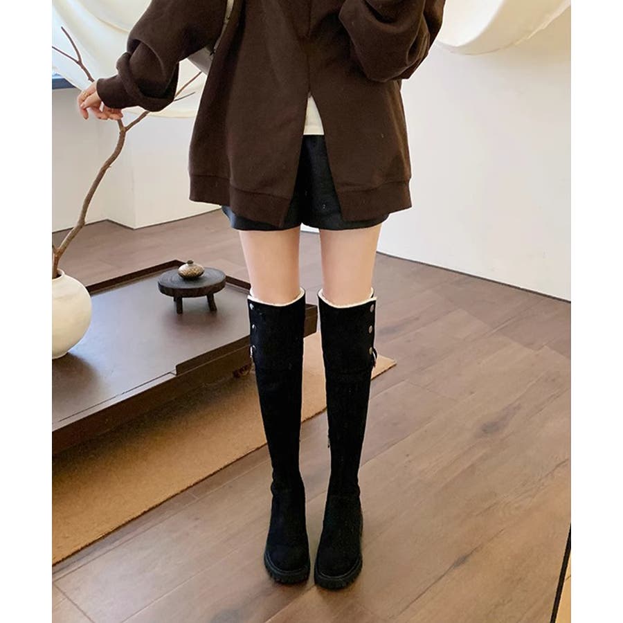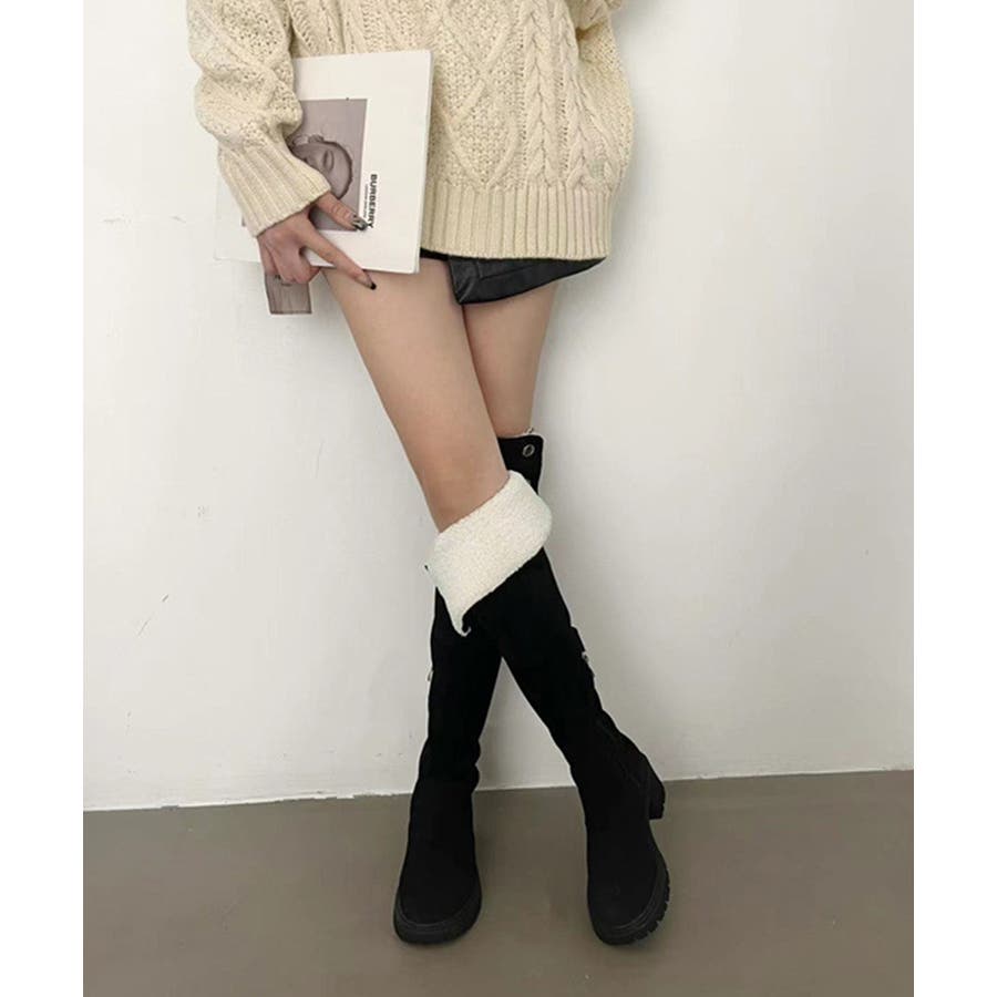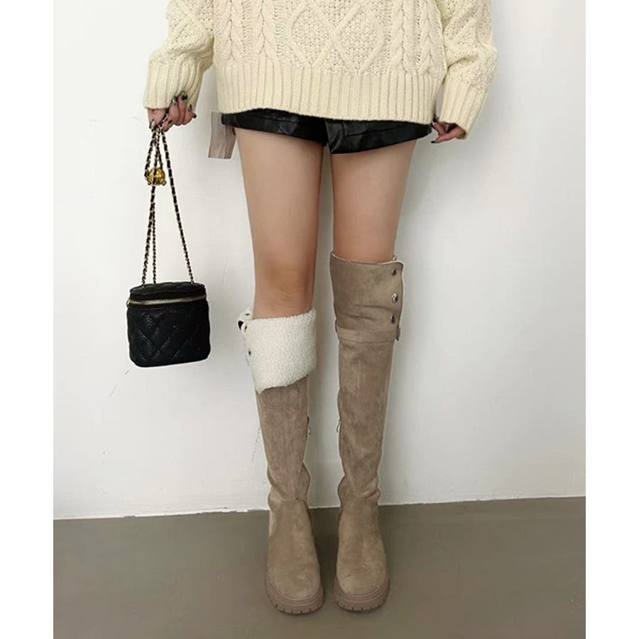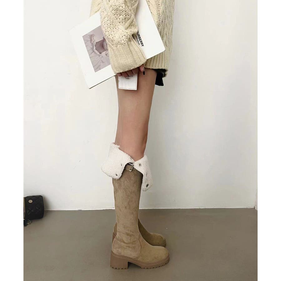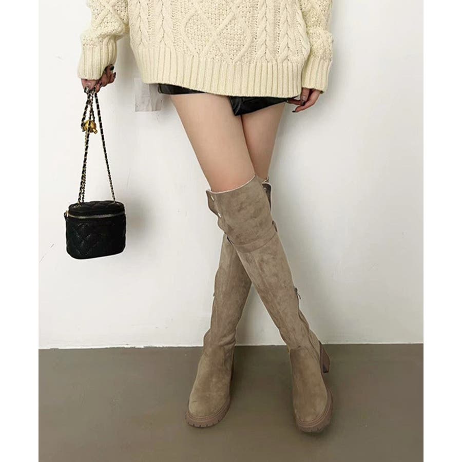 程よいヒールの高さで、シーズンムードを高めるニーハイブーツ。