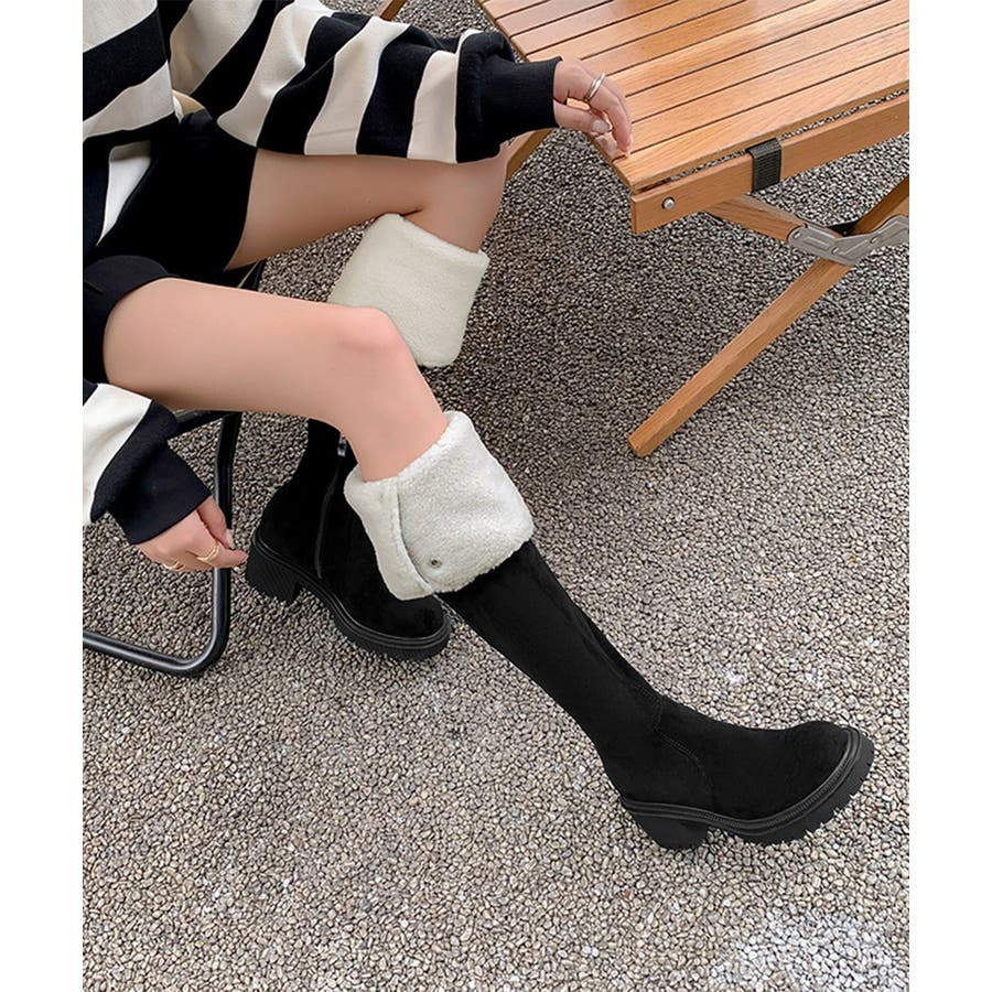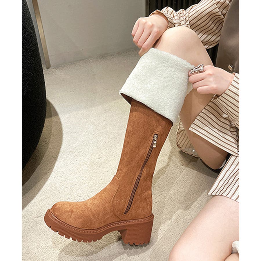太ヒールブーツ 防寒ブーツ 秋冬 歩きやすいブーツ