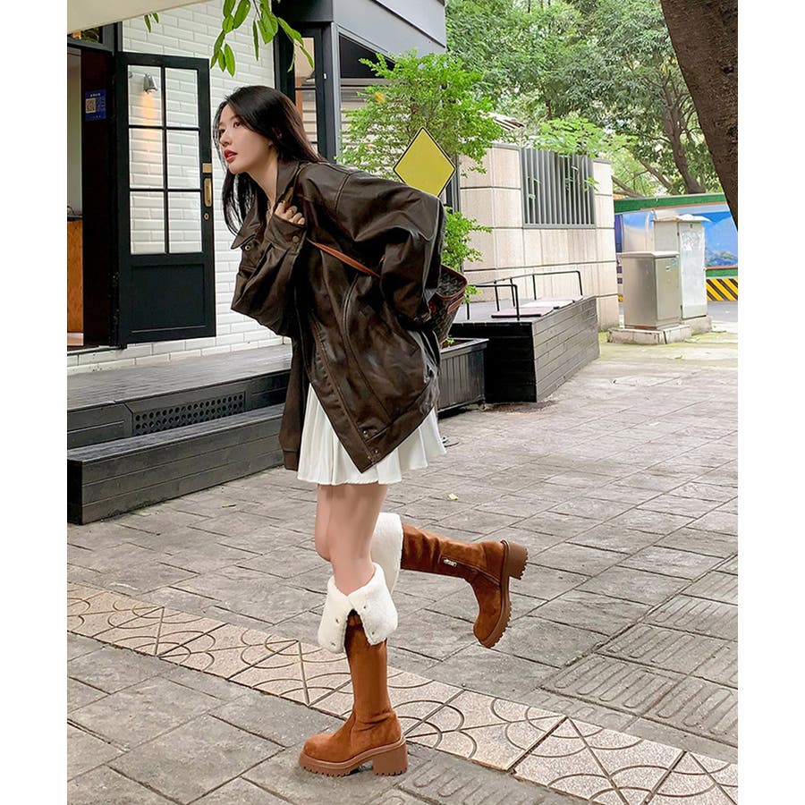 ミニ丈のボトムスはもちろん、ロングスカートに合わせてブーツをのぞかせるスタイルも。