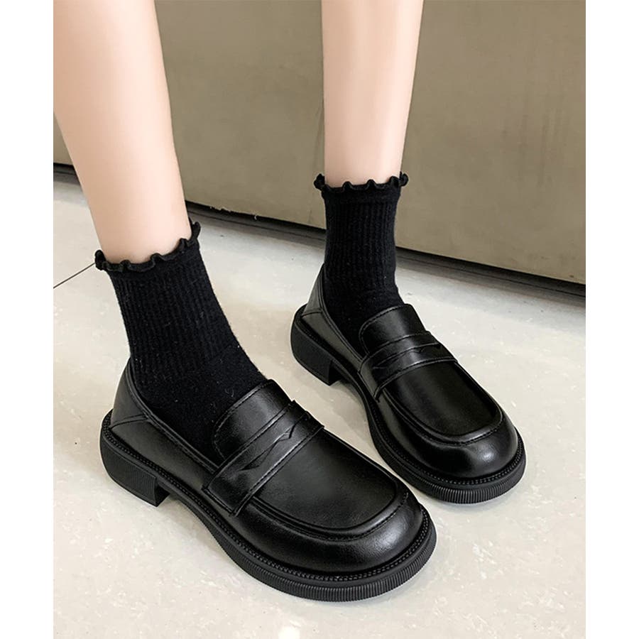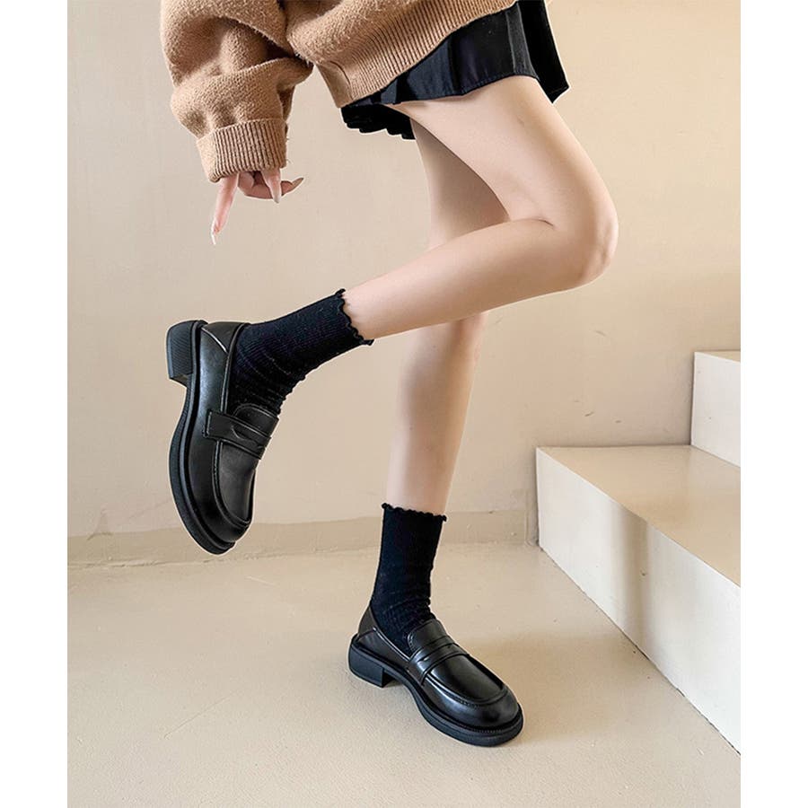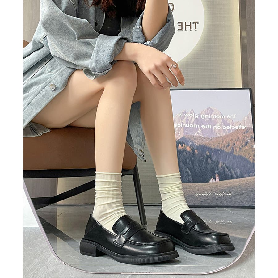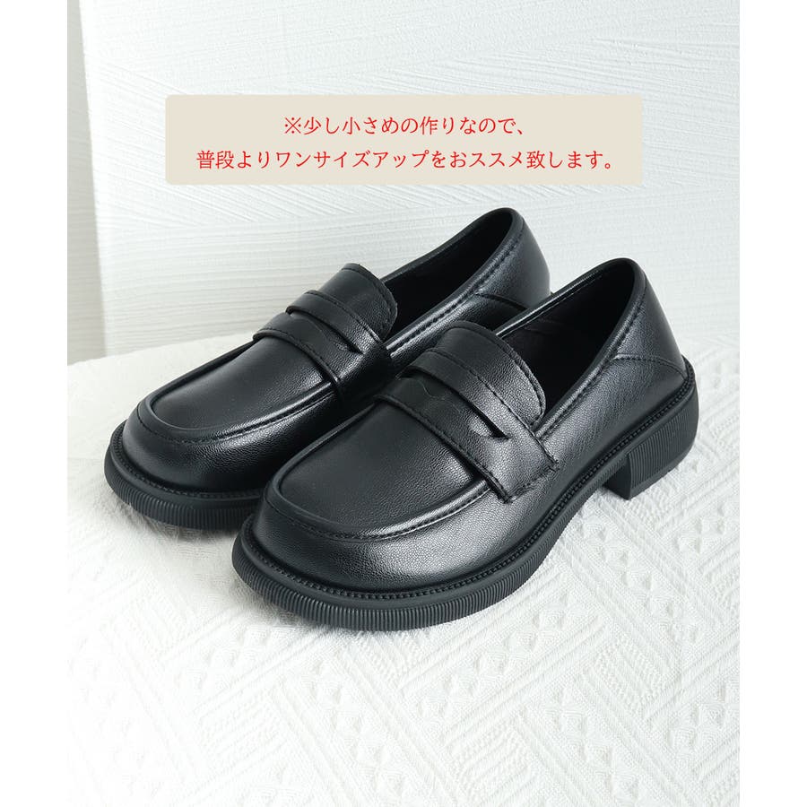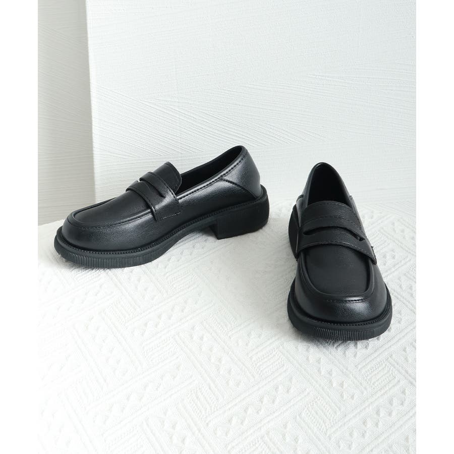 ローファーパンプス 学院風シューズ 太ヒールシューズ