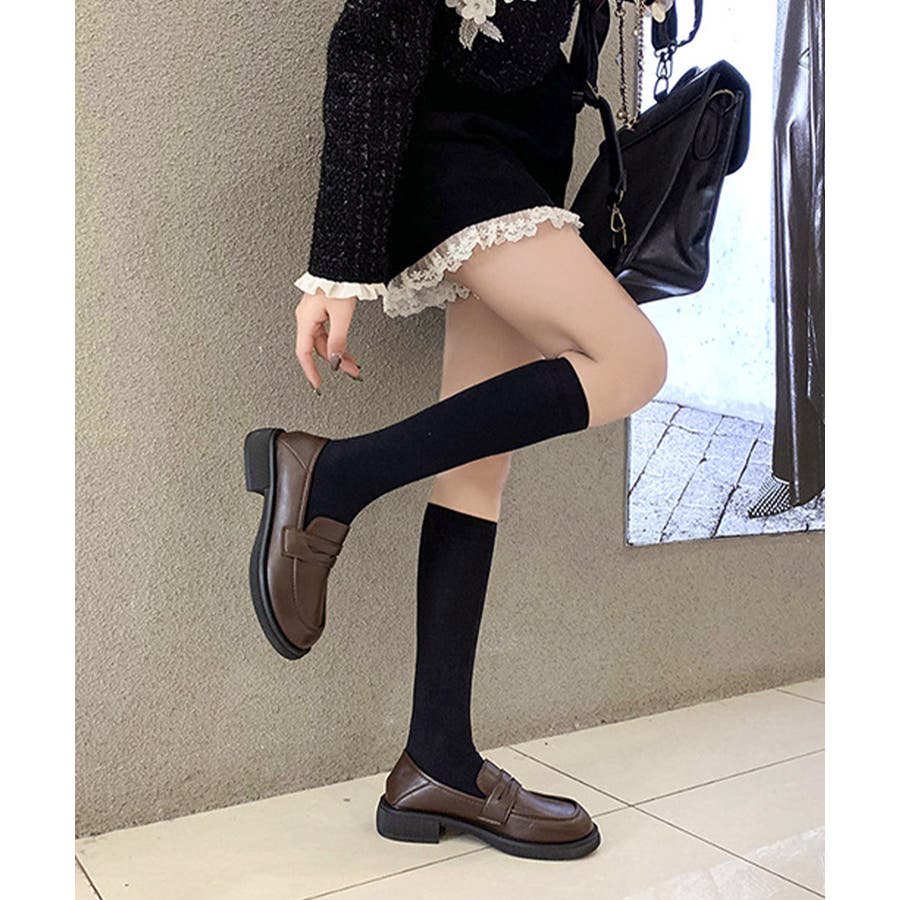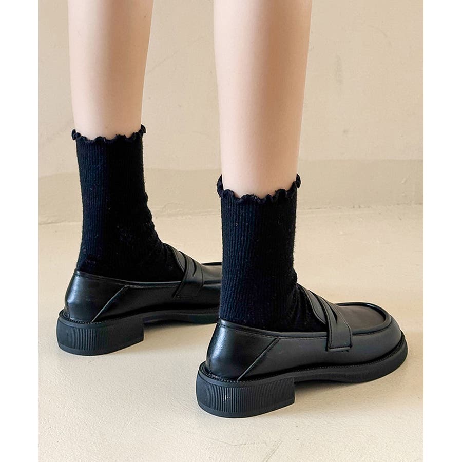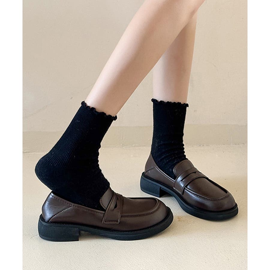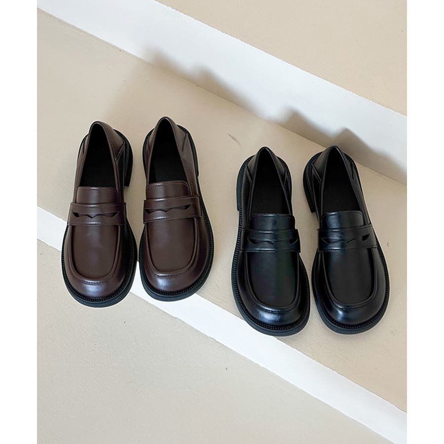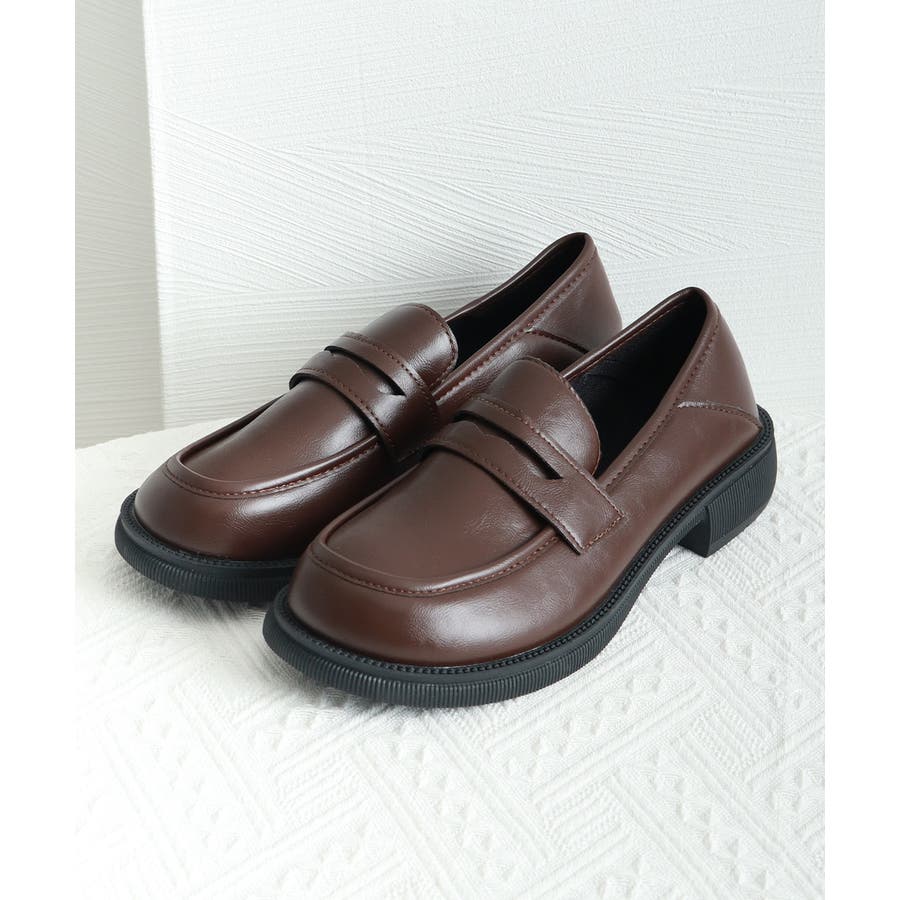 ローファーパンプス 学院風シューズ 太ヒールシューズ