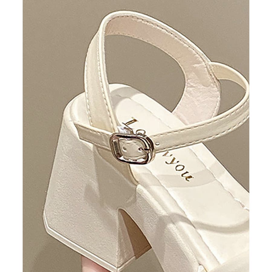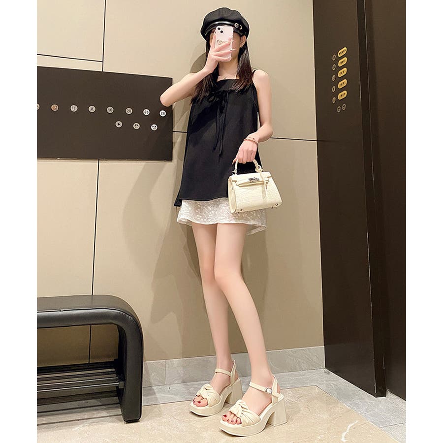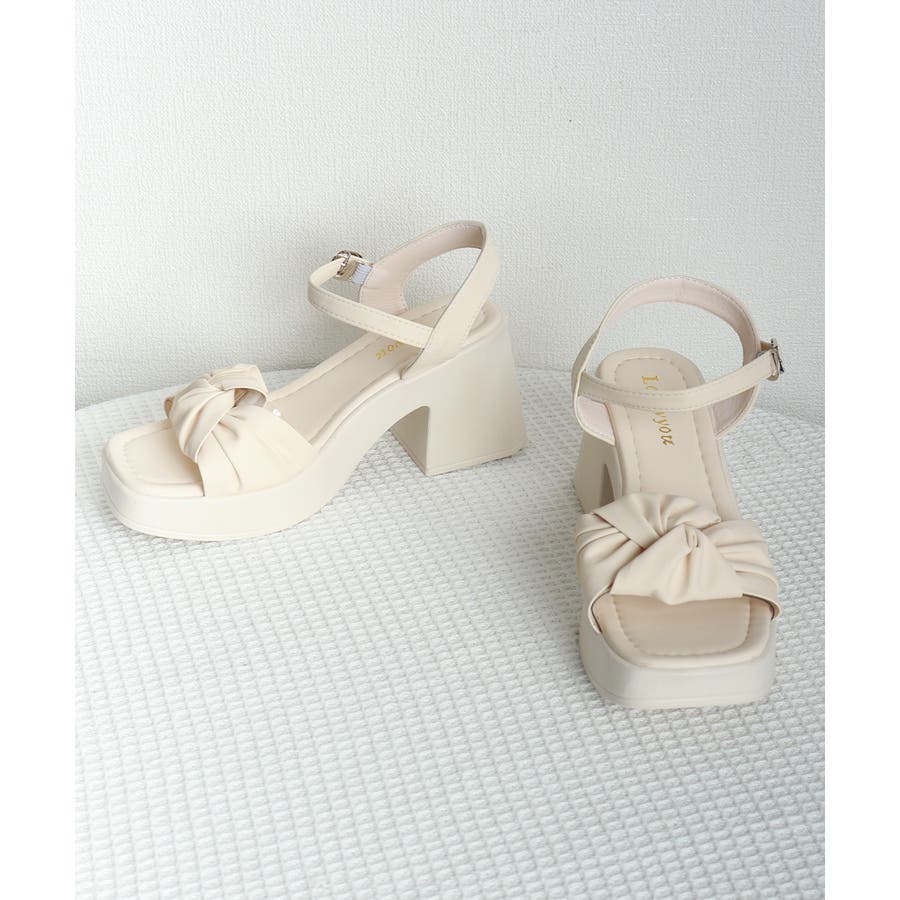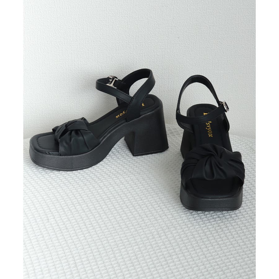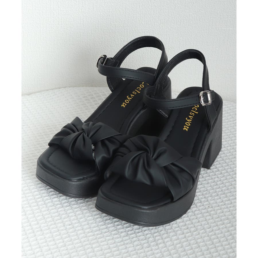 太ヒールサンダル レディース リボン風