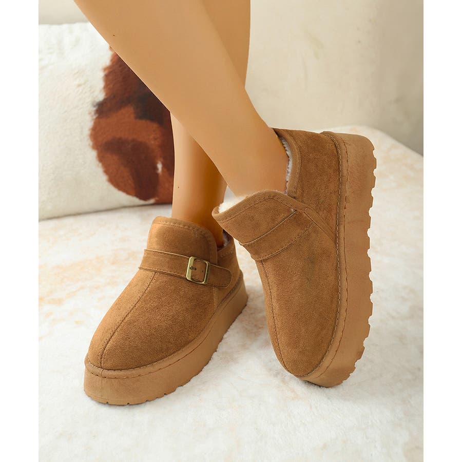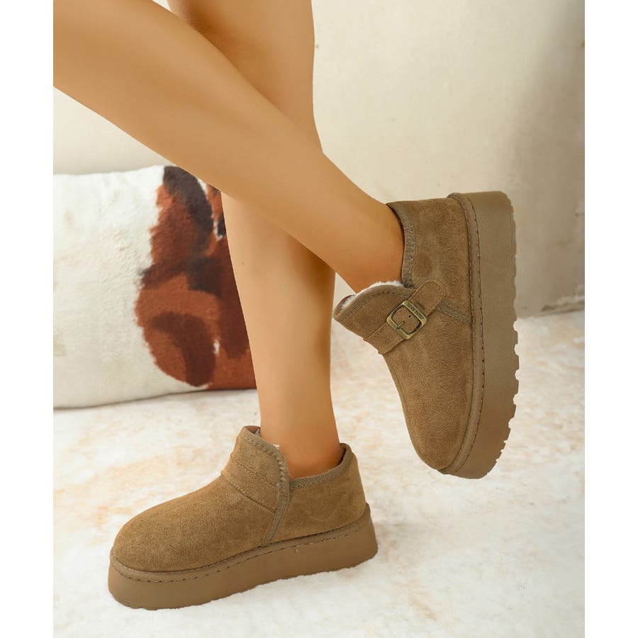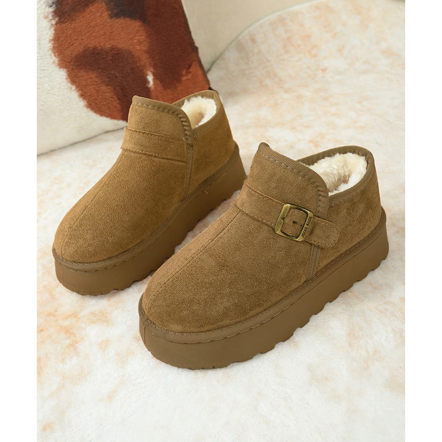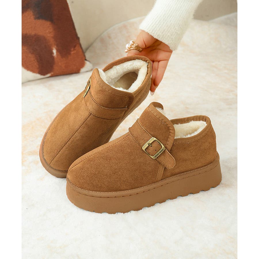 暖かい防寒ブーツ 無地もこもこブーツ 保温ショートブーツ