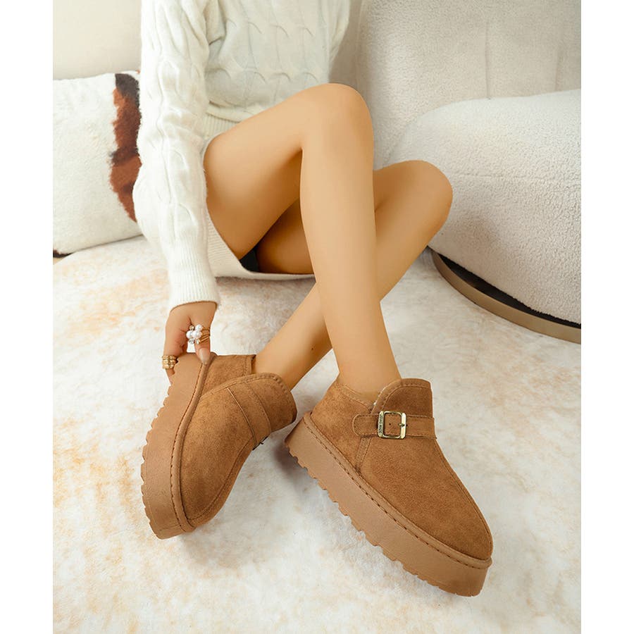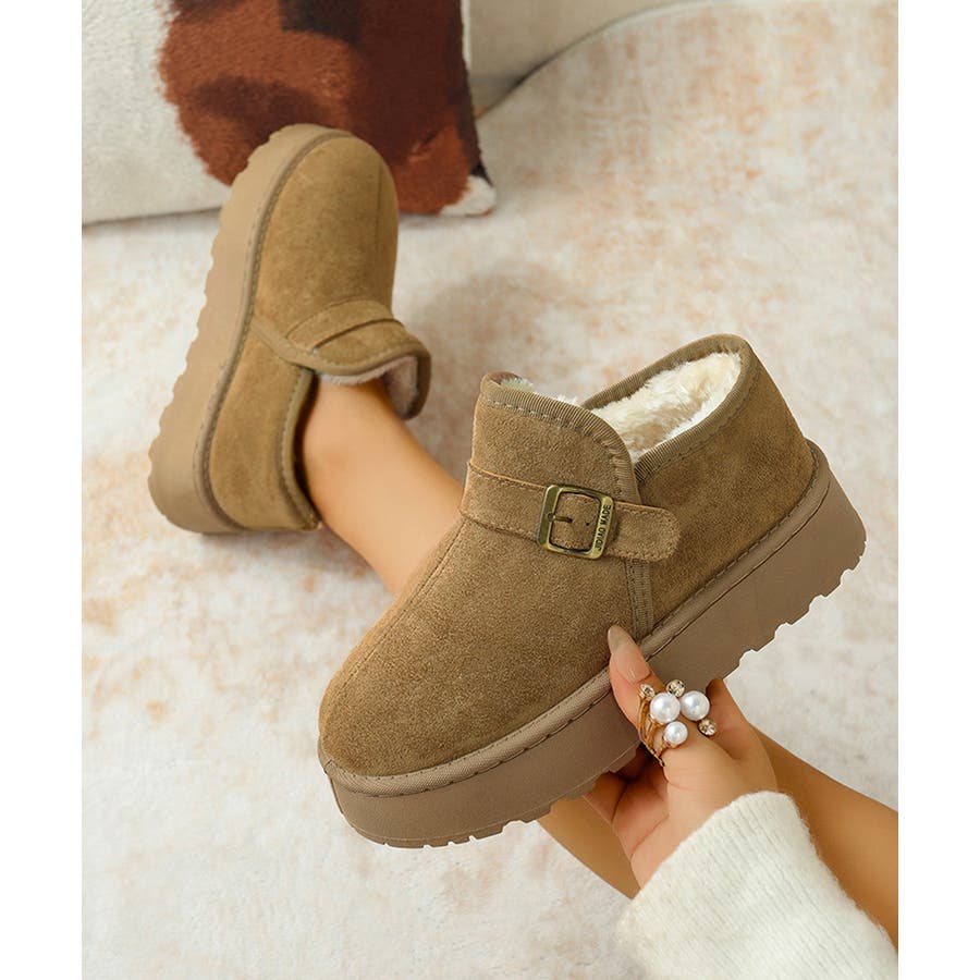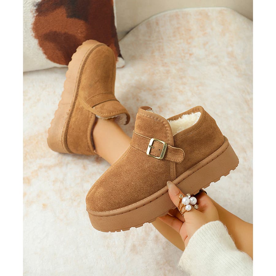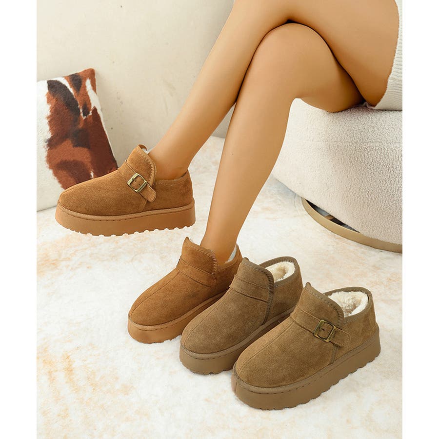 暖かい防寒ブーツ 無地もこもこブーツ 保温ショートブーツ