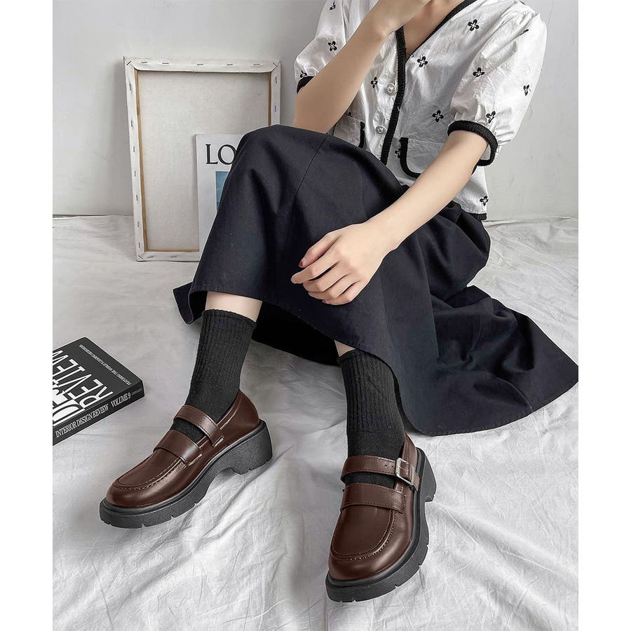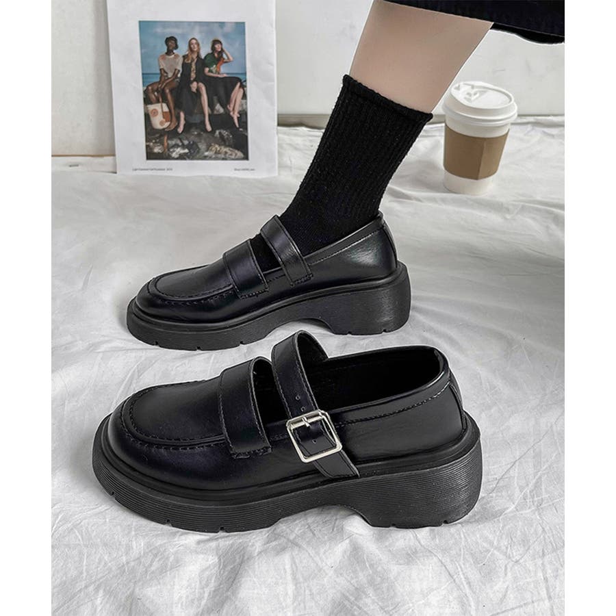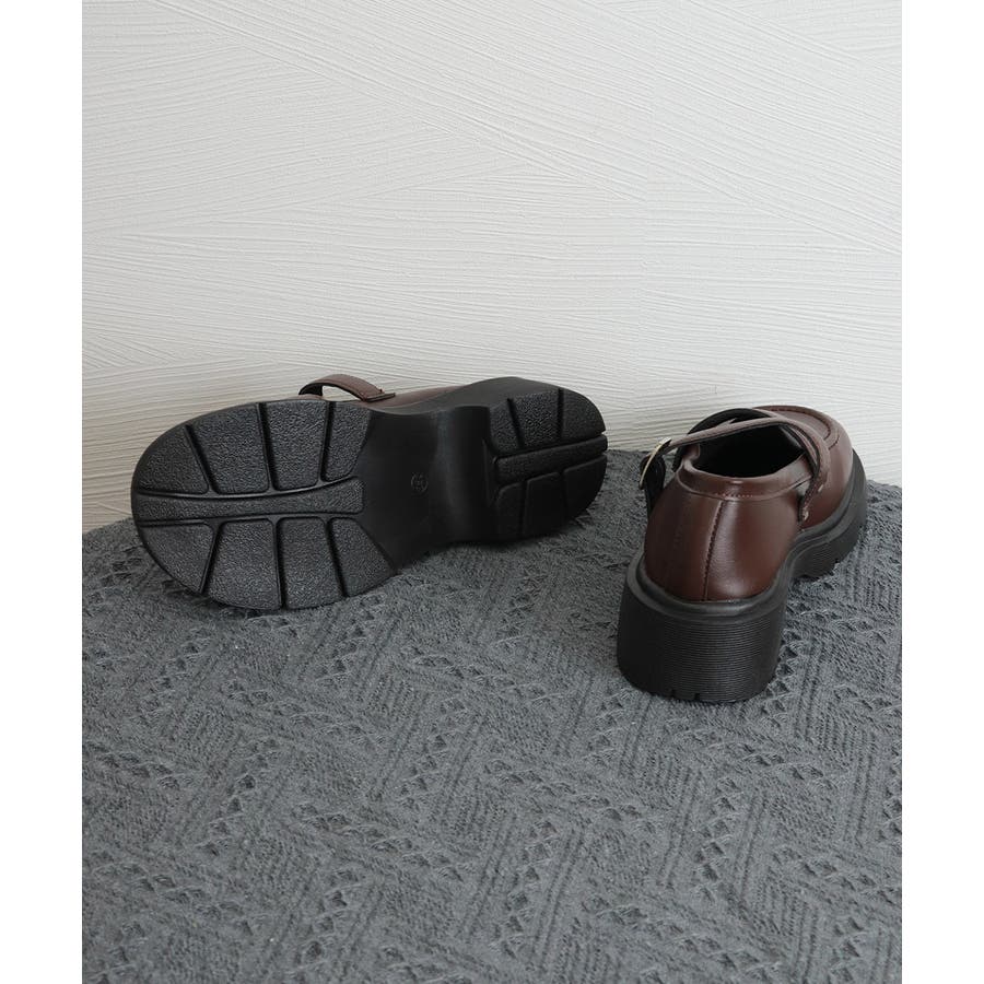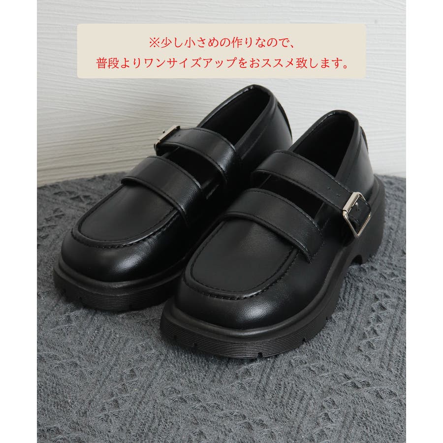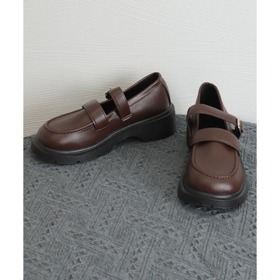 ころんとしたフォルムが可愛い、ストラップ付きローファー。