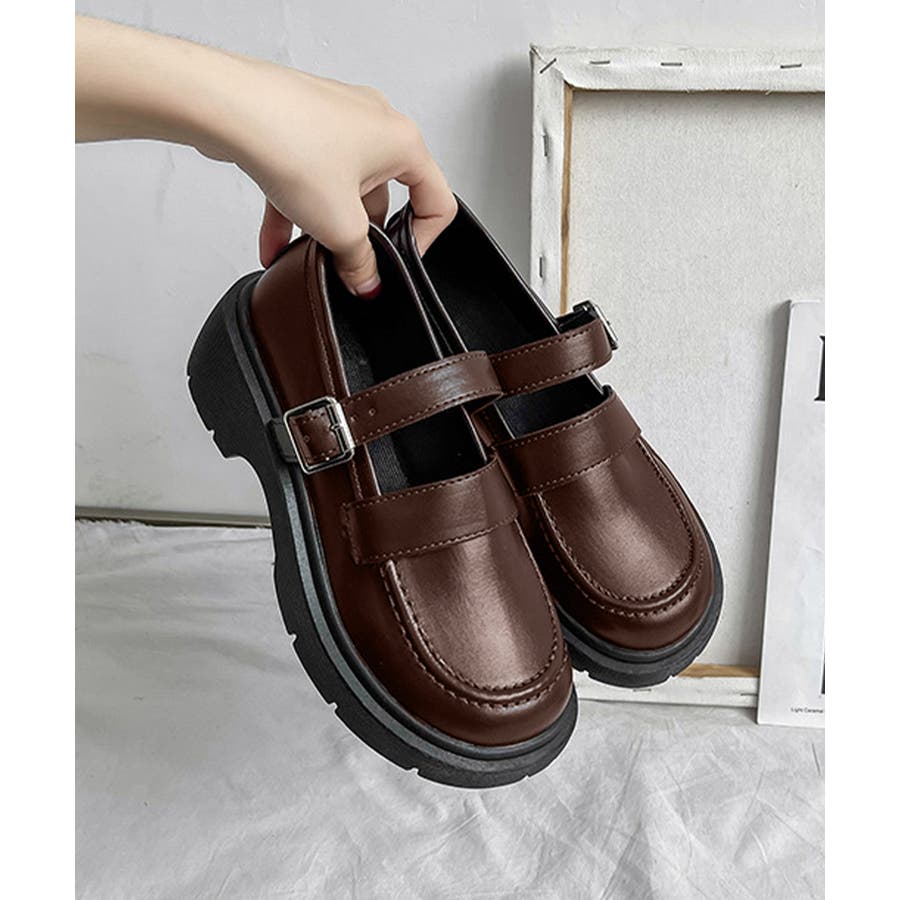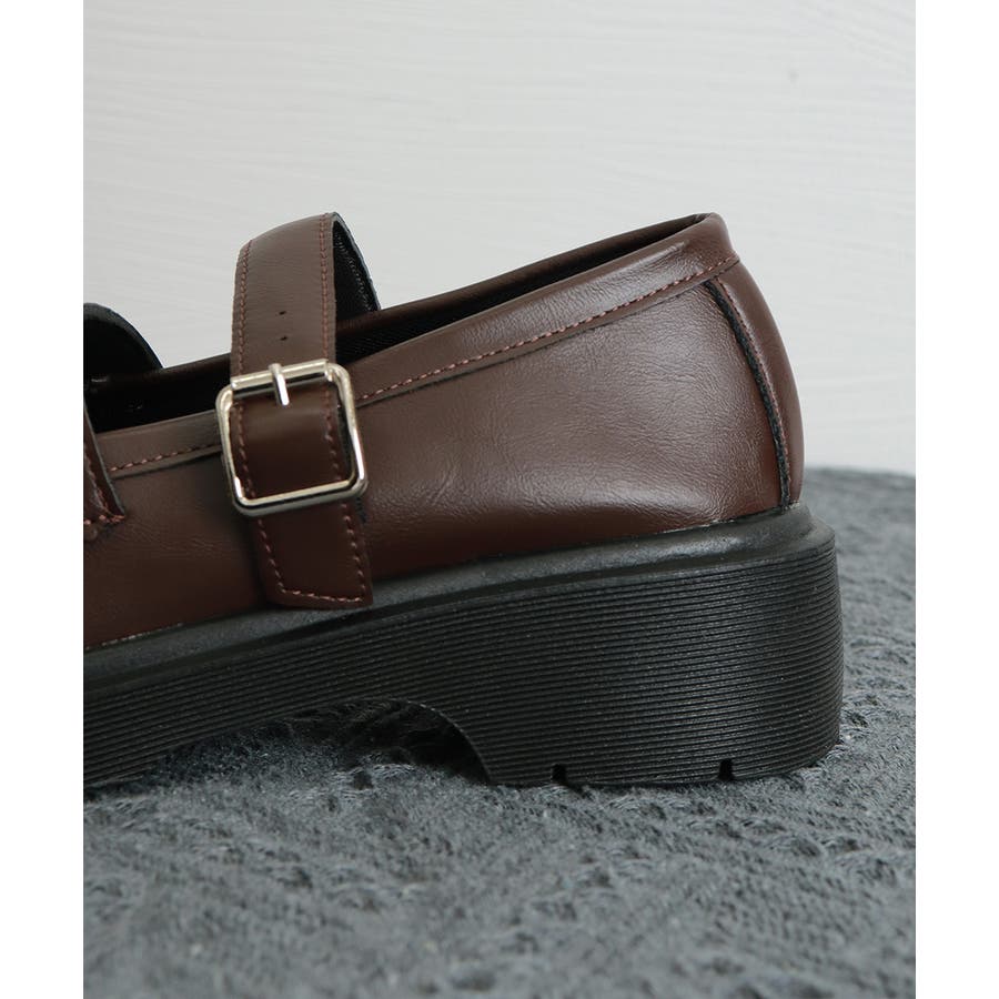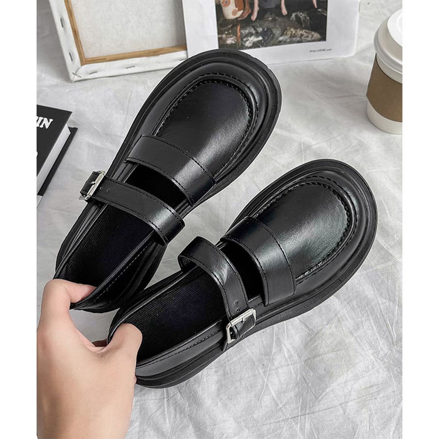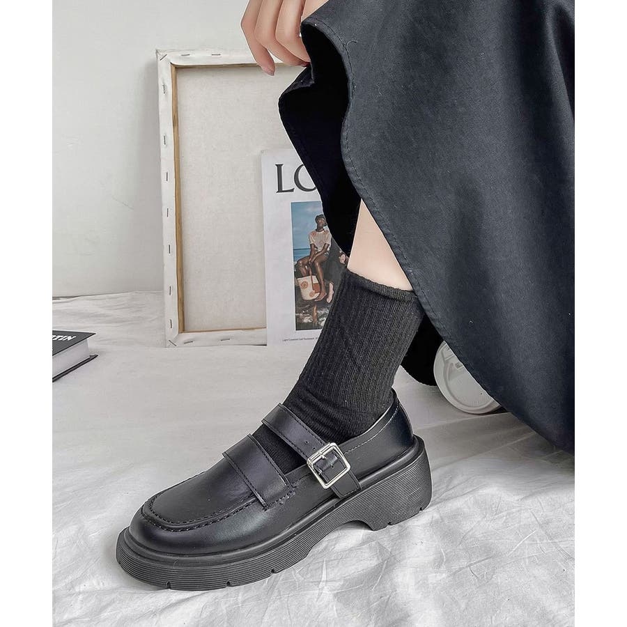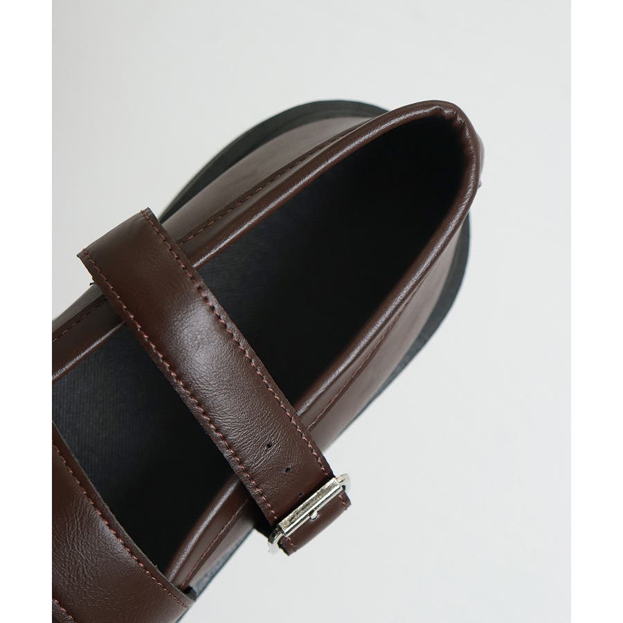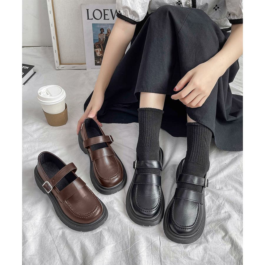 ころんとしたフォルムが可愛い、ストラップ付きローファー。