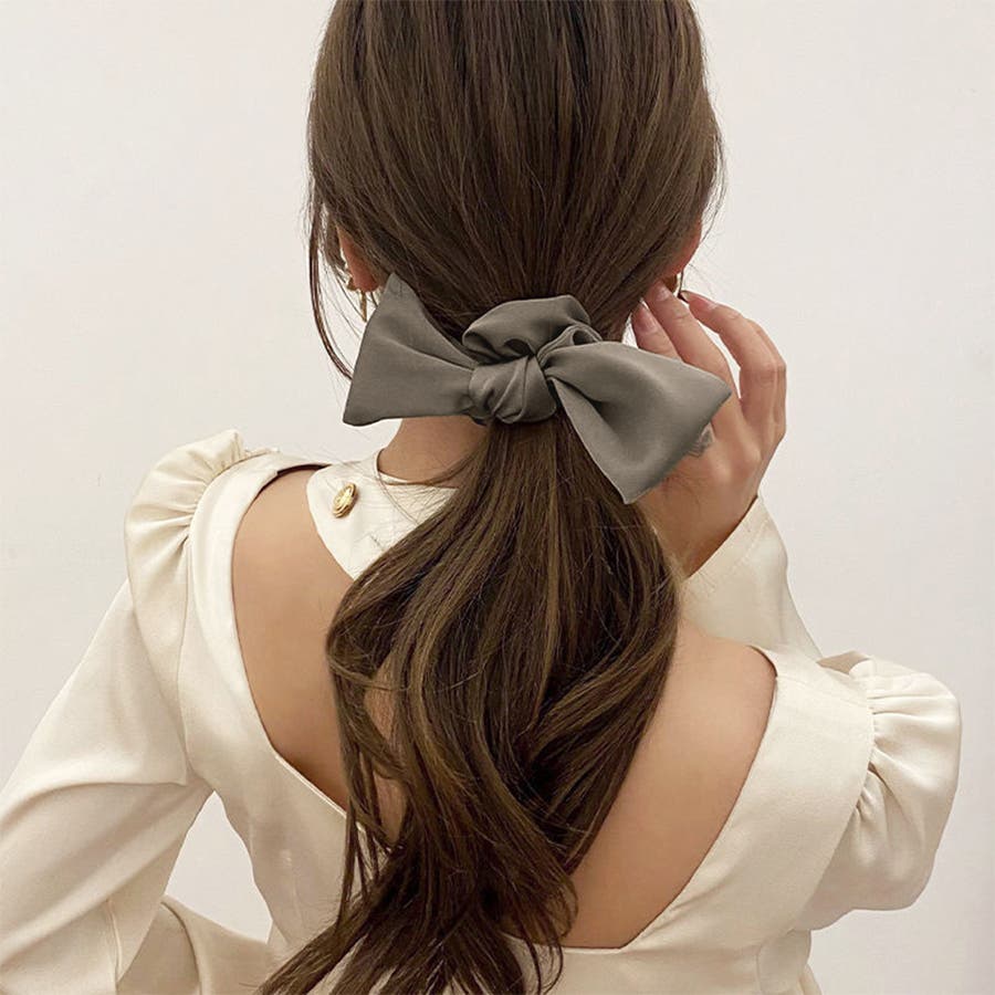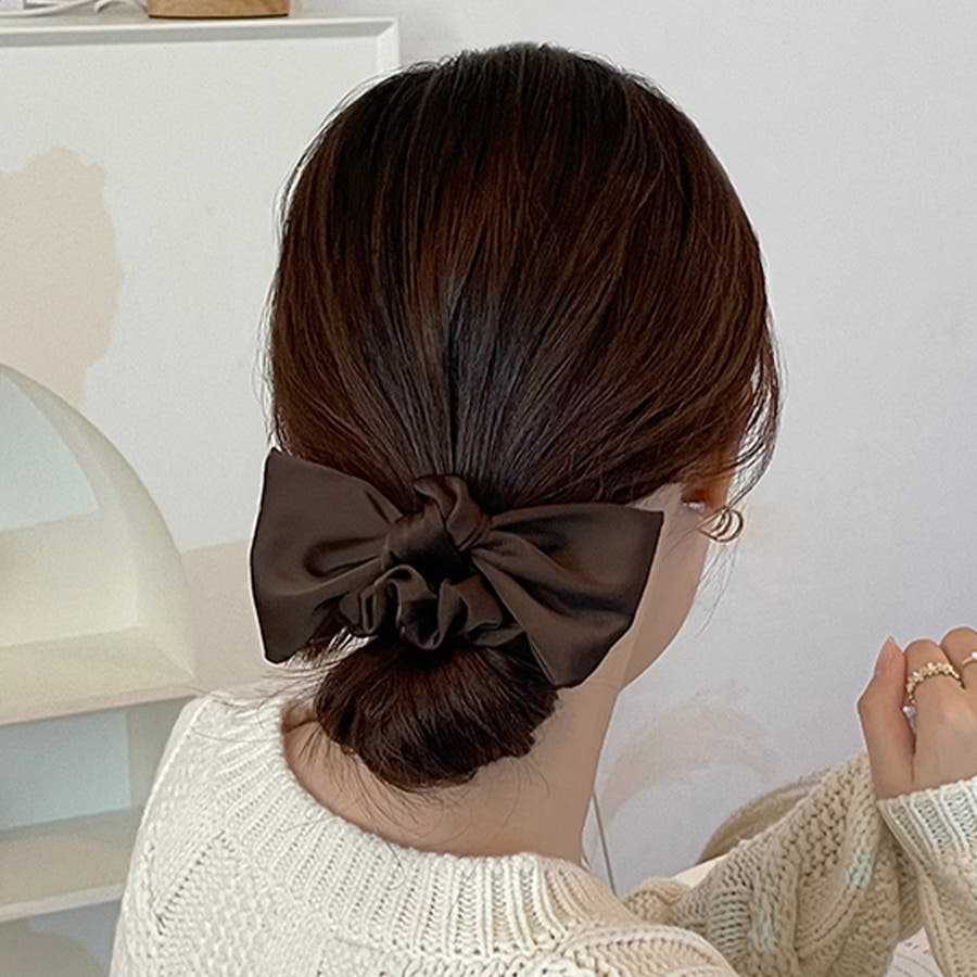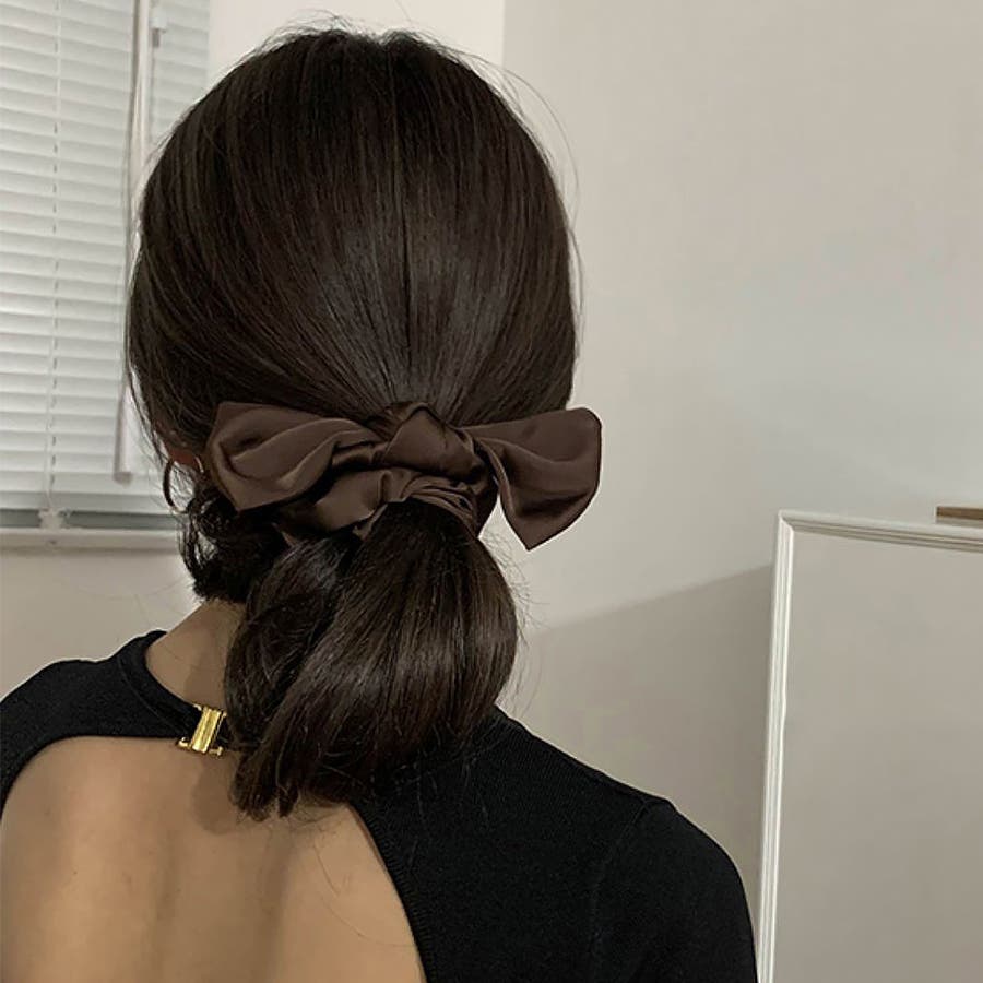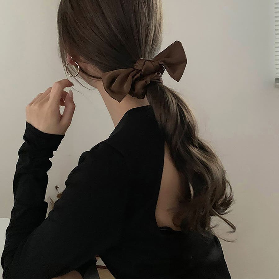 光沢感のあるサテンのような生地、上品なロングシュシュです。