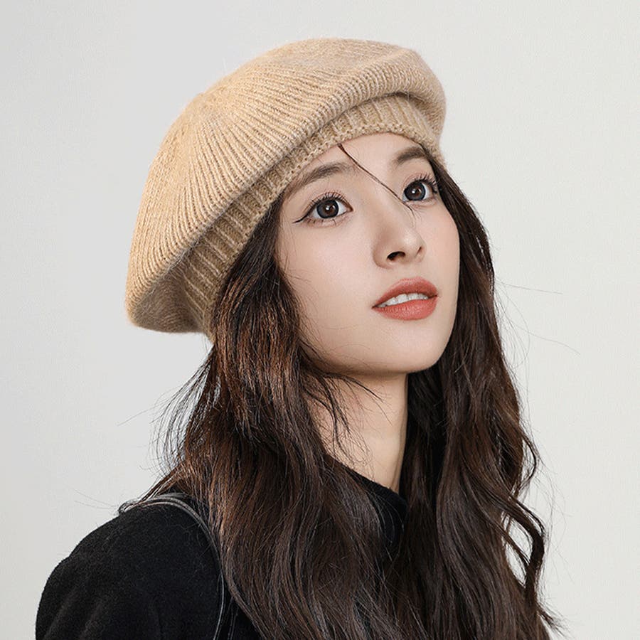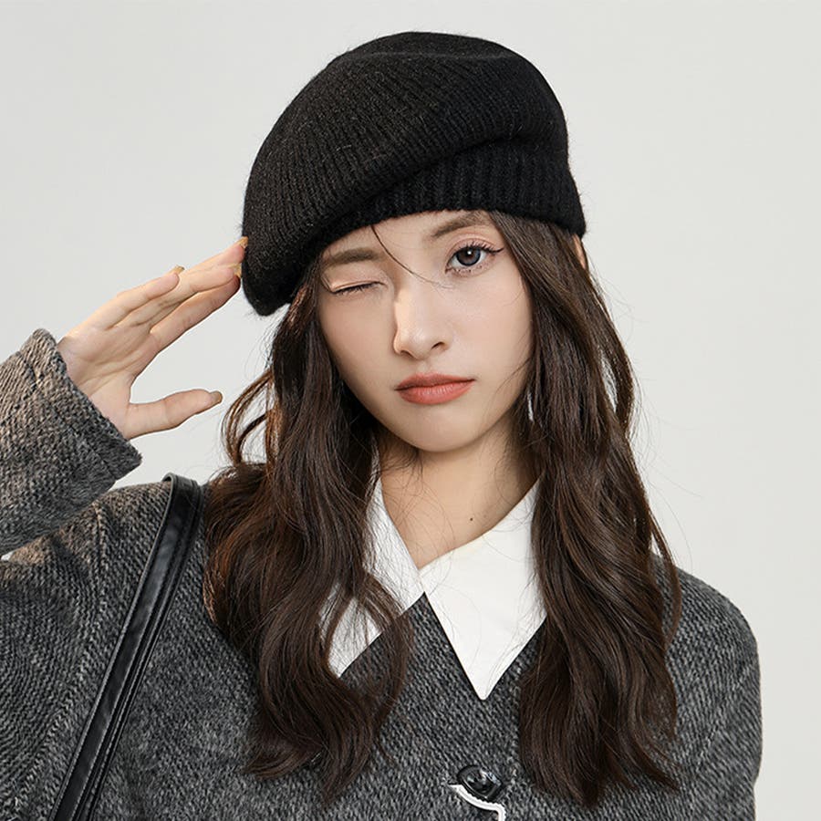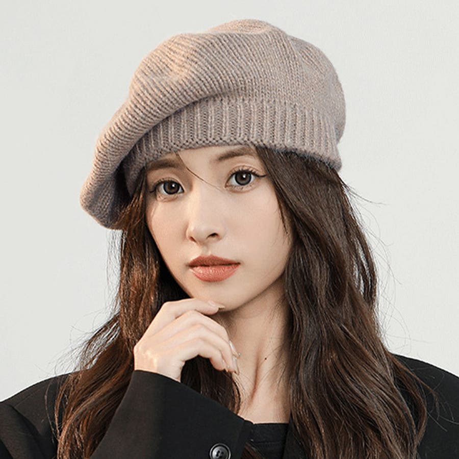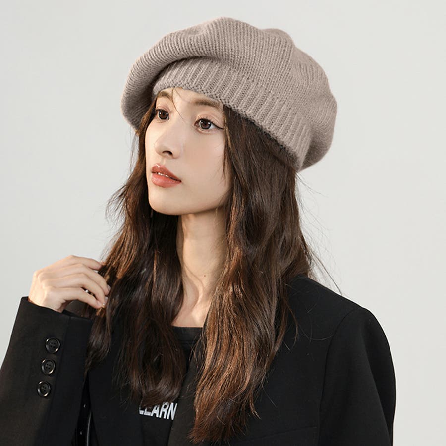 ニットベレー帽 レディース リブ編み