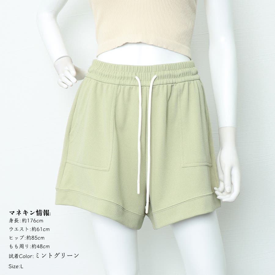 [L]着丈:約43cm 股下:約9cm ウエスト(ゴム仕様):約66-88cm ヒップ:約102-108cm もも周り:約70-76cm