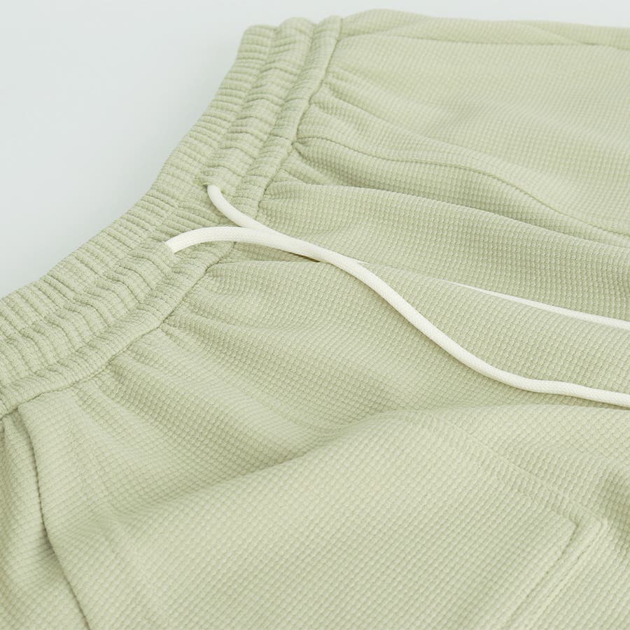 ウエストはゴム仕様で、生地の凹凸とした素材感がユニーク!