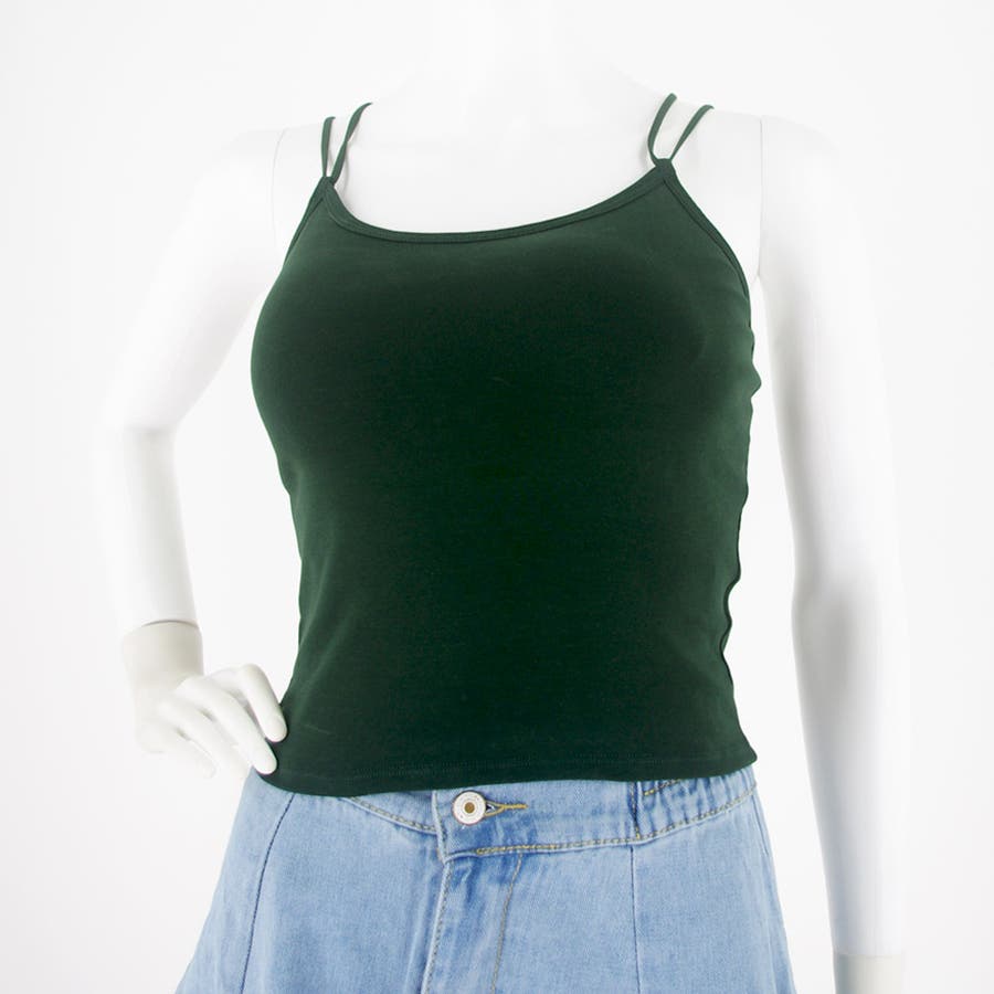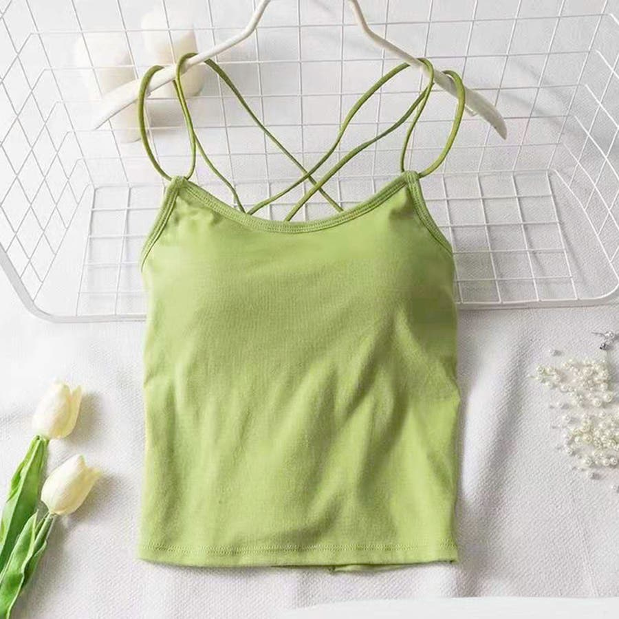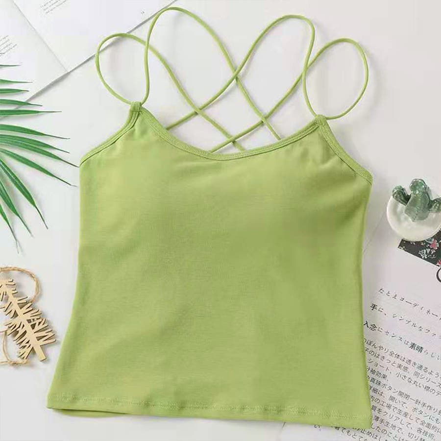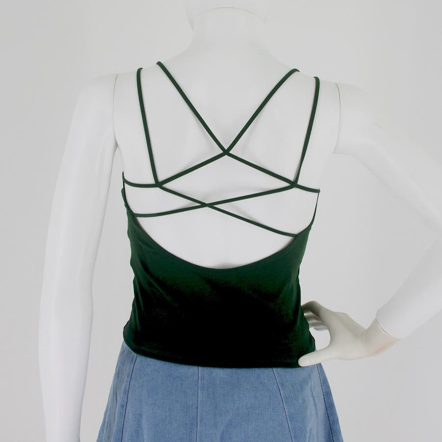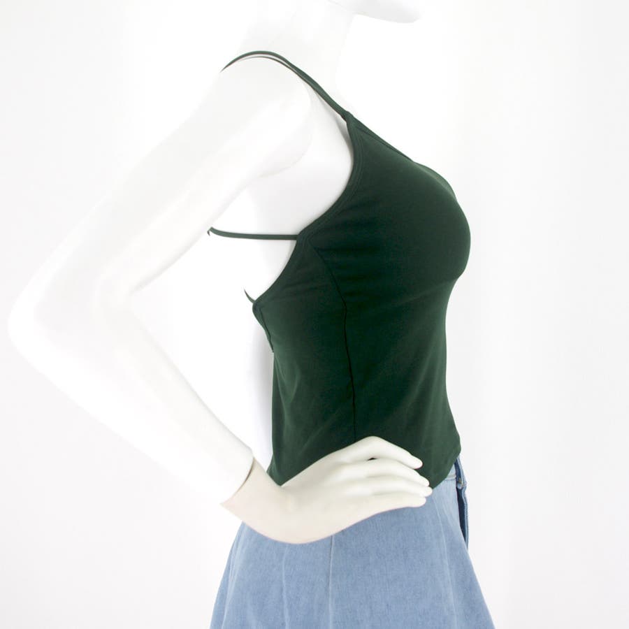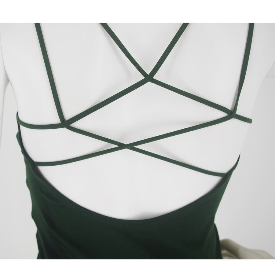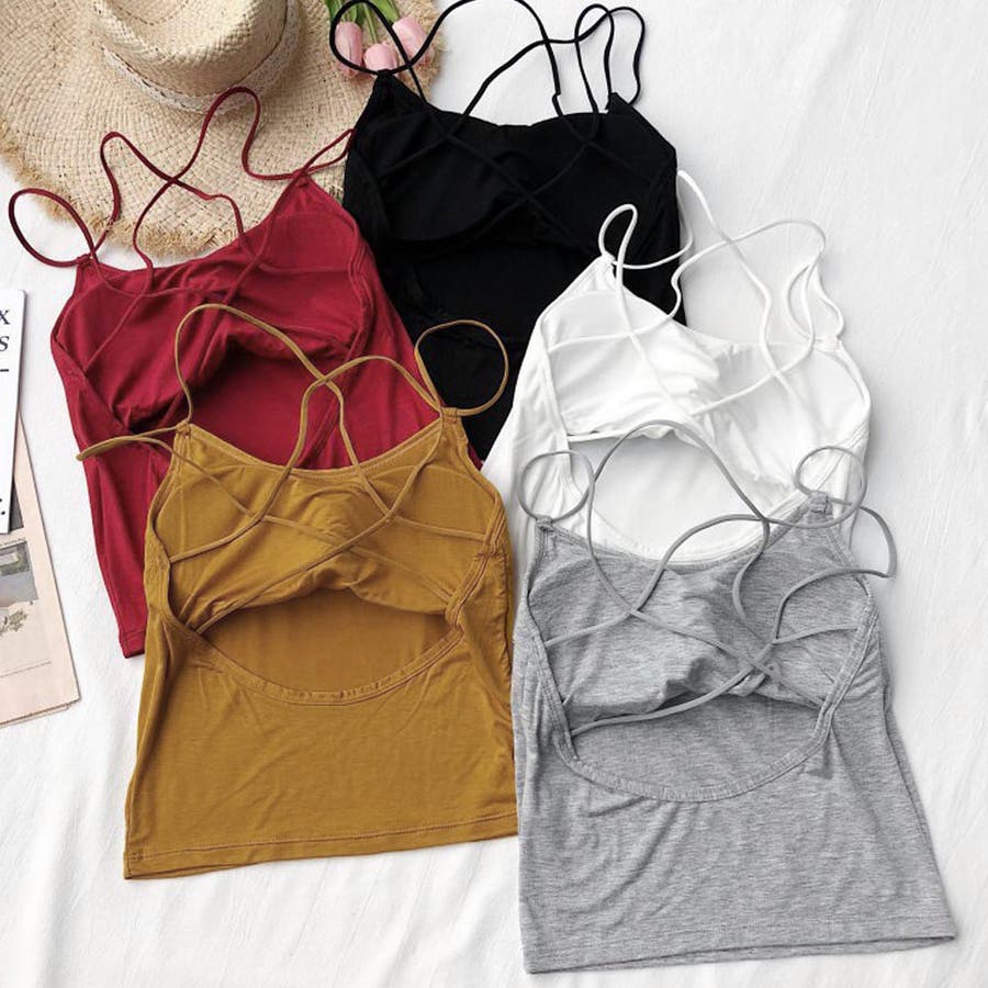 シンプルながらもおしゃれなバッククロスストラップの背中見せキャミソール