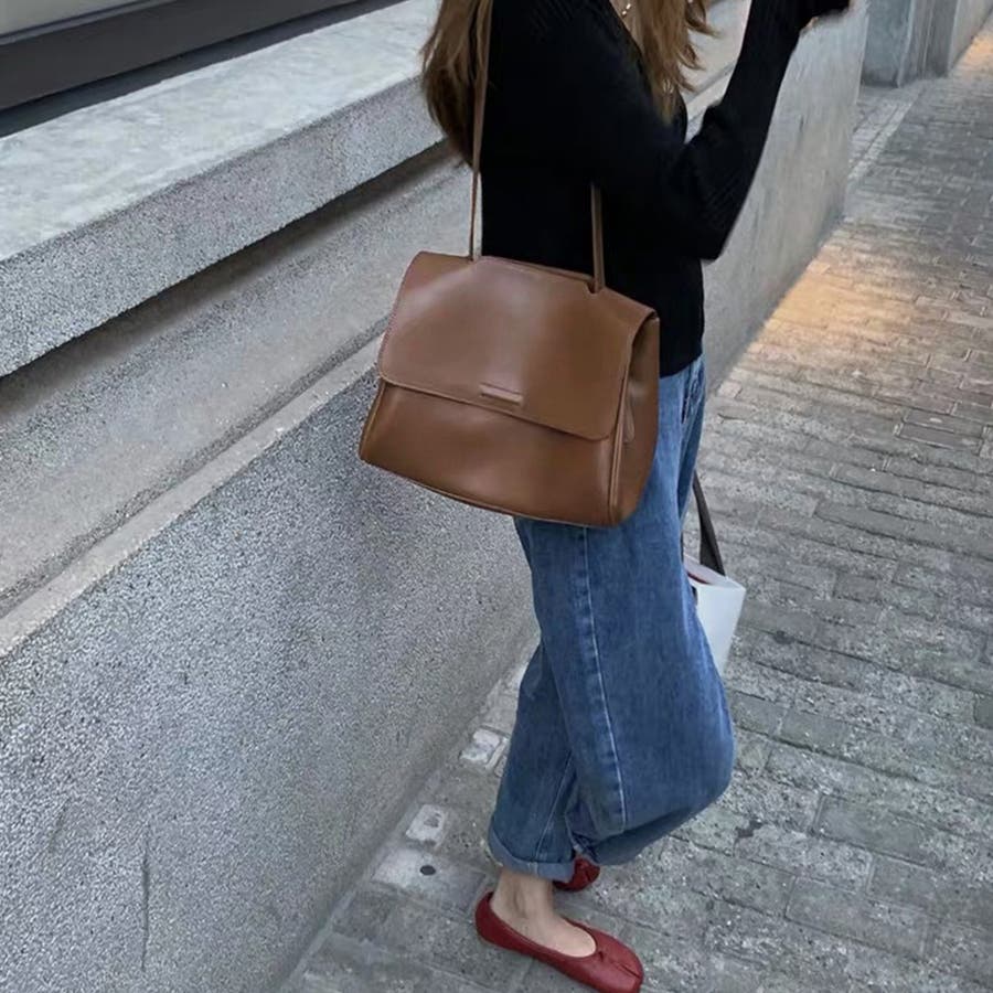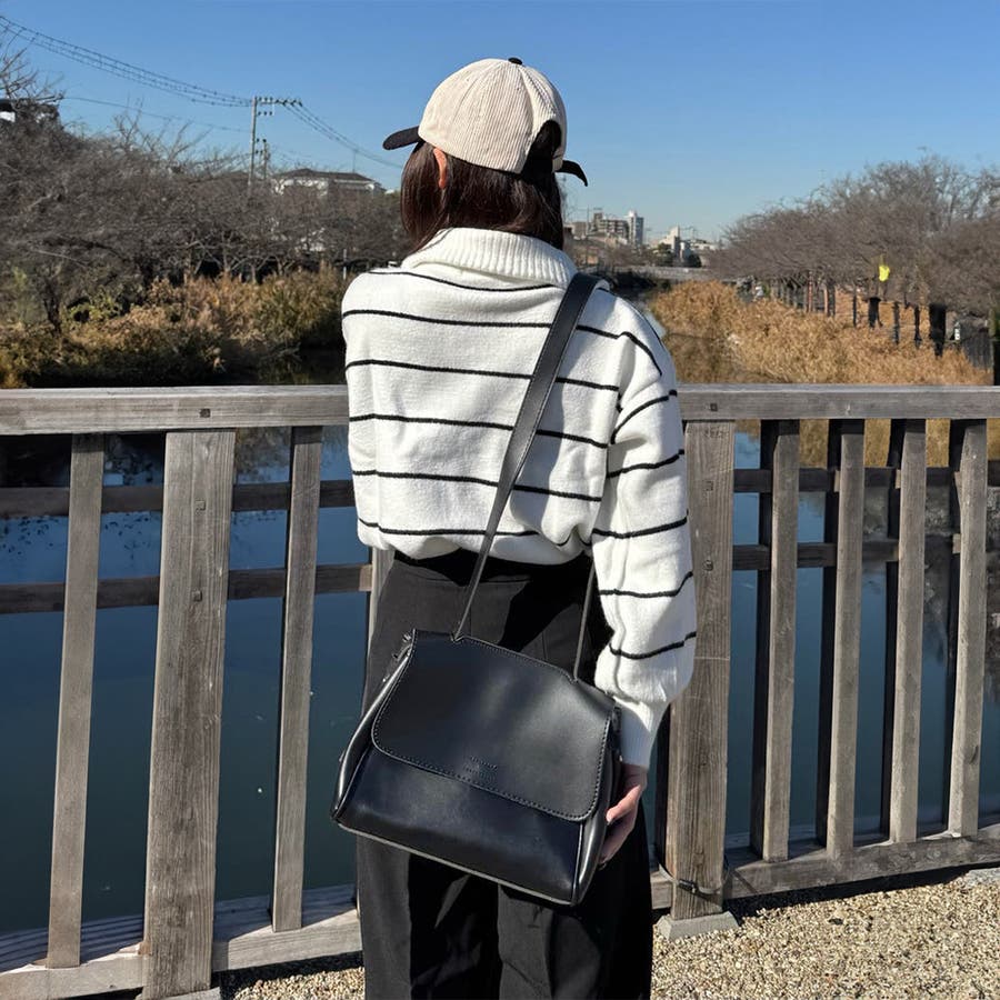 シボ感と膨らみのある上質な合皮を使用したショルダーバッグ