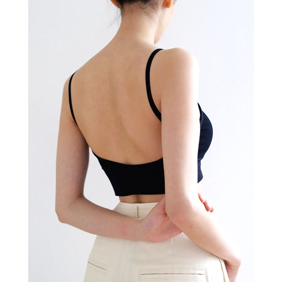 背中は大胆に開いてお肌をセクシー魅せ、そのまま着てはもちろん、バックシャントップスに響かないのでインナーとして着てもok。
