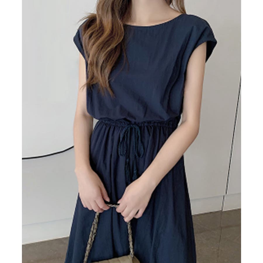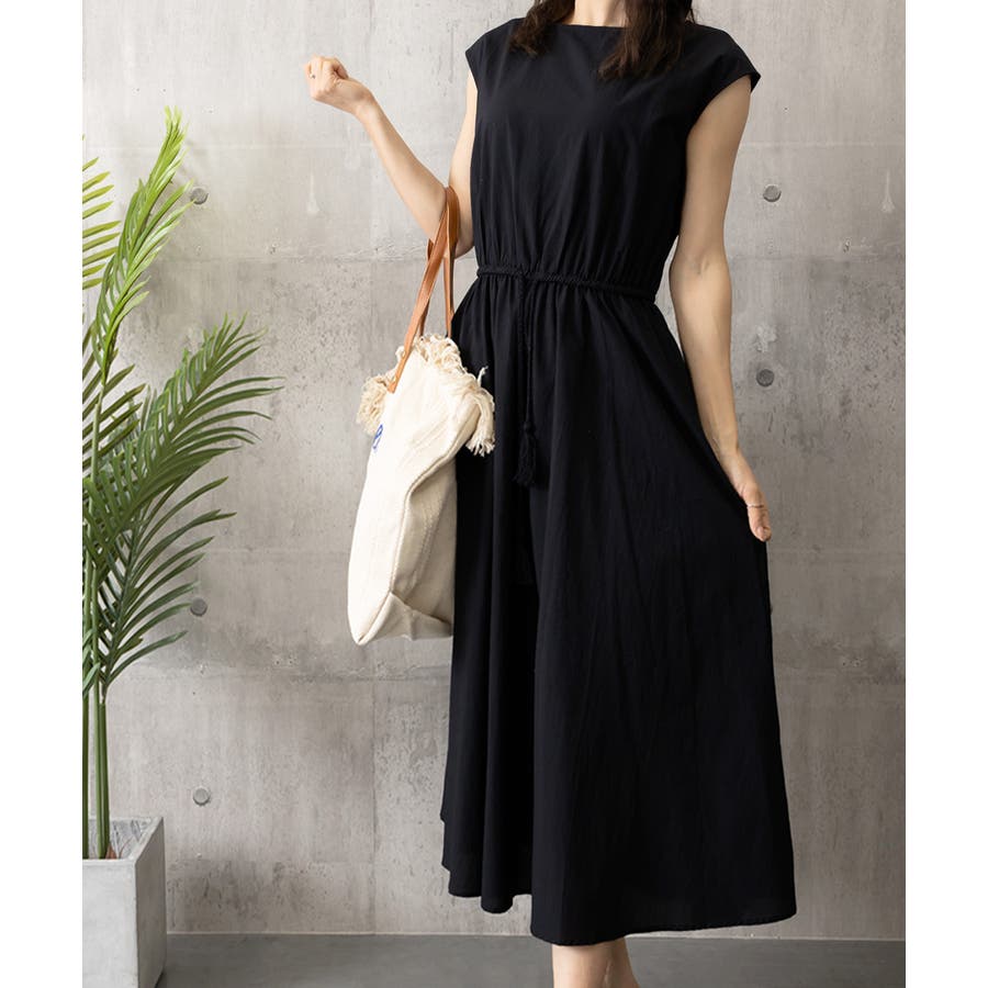 肌触りが良く、優れた通気性と柔らかさも兼ねる綿混素材で仕上げた爽やかな着心地の綿麻風ワンピース