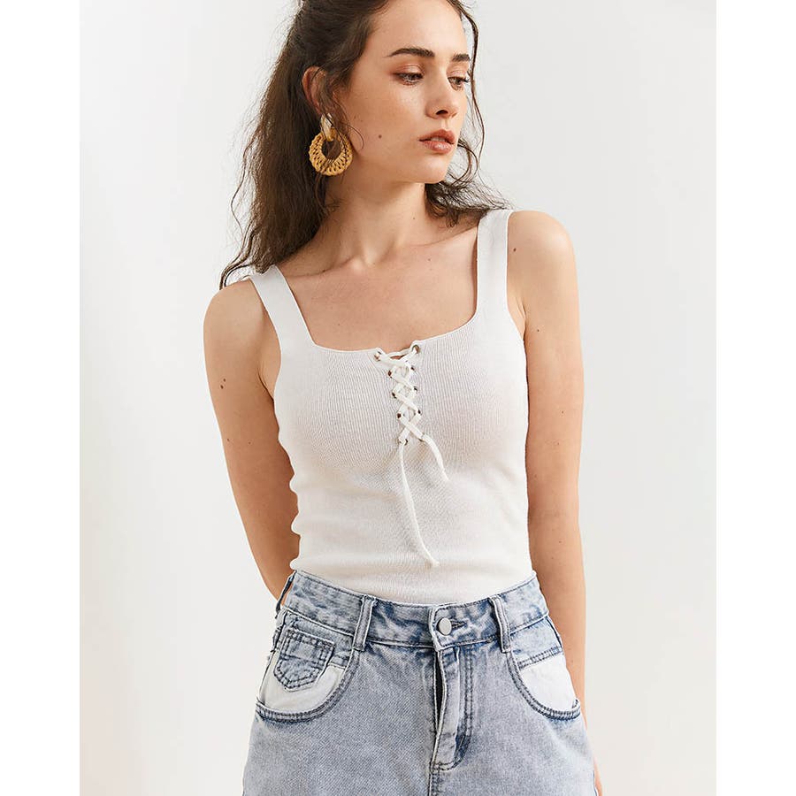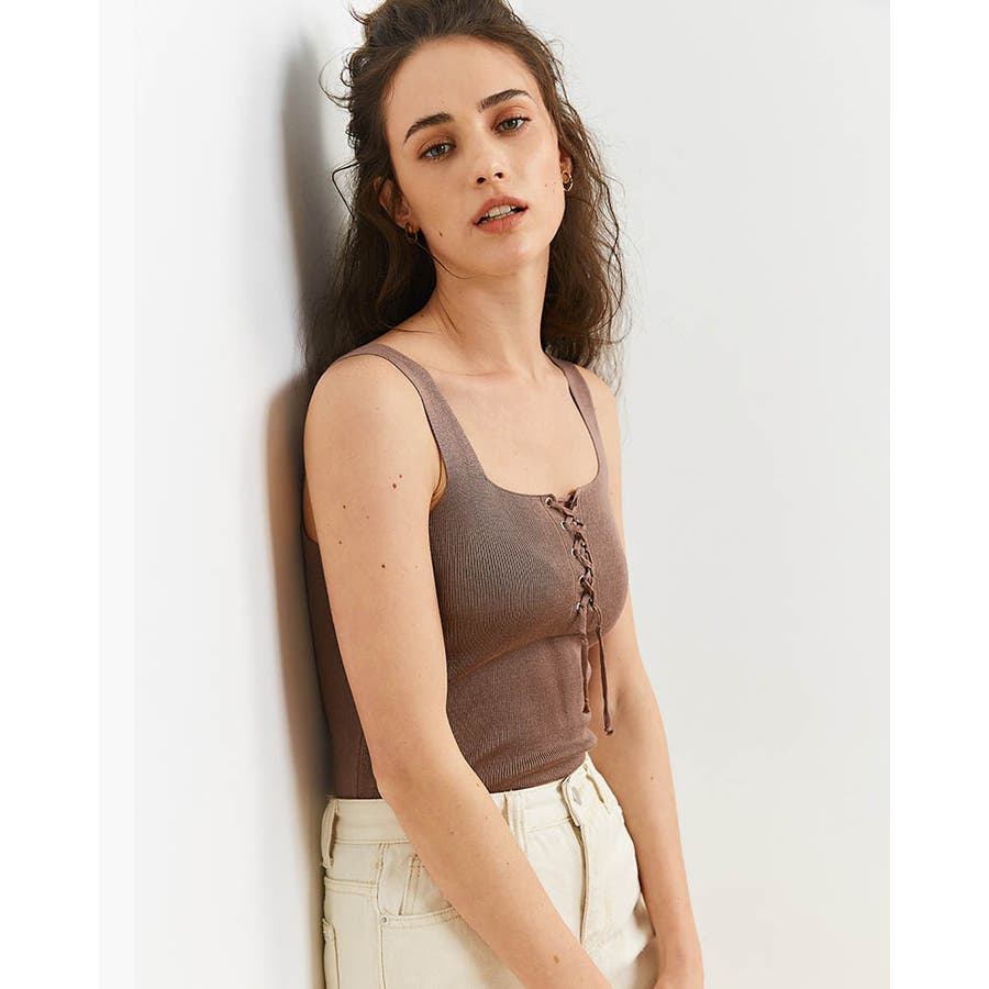 投稿日:2021.02.02編み上げもかわいい。単品では着る勇気ないので、インナーで着ようと思います☆