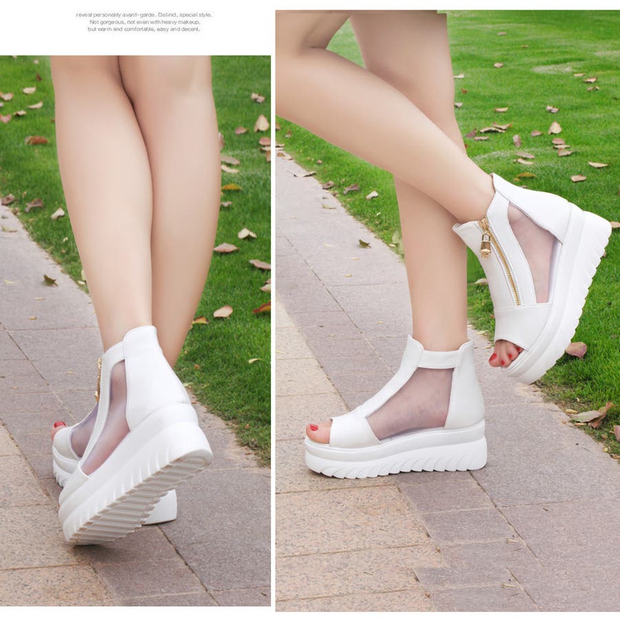 サマーブーツ 黒白 蒸れないサンダル夏 疲れにくい 厚底靴