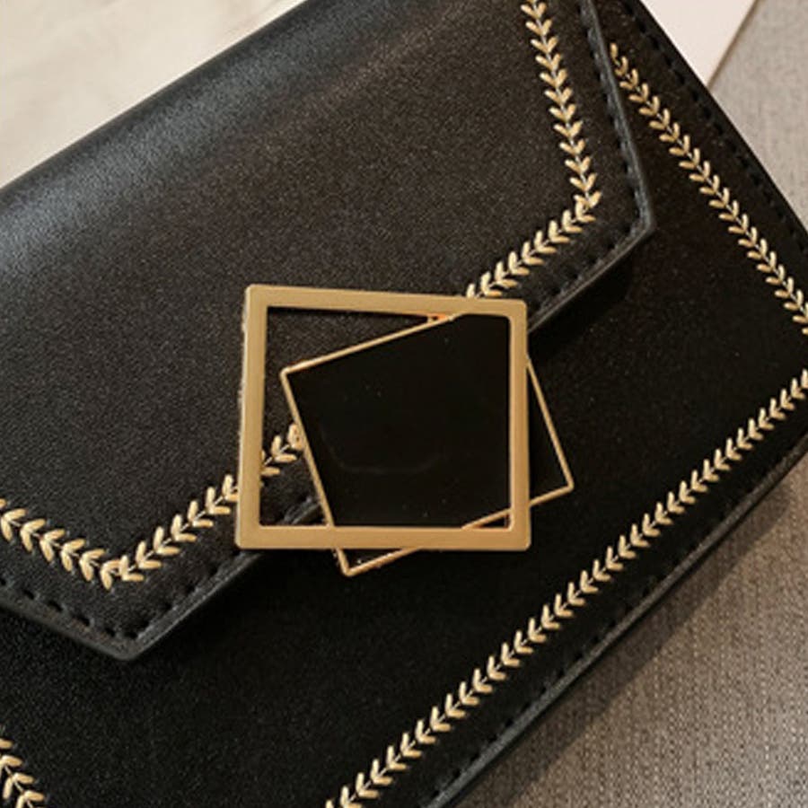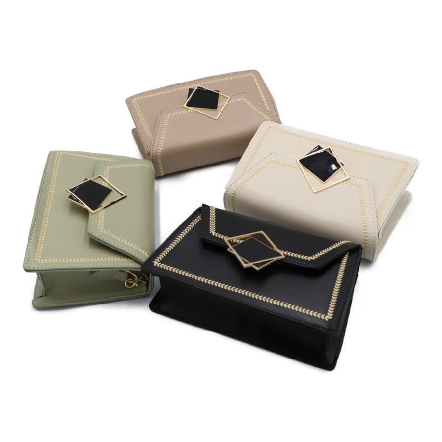 二重に重なるスクエア型のエンブレムがスタイリッシュなミニショルダーバッグ