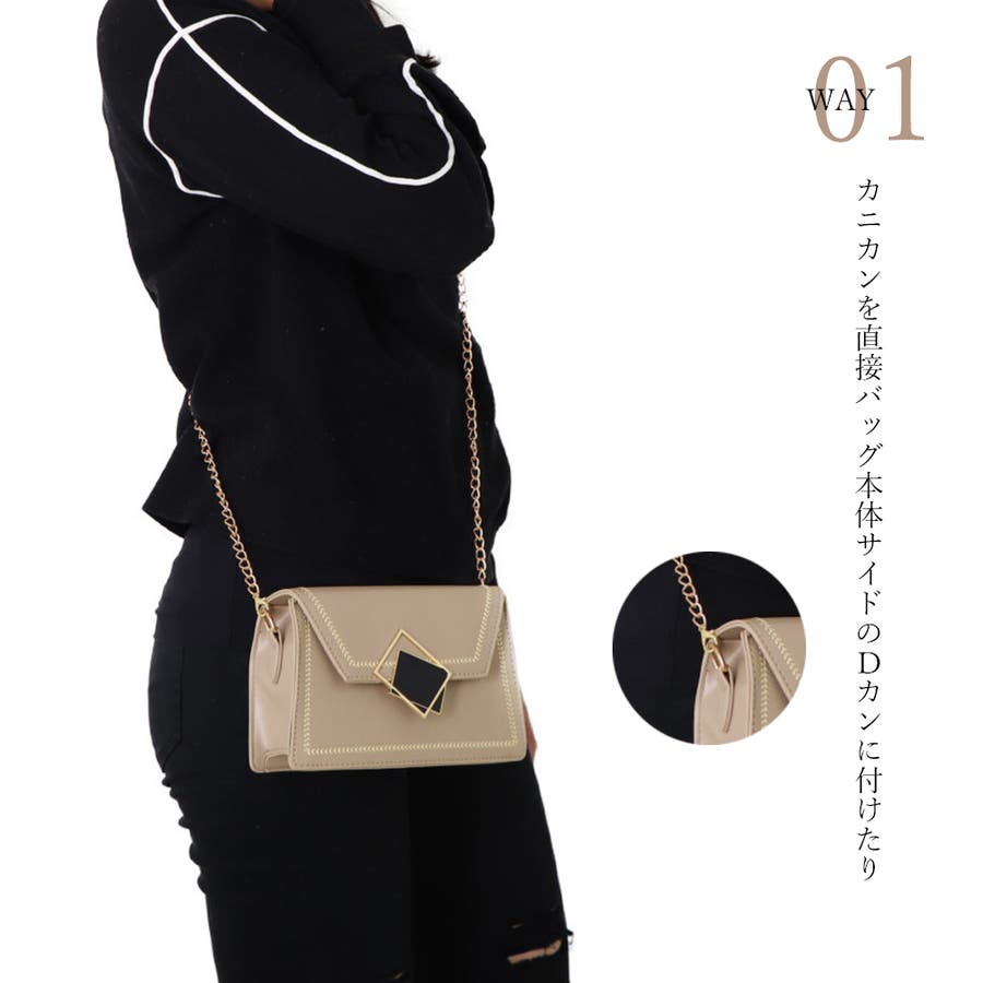 ゴールドチェーンが高級感を演出させ、プチプラなのに高見え、さらに長さはお好みによって調整可能なのでとても便利