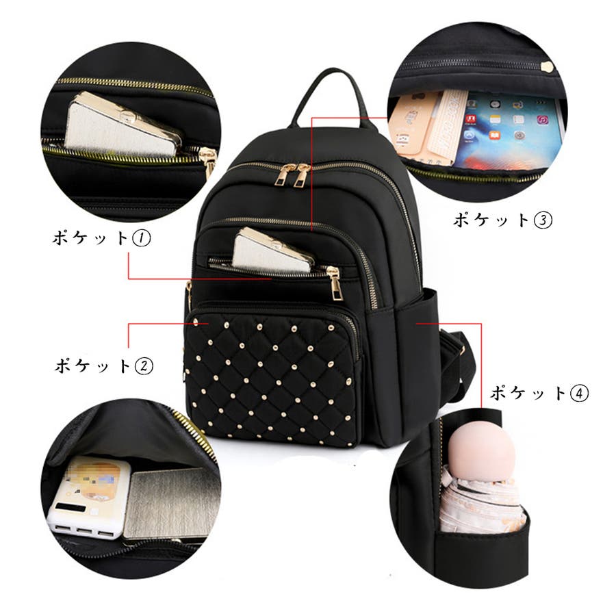 黒リュック収納豊富 背負いバッグ 女性 デイパック人気旅行