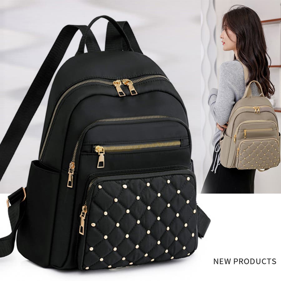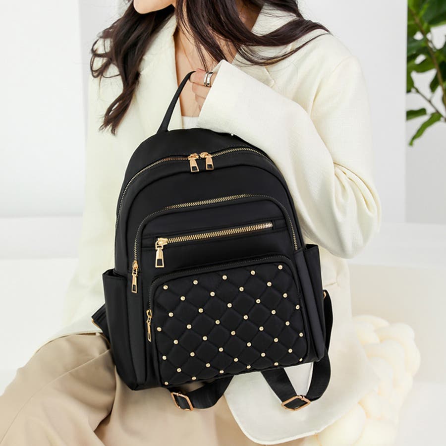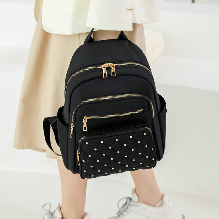 レディース おしゃれ キルティングリュック サイドポケット カジュアル 人気ナイロンかばん 大人可愛い 通学通勤バッグ黒