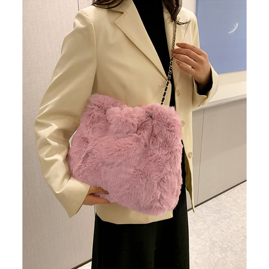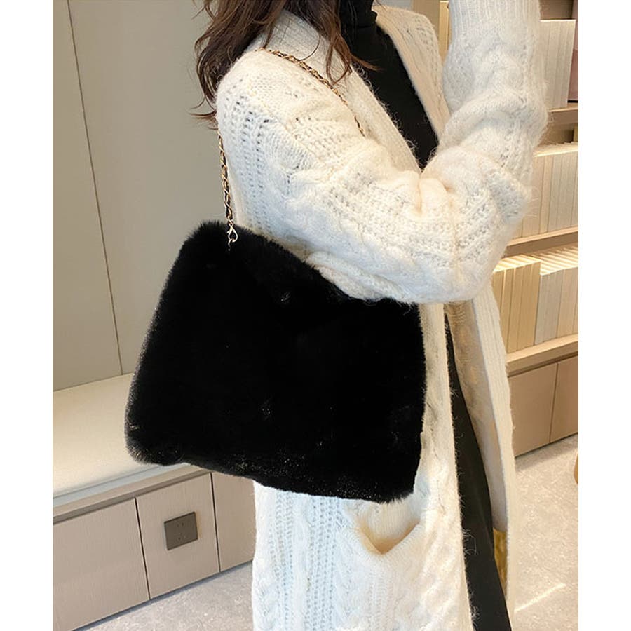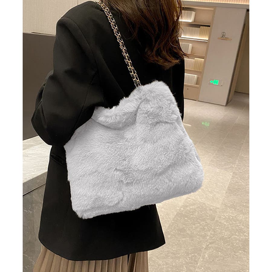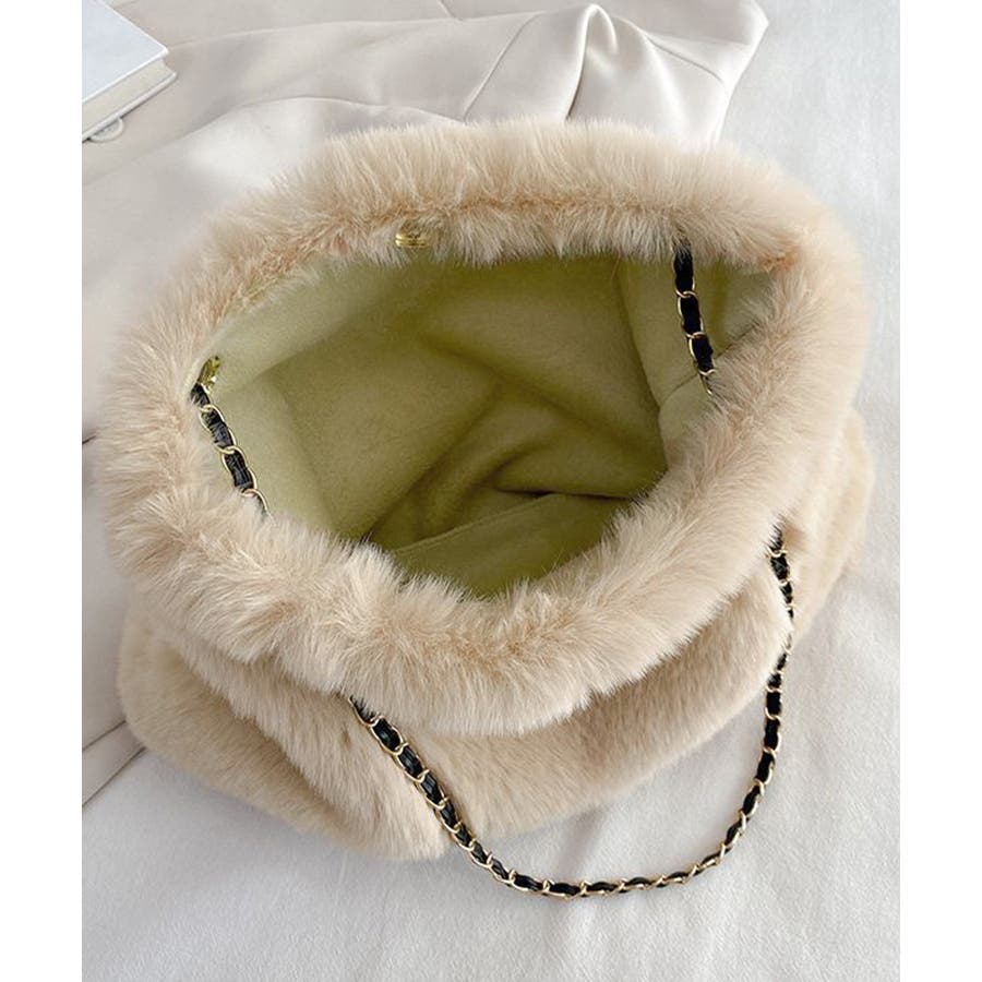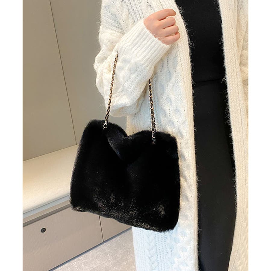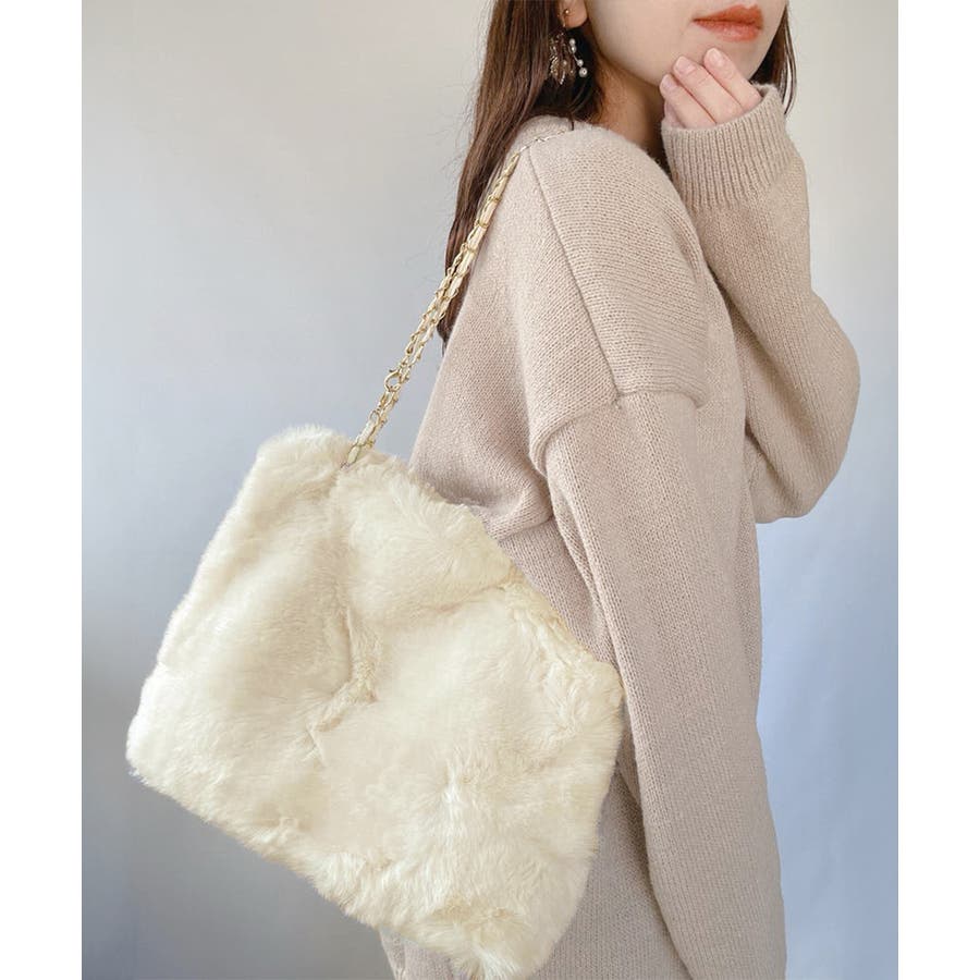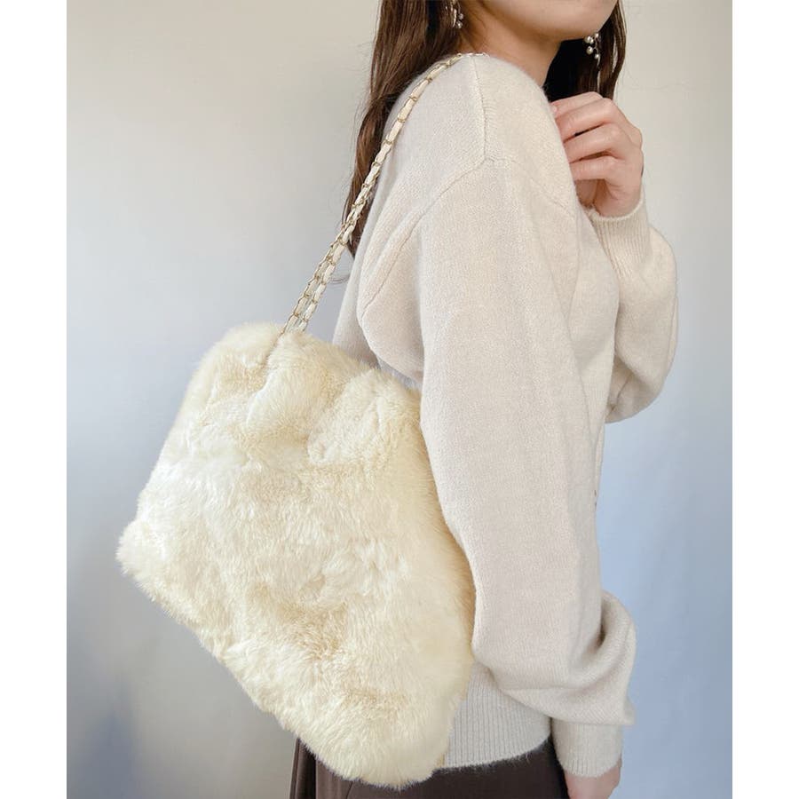 ふんわりとしたフェイクファーで仕上げたもこもこ手触りのチェーンショルダーバッグ