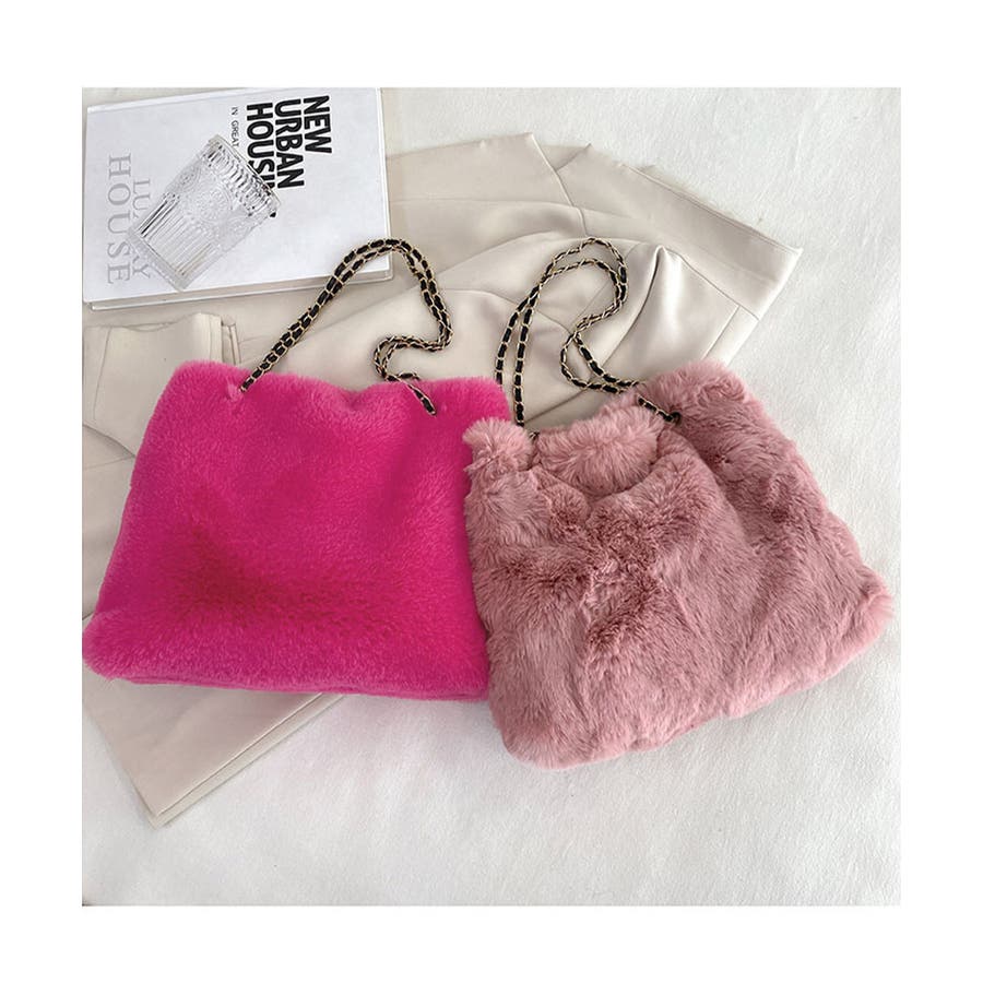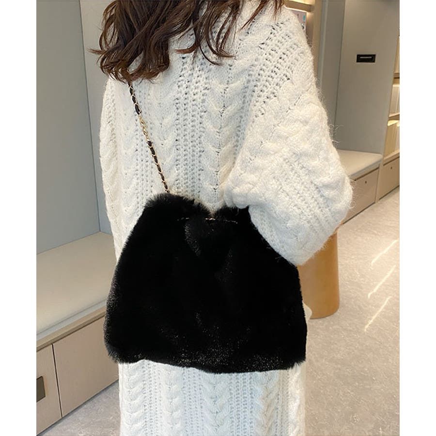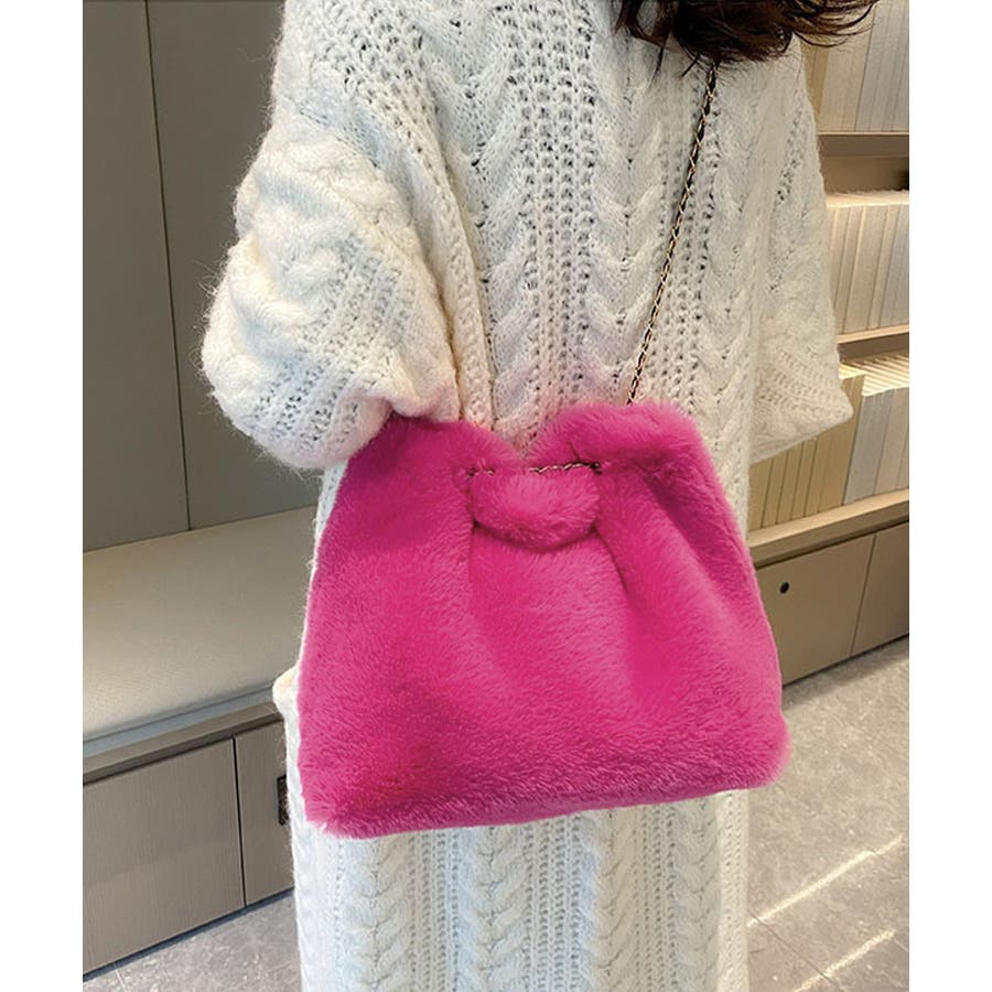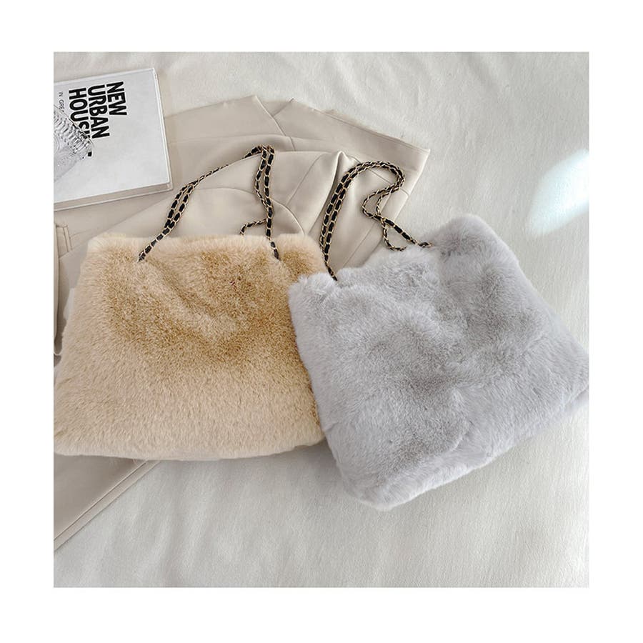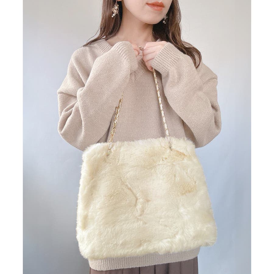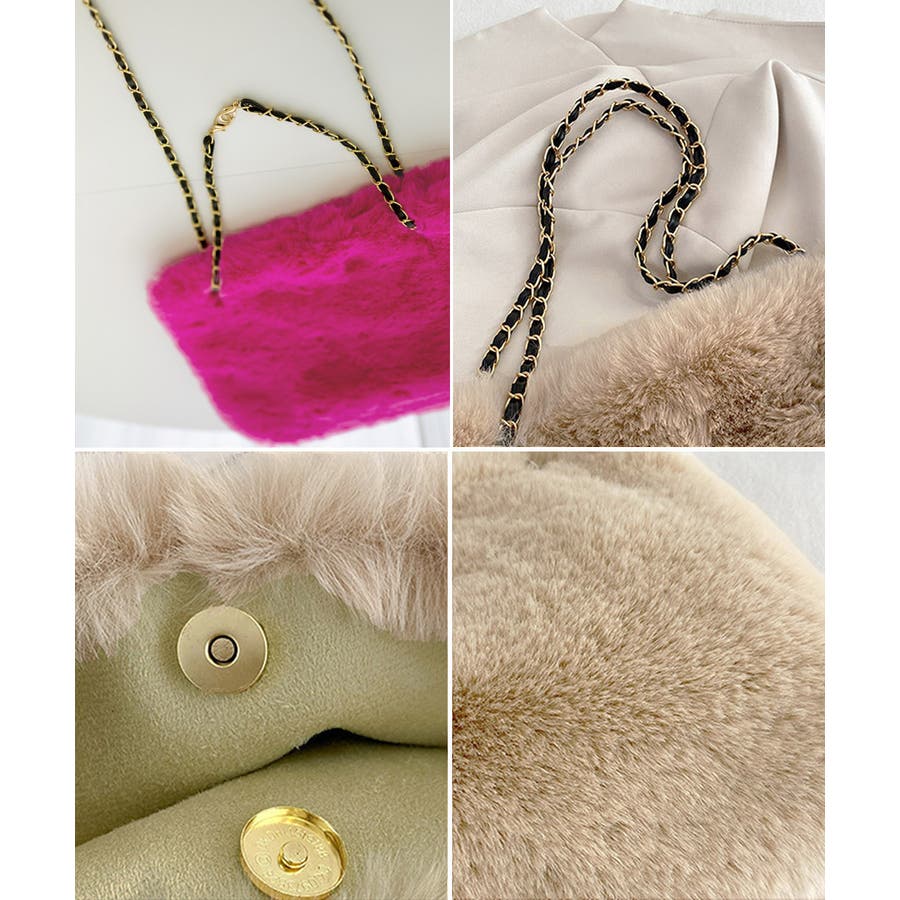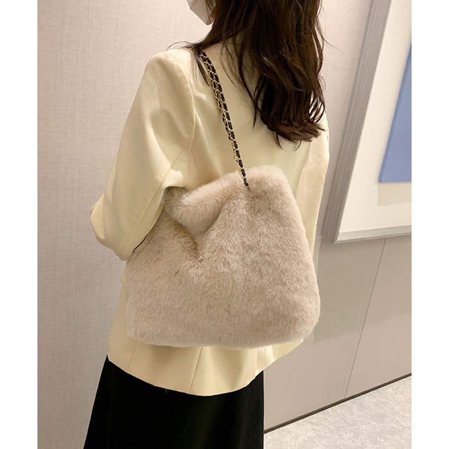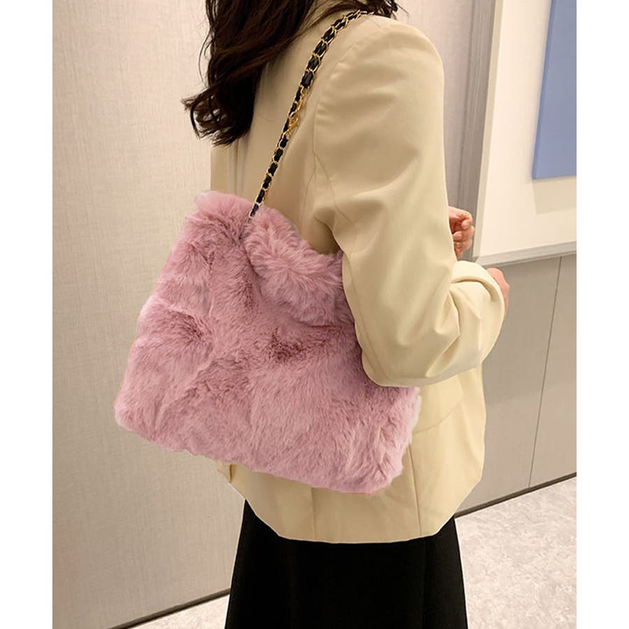 ふんわりとしたフェイクファーで仕上げたもこもこ手触りのチェーンショルダーバッグ