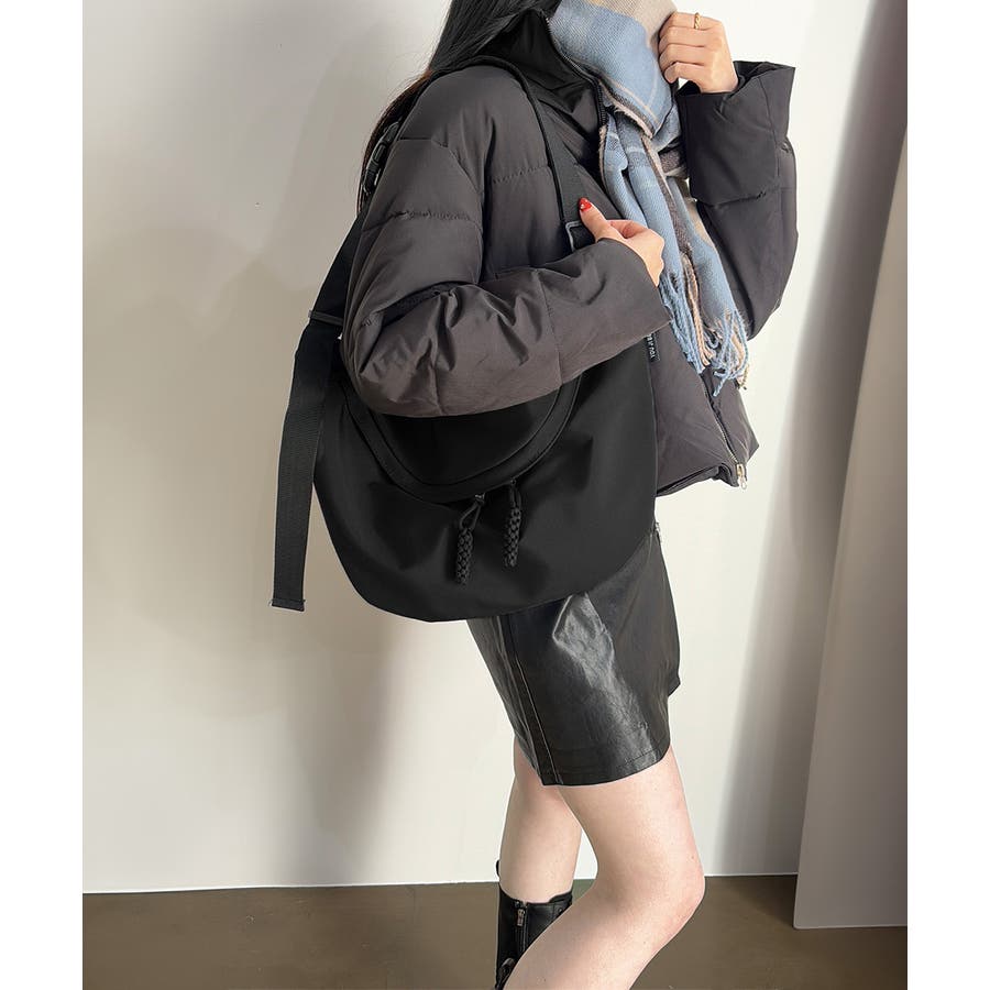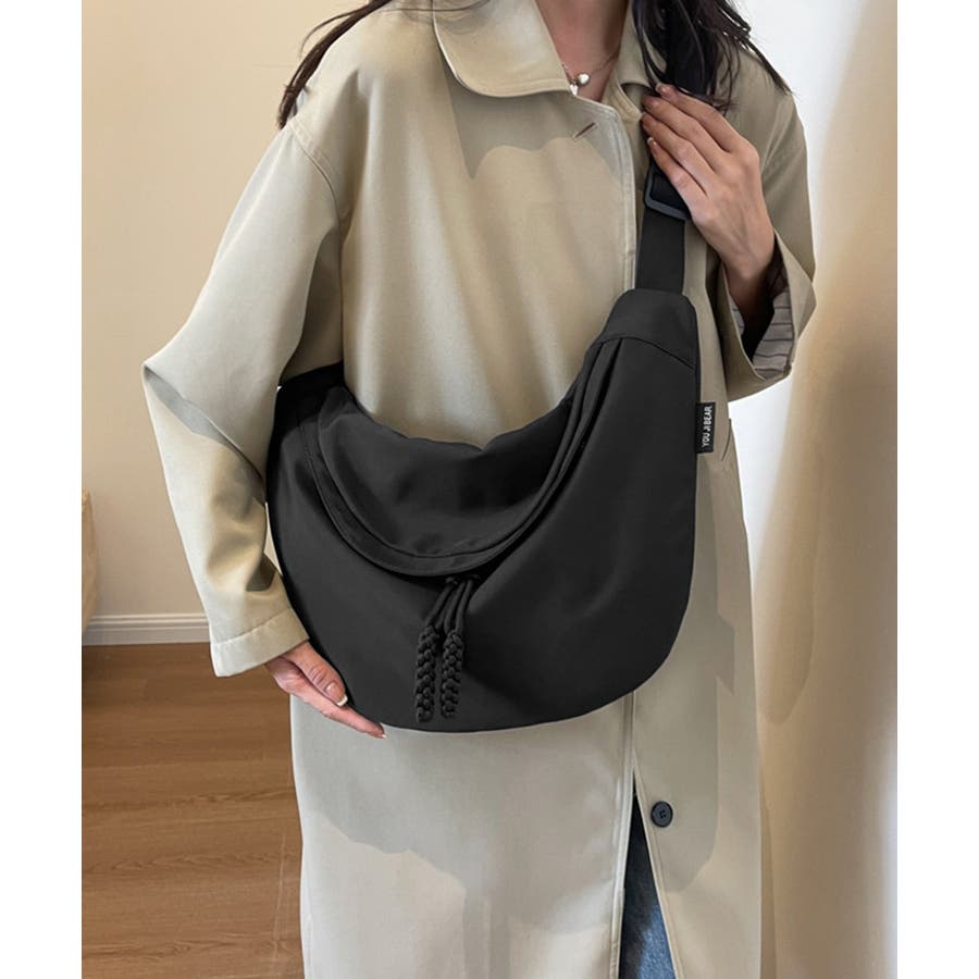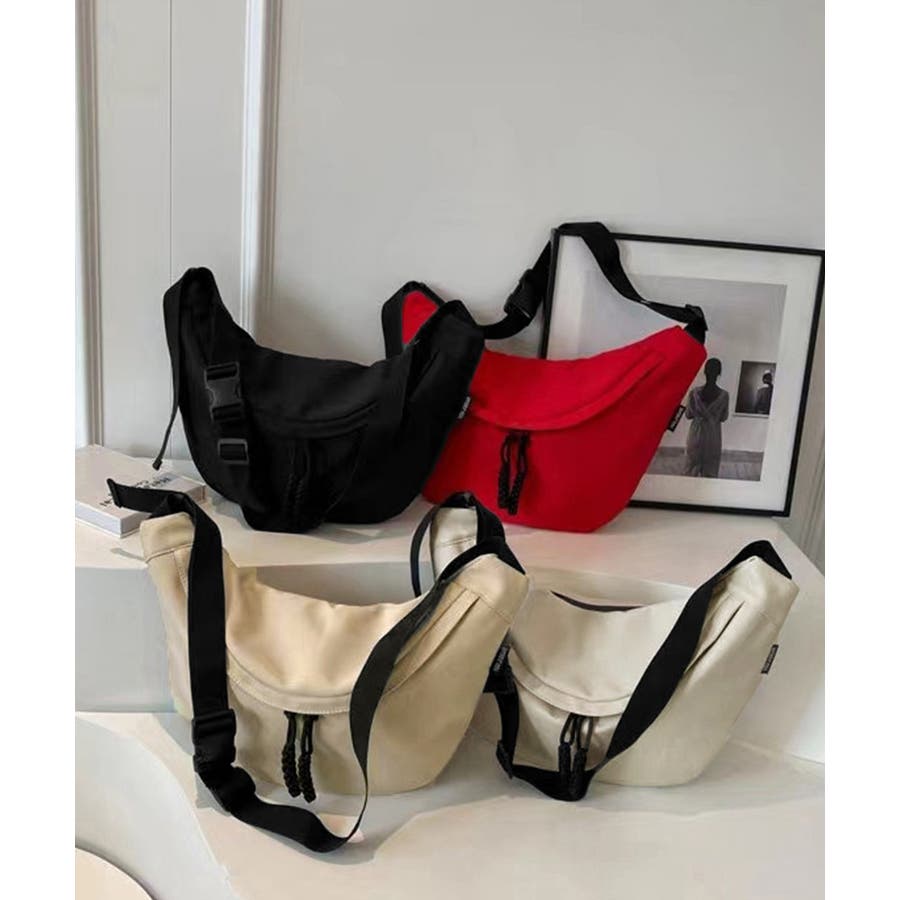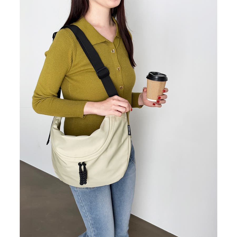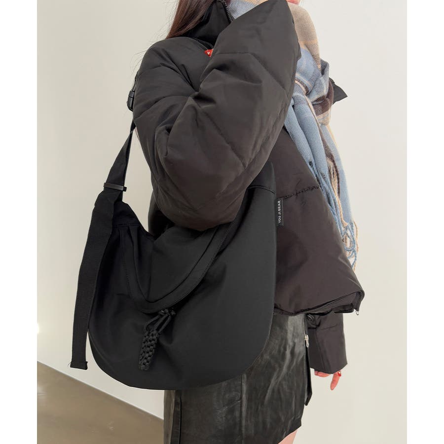 体にフィットする形の三日月シルエットの韓国っぽショルダーバッグ