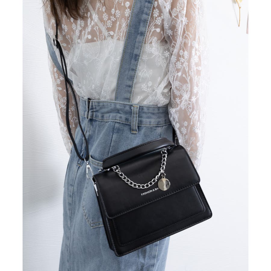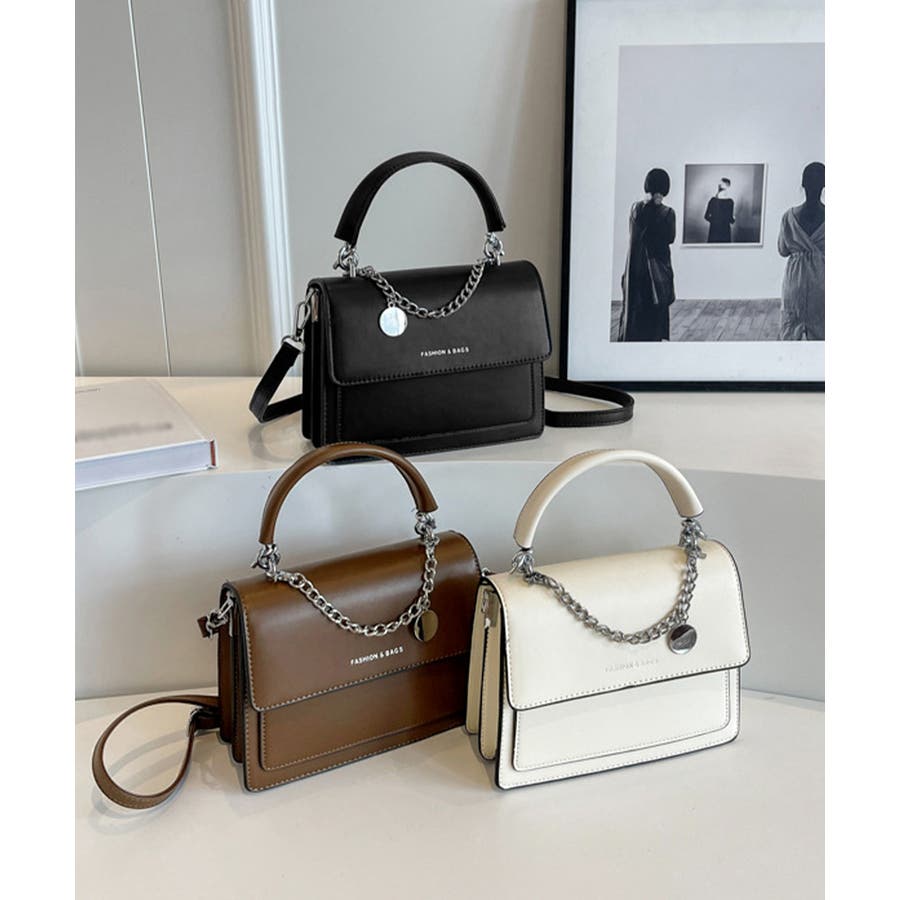 ミニショルダー 大人可愛い ハンドバッグ 小さめ手提げバッグ 2WAY おしゃれ PUレザーかばん チェーンチャーム付き