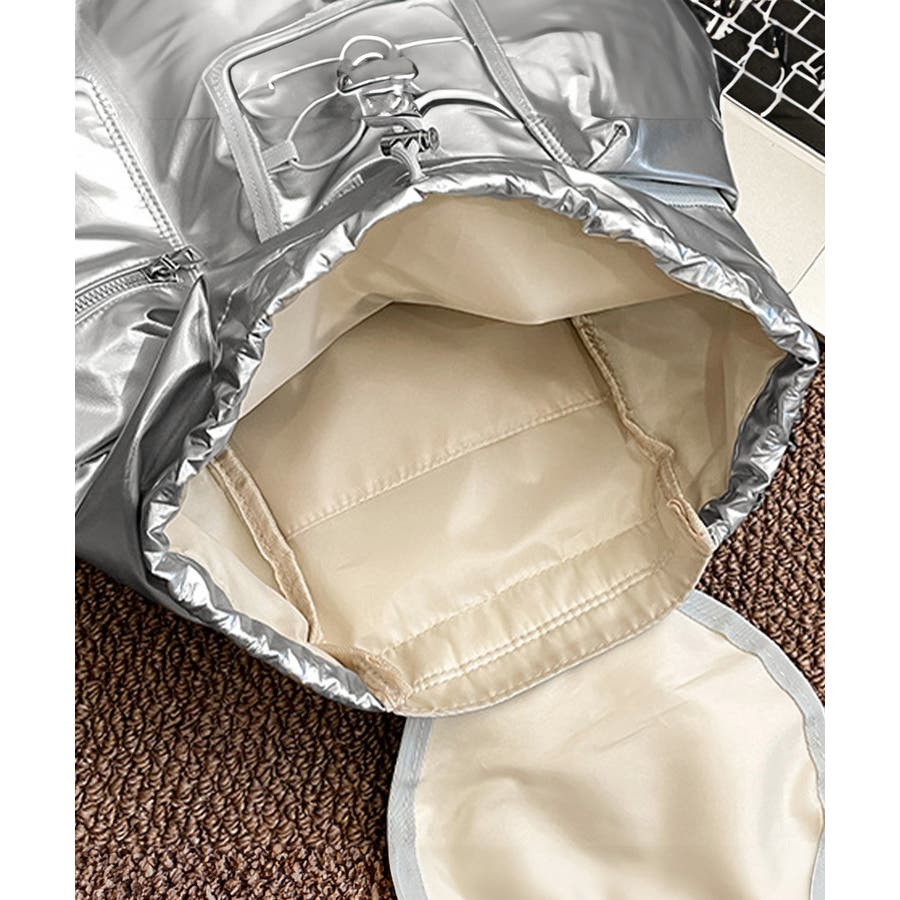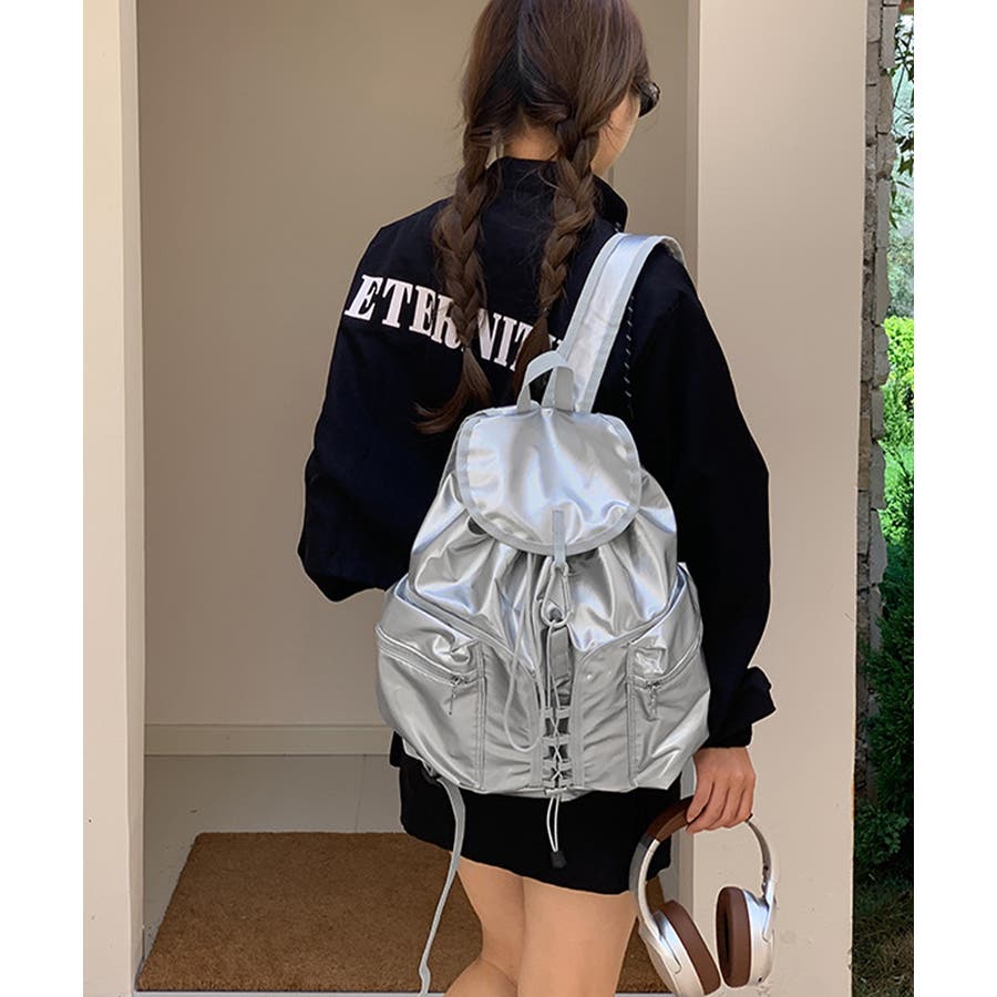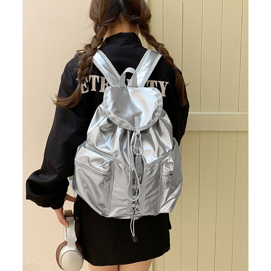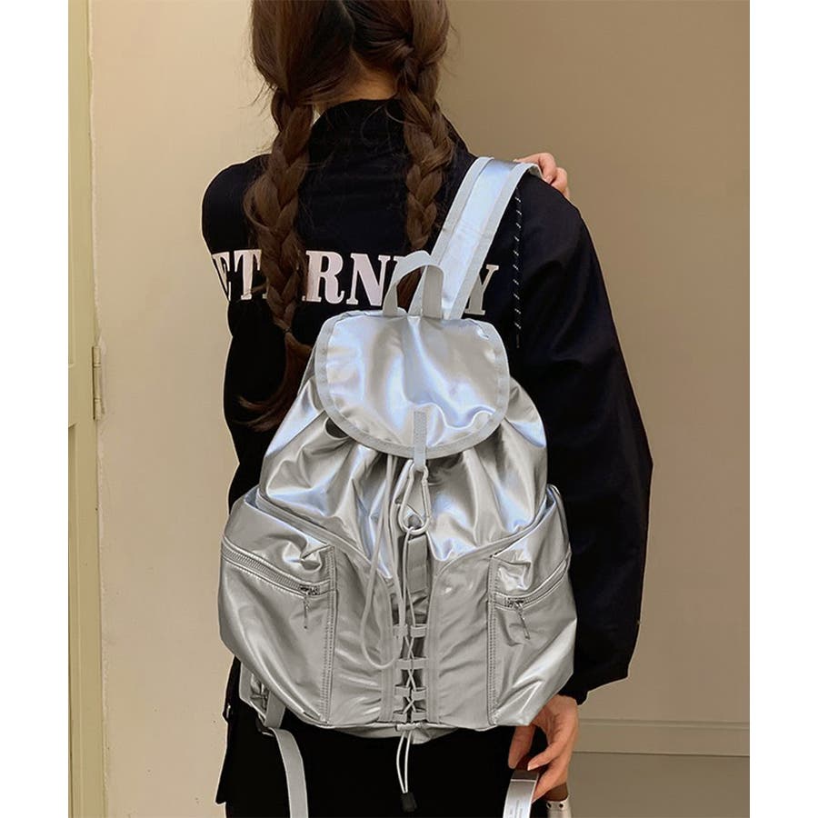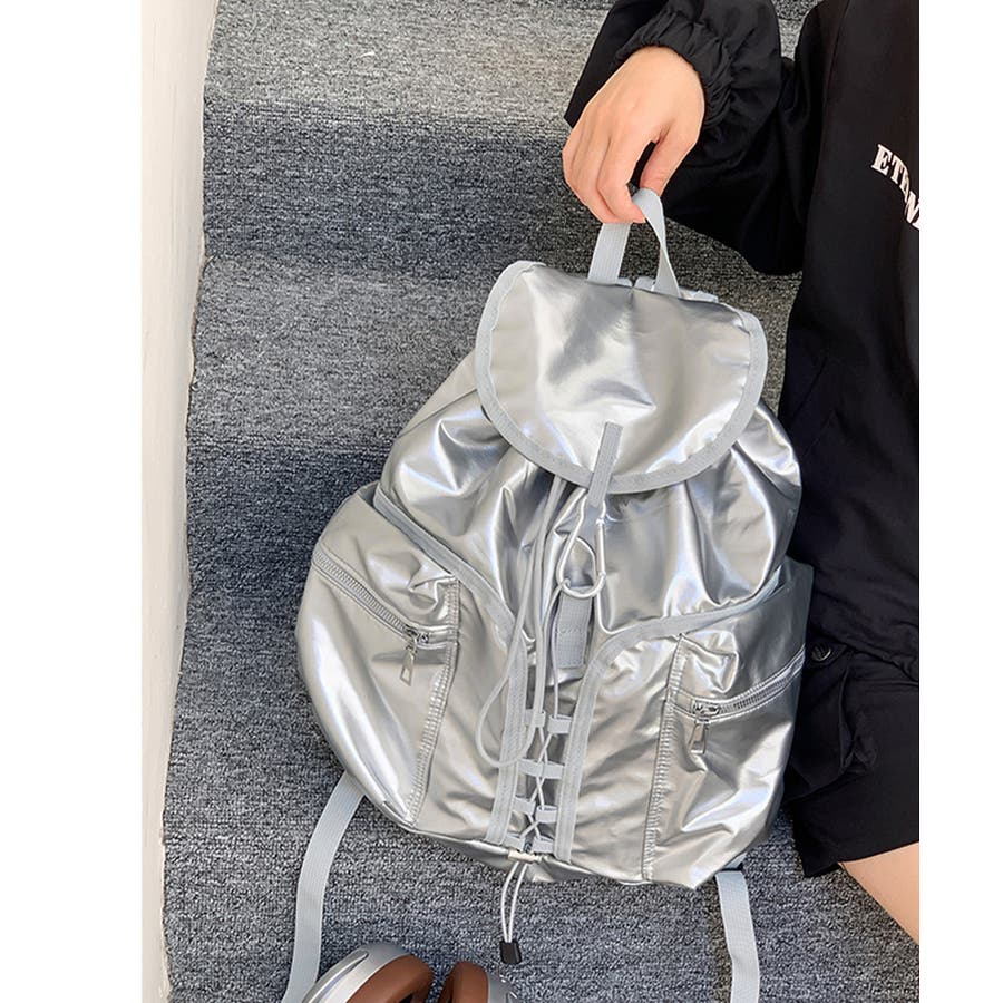 コーデのスパイスに最適な、艶やかなメタリックカラーがアクセントになったリュックサック