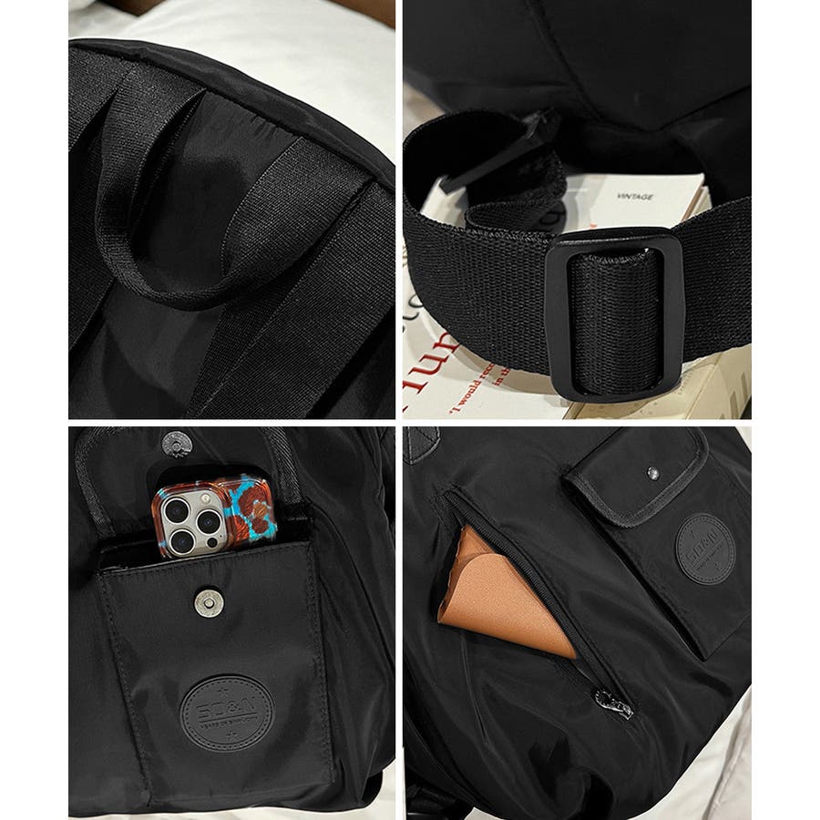 軽量ながら荷物がしっかり入る広い収納スペースに加え、内ポケットと外ポケットを備えた整理しやすいデザインが魅力。