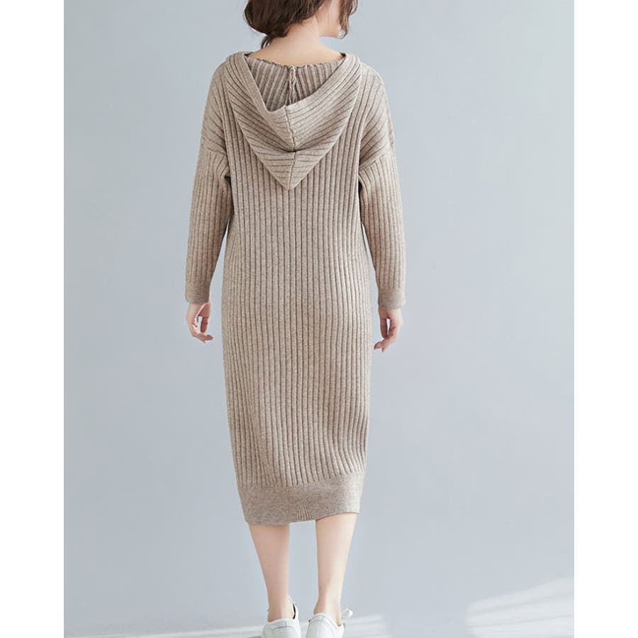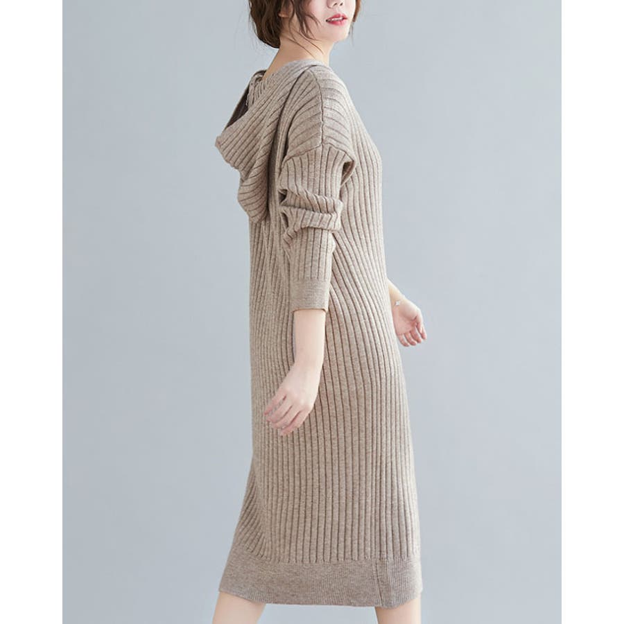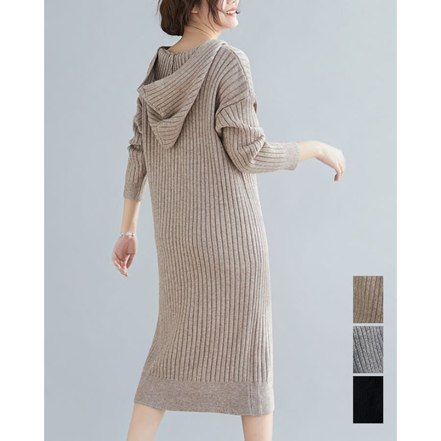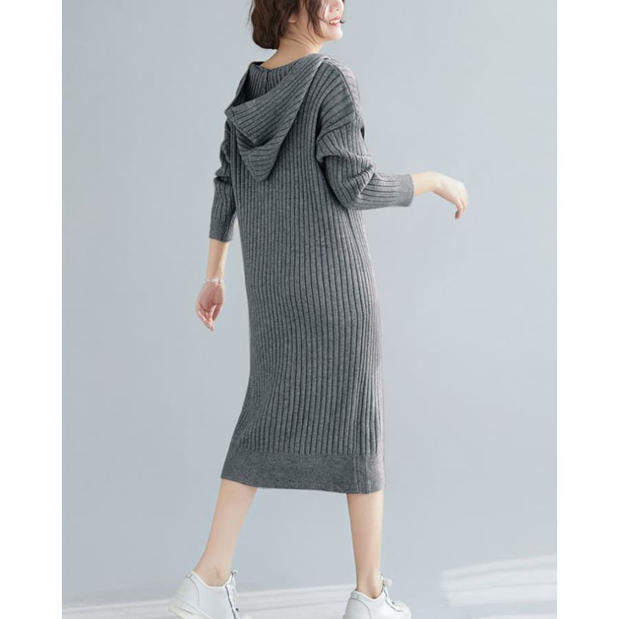 柔らかく着心地の良い素材のフード付きニットワンピースです