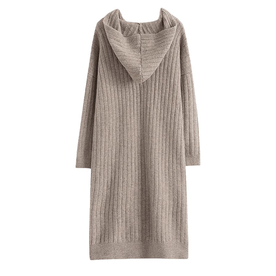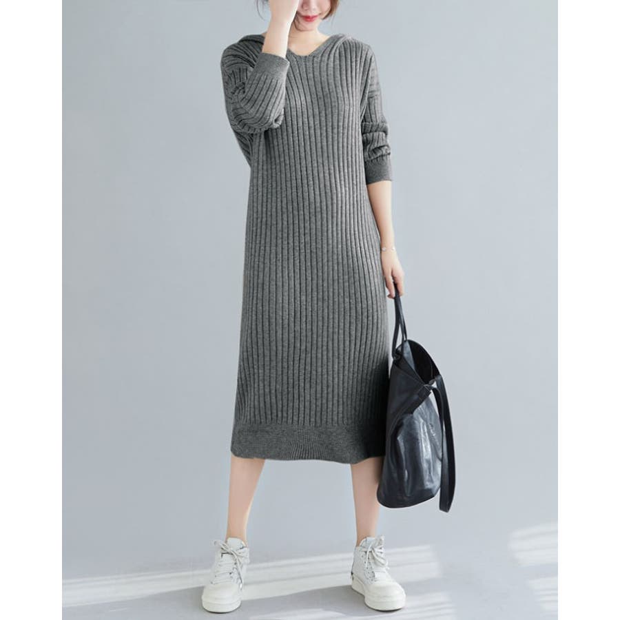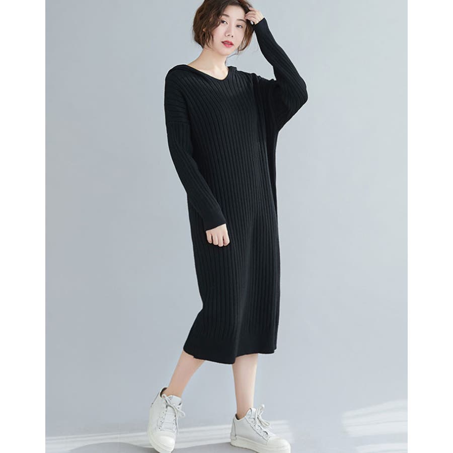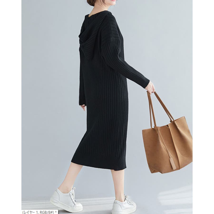 柔らかく着心地の良い素材のフード付きニットワンピースです