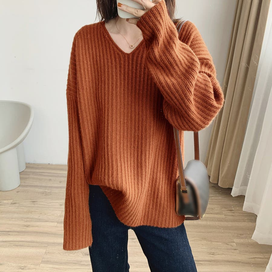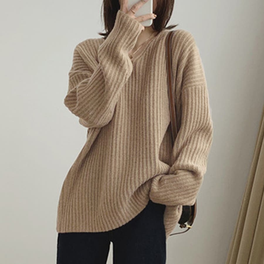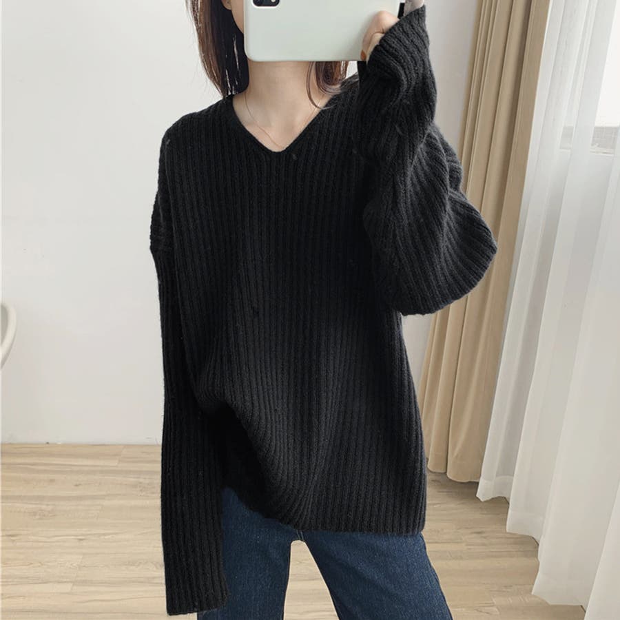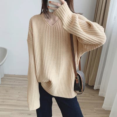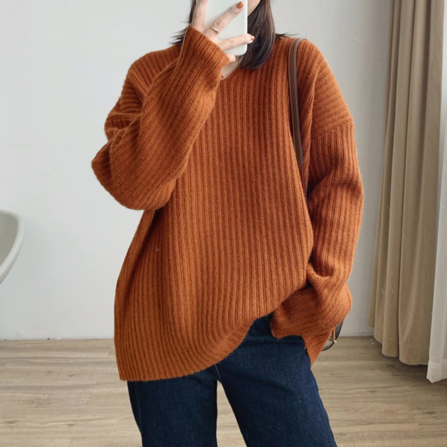 ニットウエア 無地 太めリブゆるニット ニットソー大人秋服