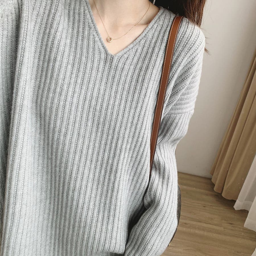スッキリと開いたVネックは首回りを綺麗に見せてくれる