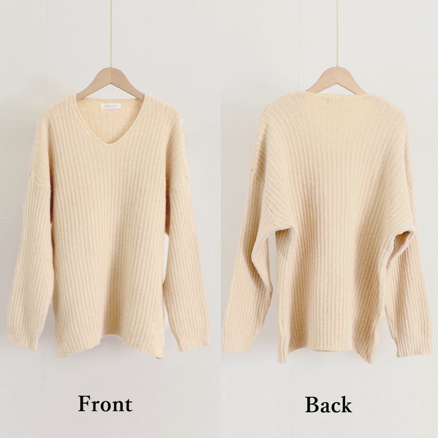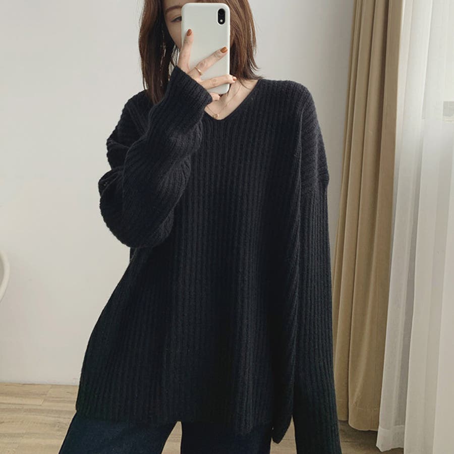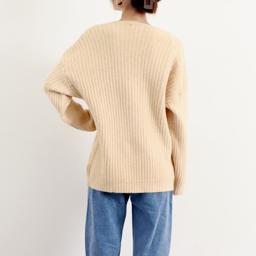 ピッチの太いリブ仕様で縦のラインを強調してくれるニットトップス