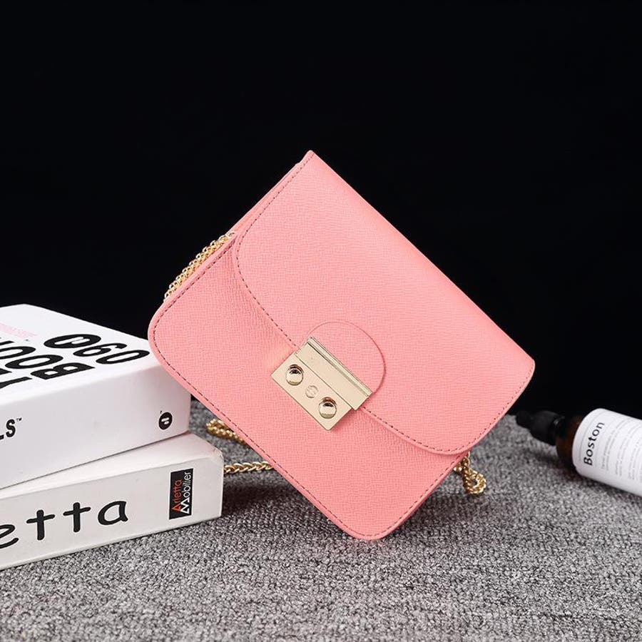 金具差し込み式のフラップ、マチが広めでコンパクトなお財布、スマートフォン、カードケース、メイク道具等が収納出来るのも魅力。